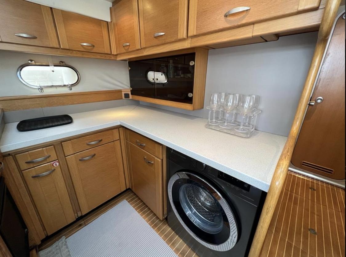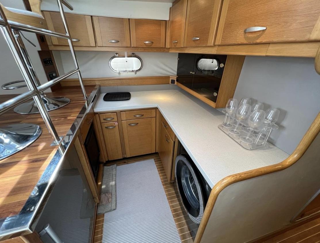 PRINCESS 55 FLYBRIDGE de 1992, troisième main, une unité élégante et fonctionnelle, idéale pour une résidence secondaire flottante ou des croisières en famille et entre amis. Réaménagée ces trois dernières années, elle dispose d’une cuisine moderne au niveau du pont principal, d’une buanderie et d’espaces optimisés offrant confort, luminosité et fluidité à bord. Les volumes généreux et les aménagements pratiques en font un bateau parfait pour prendre la mer dès aujourd’hui.
