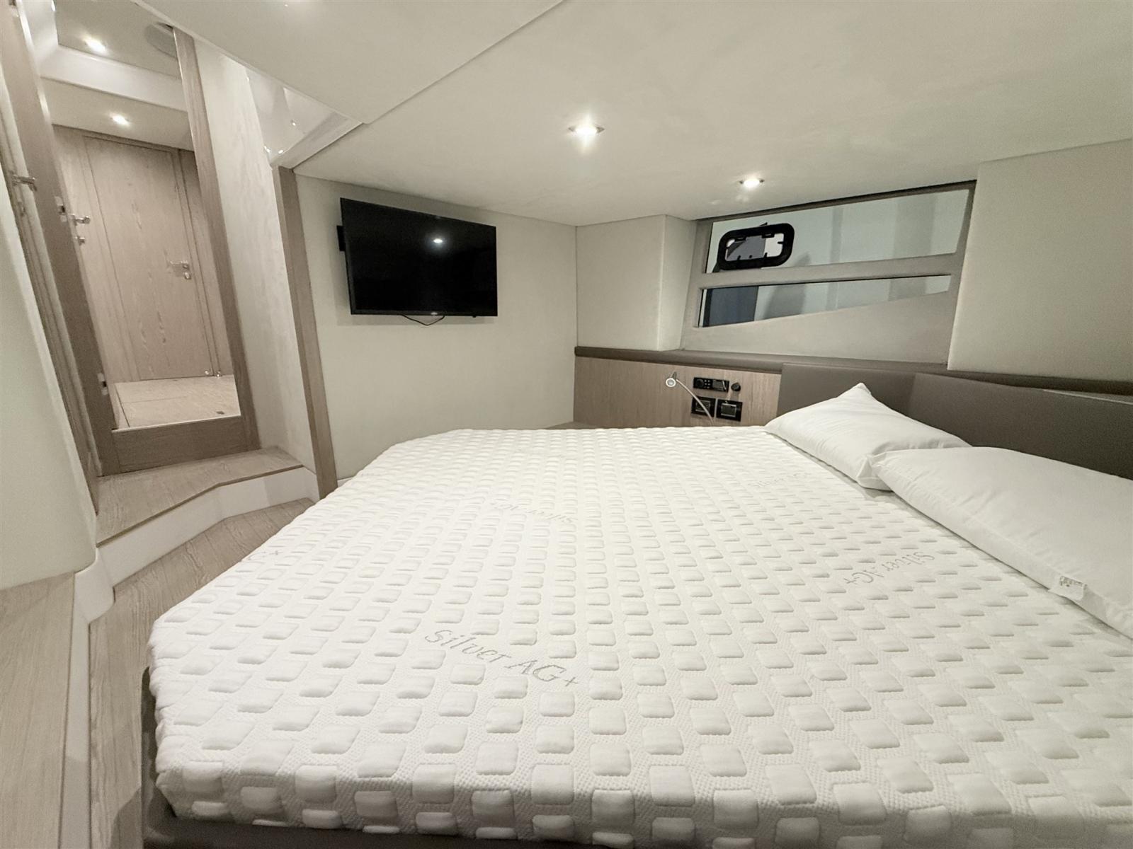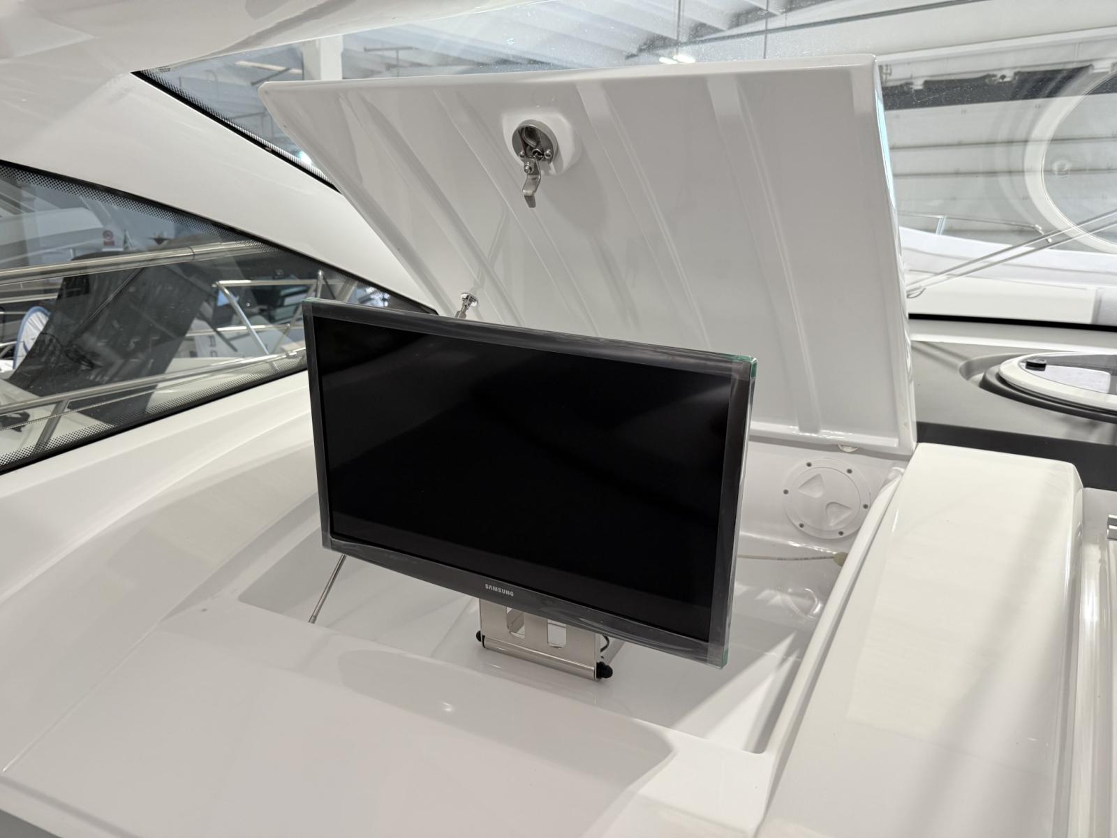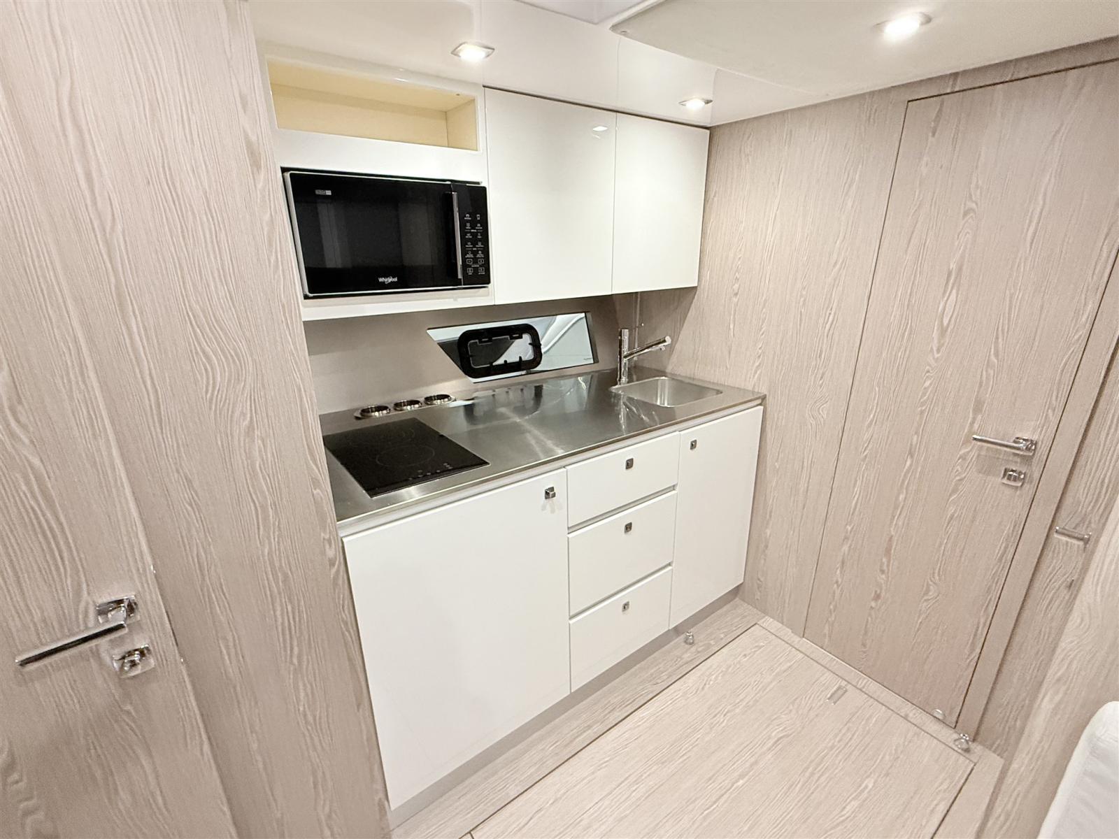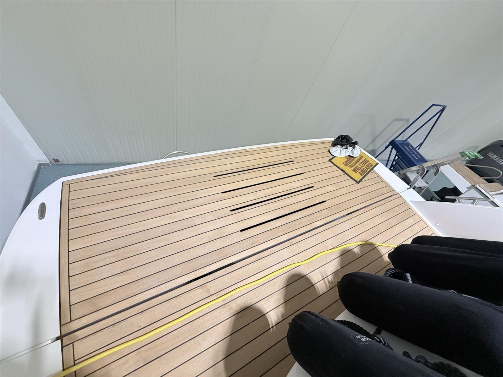 Alarme moteur, Alarme de pompe de cale, Ouverture du compartiment moteur électrique, Eau sous pression, Douche de cockpit, Flaps électriques, Garage à annexe, Hard top, Extincteur(s) fixe(s), Indicateurs de flaps, Lavabo dans le cockpit, Éclairage de courtoisie, Passerelle, Plateforme arrière, Pompe de cale automatique, Cockpit en teck, Prise de quai, Guindeau électrique, Echelle de bain, table de cockpit, Annexe, Corne.