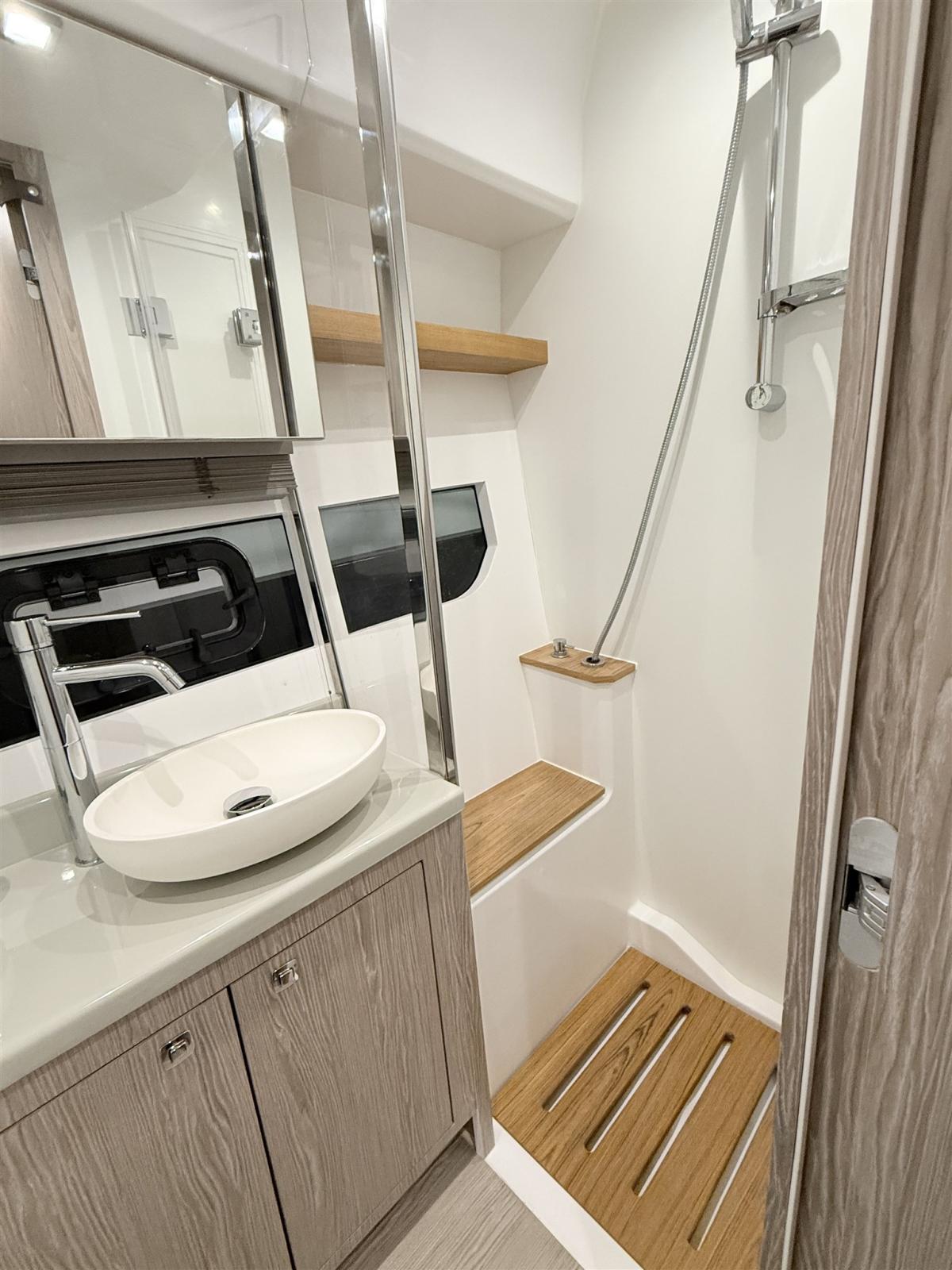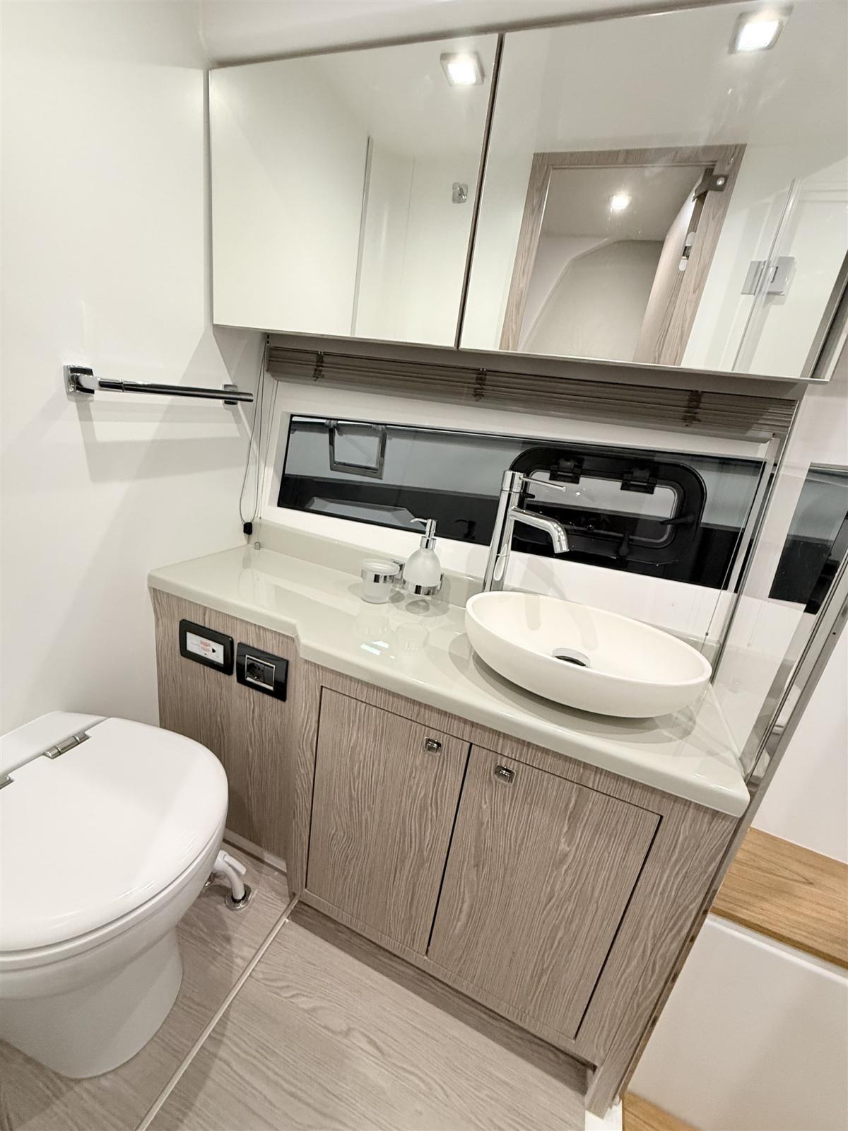 Ballon d'eau chaude, Air Conditionné (cabina e pozzetto), Cuve à eaux noires, Plancher intérieur en bois, Prises interieures 12v, Prises interieures 220v, Réservoir d'eau noire, 2 Toilettes électriques.