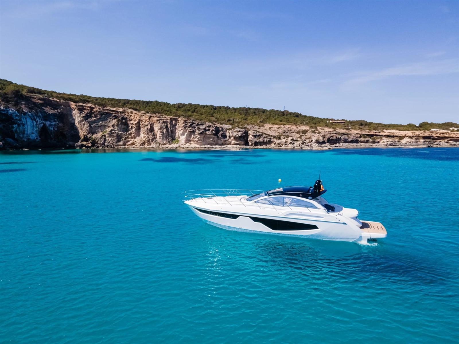 Alarme moteur, Alarme de pompe de cale, Ouverture du compartiment moteur électrique, Eau sous pression, Flaps hydrauliques, Hard top, Extincteur(s) fixe(s), Indicateurs de flaps, Passerelle, Plateforme arrière, Cockpit en teck, Prise de quai, Guindeau électrique, table de cockpit, Corne.