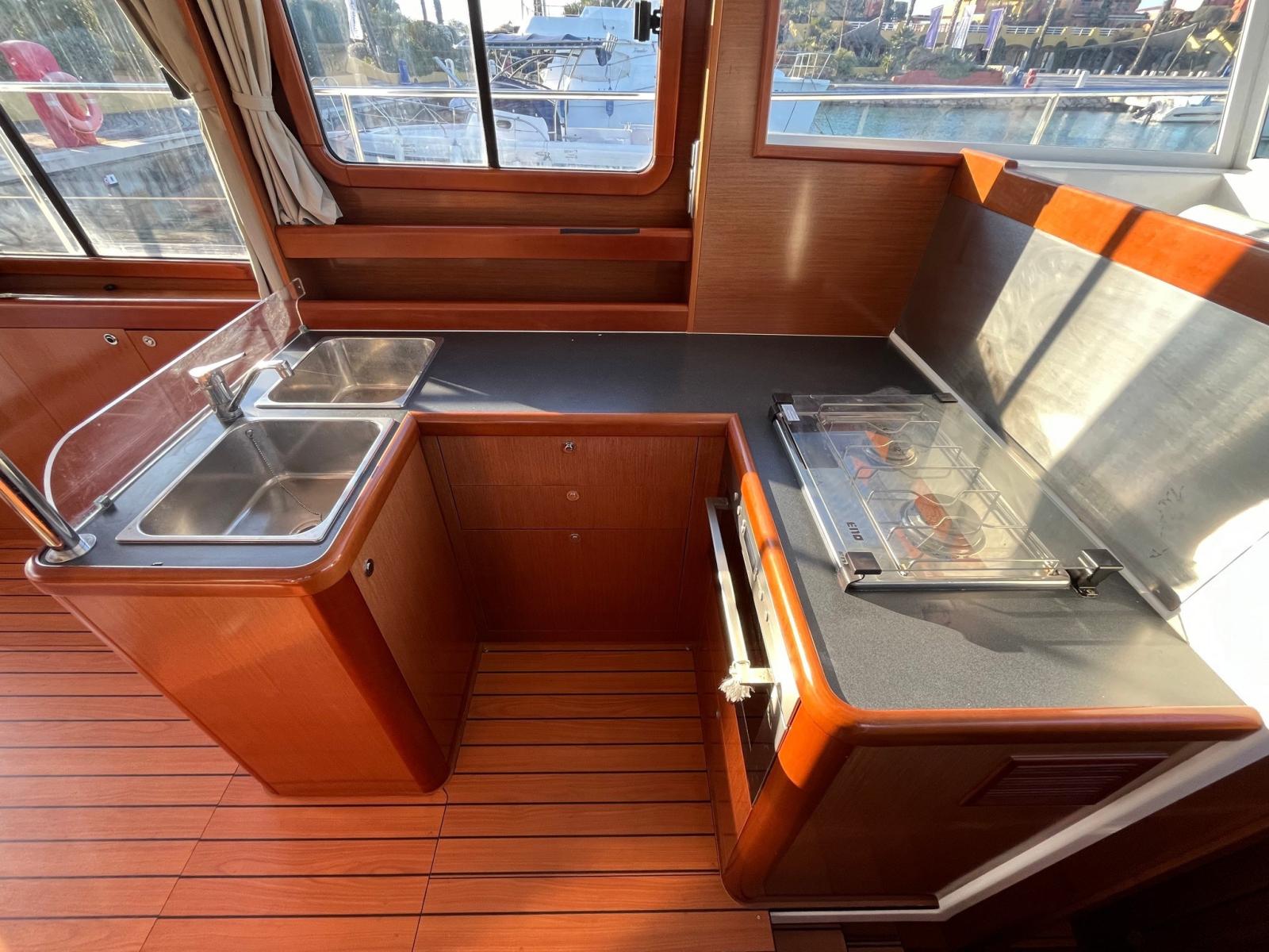 Bateau à un seul propriétaire ! Super équipé avec propulseur de poupe, propulseur d'étrave, passerelle hydraulique, chauffage Webasto, bimini sur le fly et électronique Raymarine avec radar et pilote automatique.