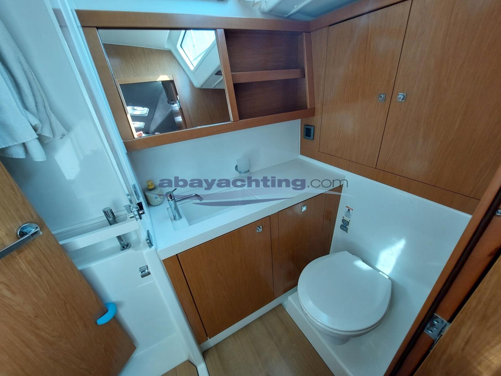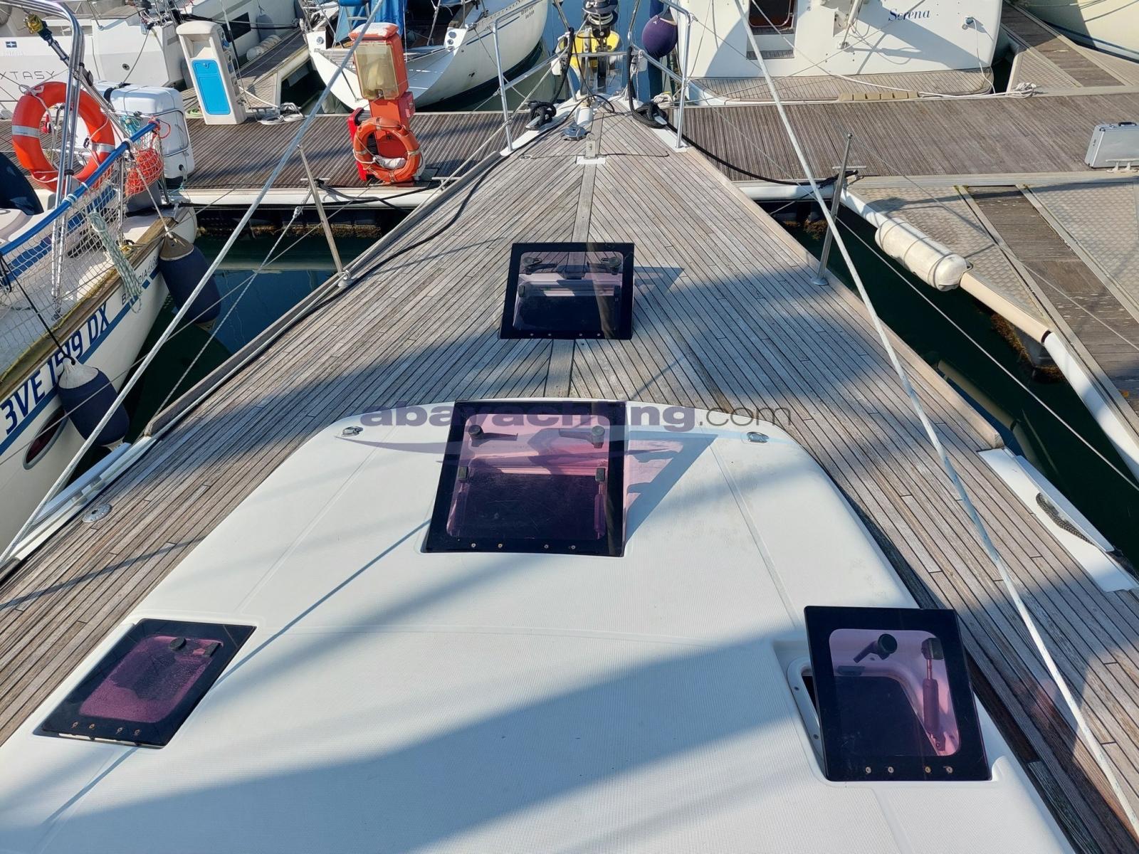 Voiles remplacées en 2021 ! Bien équipé : propulseur d'étrave, chauffage, dessalinisateur, deux nouveaux panneaux solaires de 2024, winchs Harken (dont 1 électrique), table de cockpit convertible en bain de soleil, bimini pour une couverture complète du cockpit, arceau avec point d'écoute de grand-voile, winch de proue, TV escamotable dans le coin repas, traceur Axiom 2021, radar et AIS.