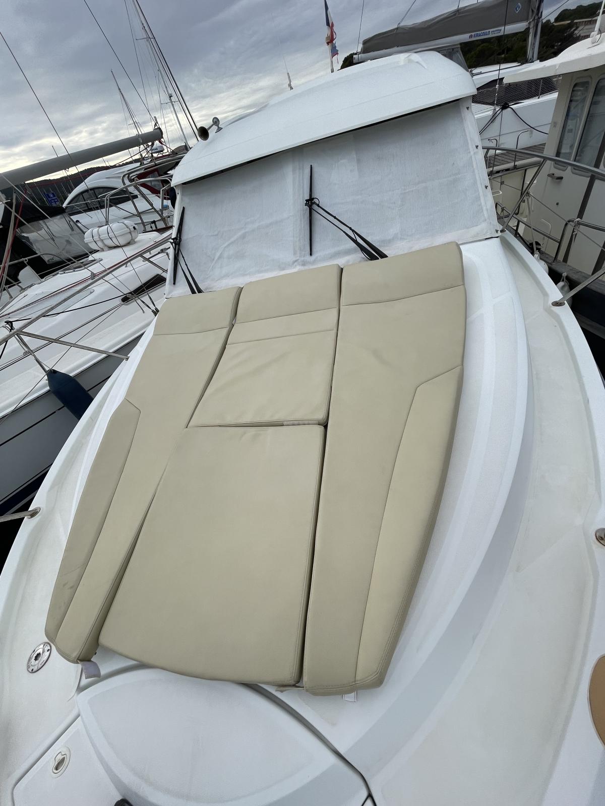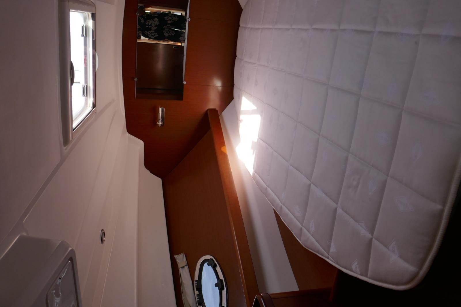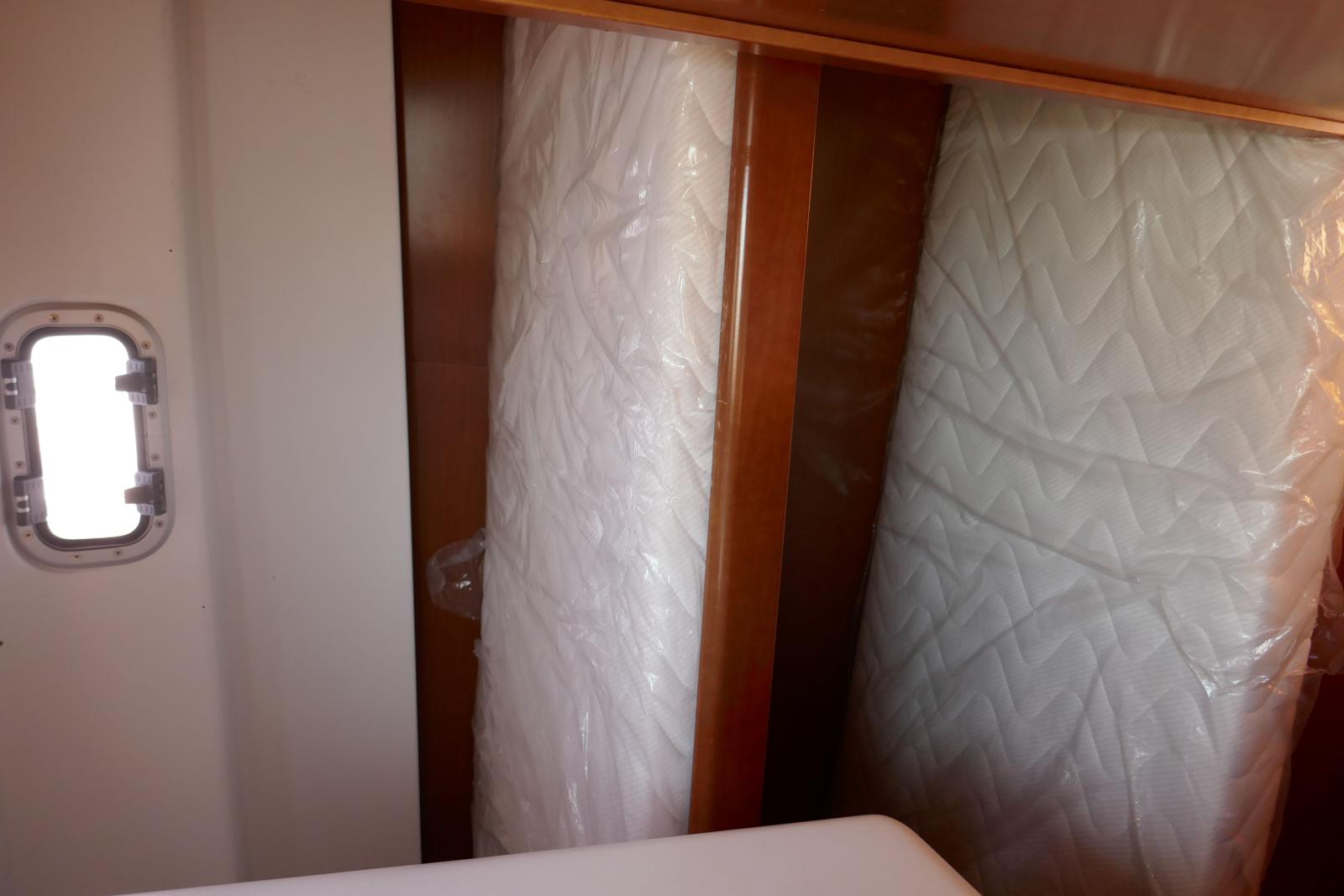 - Sellerie : La sellerie intérieure et extérieure est en très bon état, témoignant du soin apporté à ce bateau. La literis de la 2e cabine est toujours sous plastique. Le drap housse est de la marque Victoria.
