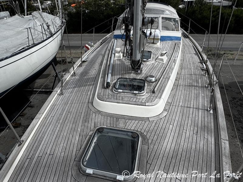 Les voiles sont en bon état, le pont en teck a été entièrement refait en 2021. Le gréement dormant semble récent mais le propriétaire étant décédé nous n'avons pas cette information précisemment. Le point qui semble négatif sur ce bateau est le moteur pour lequel nous n'avons que peu d'information. Il faudra envisager des travaux sur celui ci, voir de le faire remplacer.