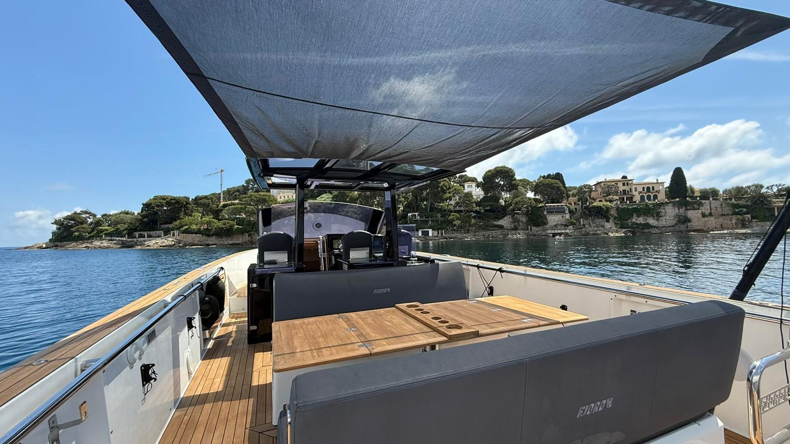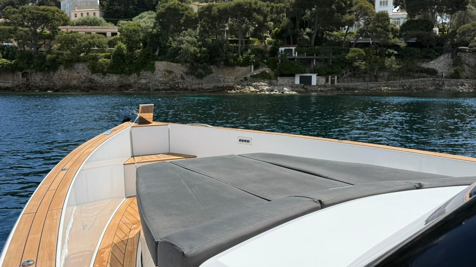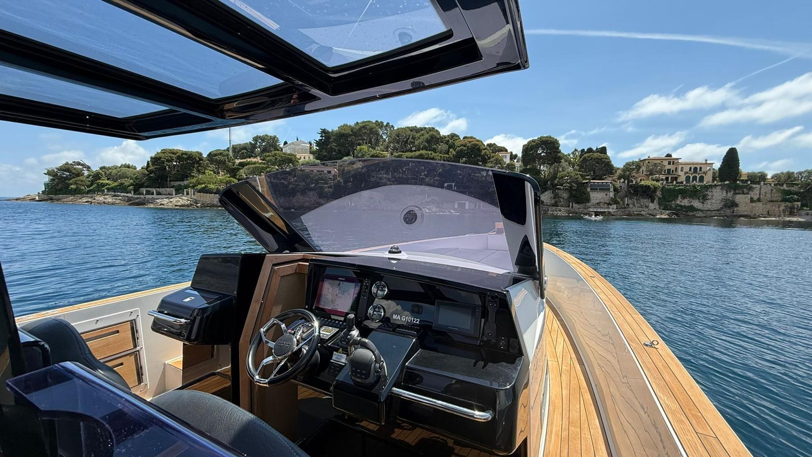 Propulsé par les IPS D6-400, le bateau offre une navigation douce, silencieuse et performante, avec une manœuvrabilité intuitive même en port. Le système joystick Volvo permet des accostages précis, renforçant le plaisir de piloter ce yacht à moteur open à la fois sportif et raffiné. Grâce à son faible tirant d’eau, il accède facilement aux criques les plus exclusives.