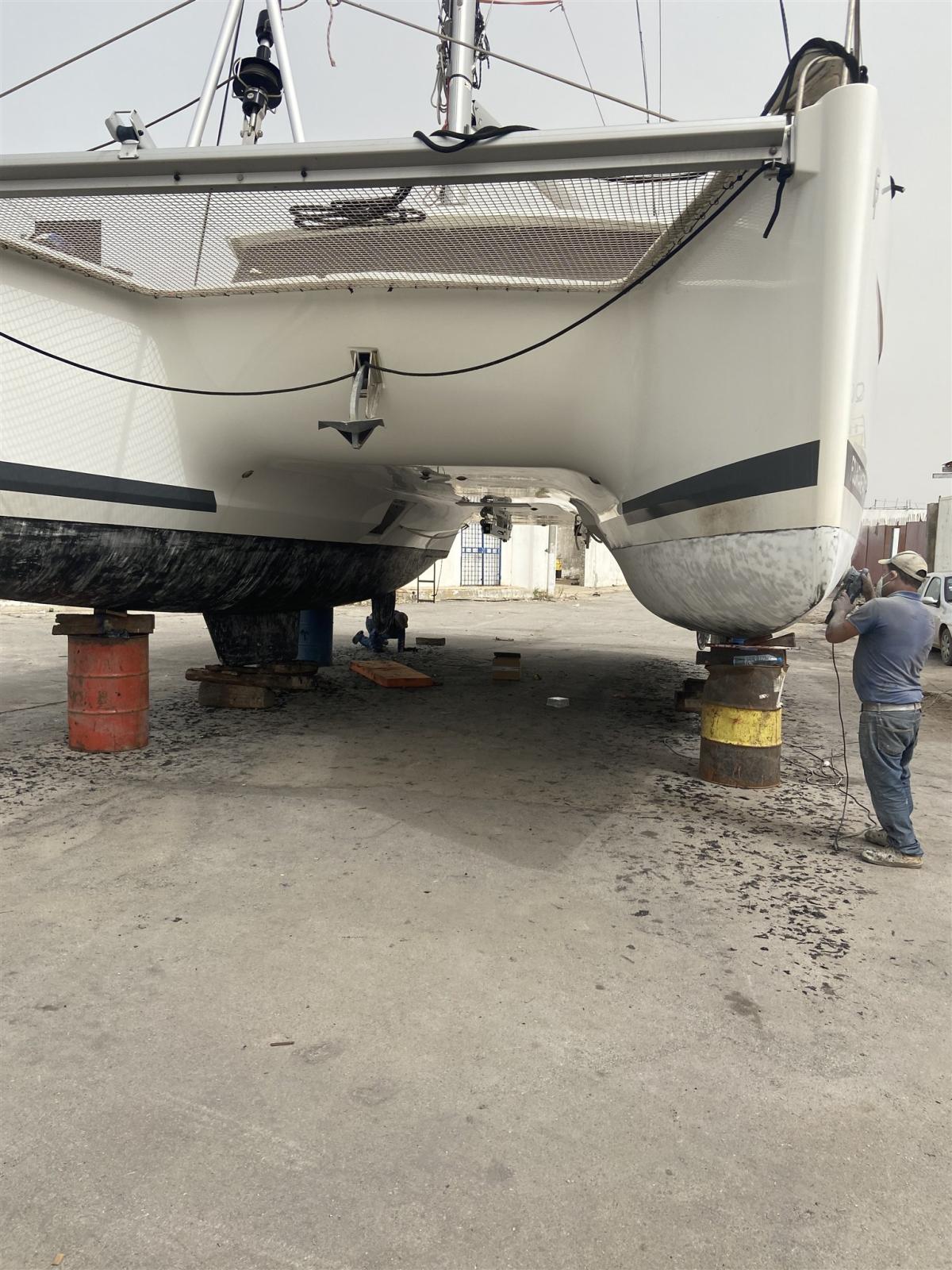 Nombreux équipements : moteurs Volvo 30 cv (1200 h), électronique Raymarine Axiom 12'', sondeur Diamand, dessalinisateur 30 l/h, batteries 2024, génois neuf 2024, guindeau et mouillage 2024. Plateforme hydraulique Tenderlift installée en 2023. Visible au Marin (Martinique). Disponible hiver 2026, révisé et prêt à naviguer.
