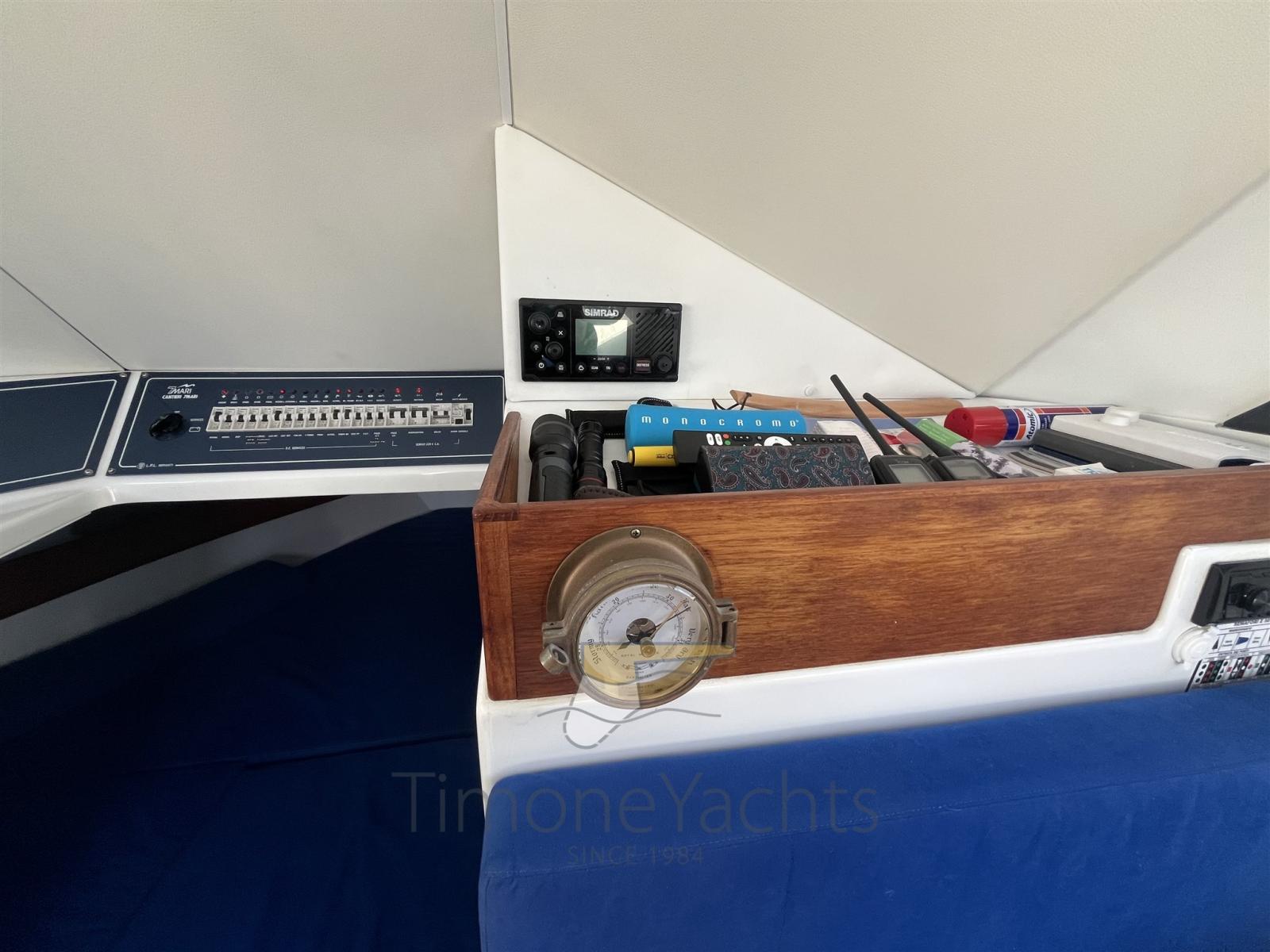 4 Batteries (2 servizi 2 motori), Lavage de chaine, Passerelle (Manuale), Plateforme arrière, Pompe de cale automatique, 4 Pompe de cale électrique, Porte latérale, Prise de quai, Guindeau électrique, 2 Echelle de bain, table de cockpit, Corne.