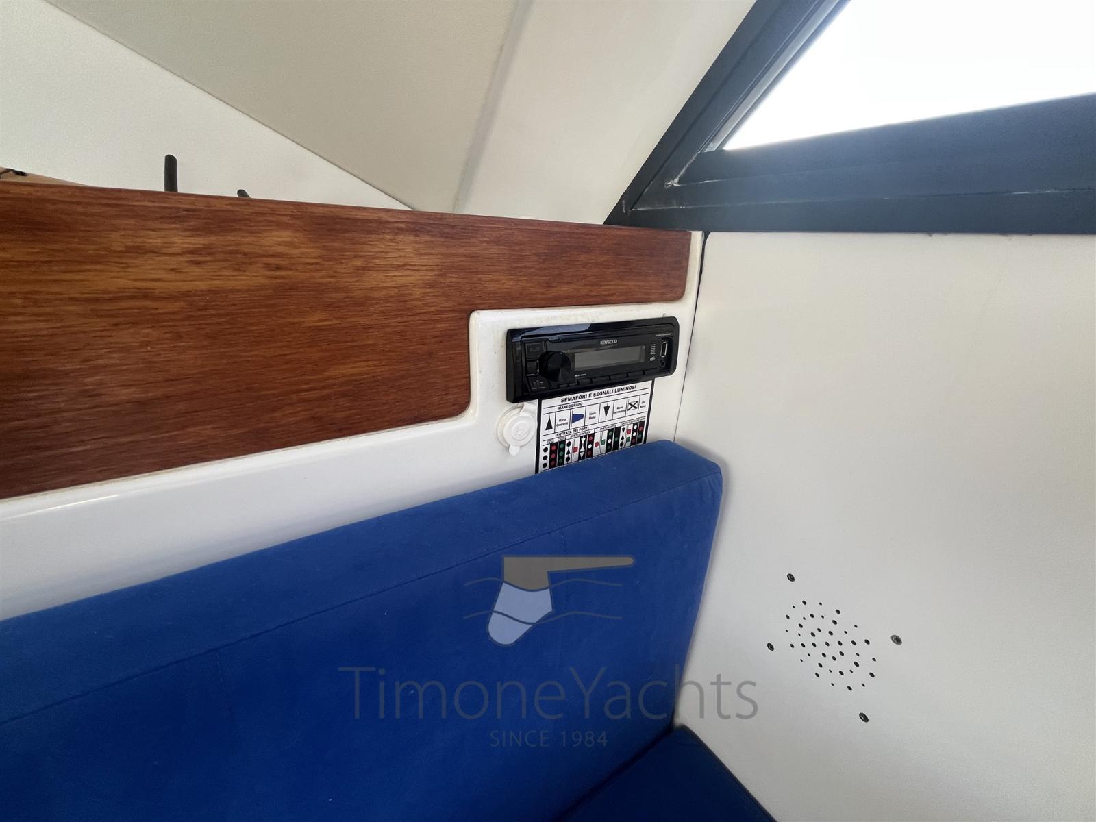 Indicateur d'angle de barre, 2 Sondeur pêche, 2 GPS (Simrad 27 pollici), Pilote automatique (Garmin), 2 Radio VHF (Simrad).