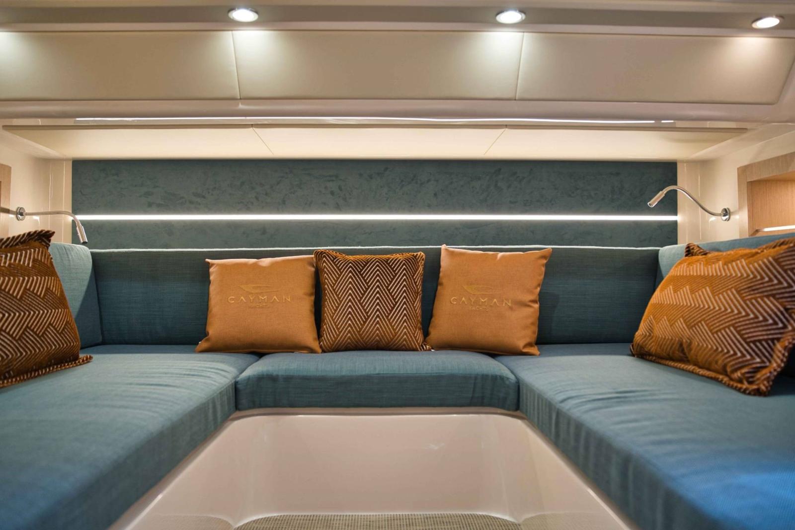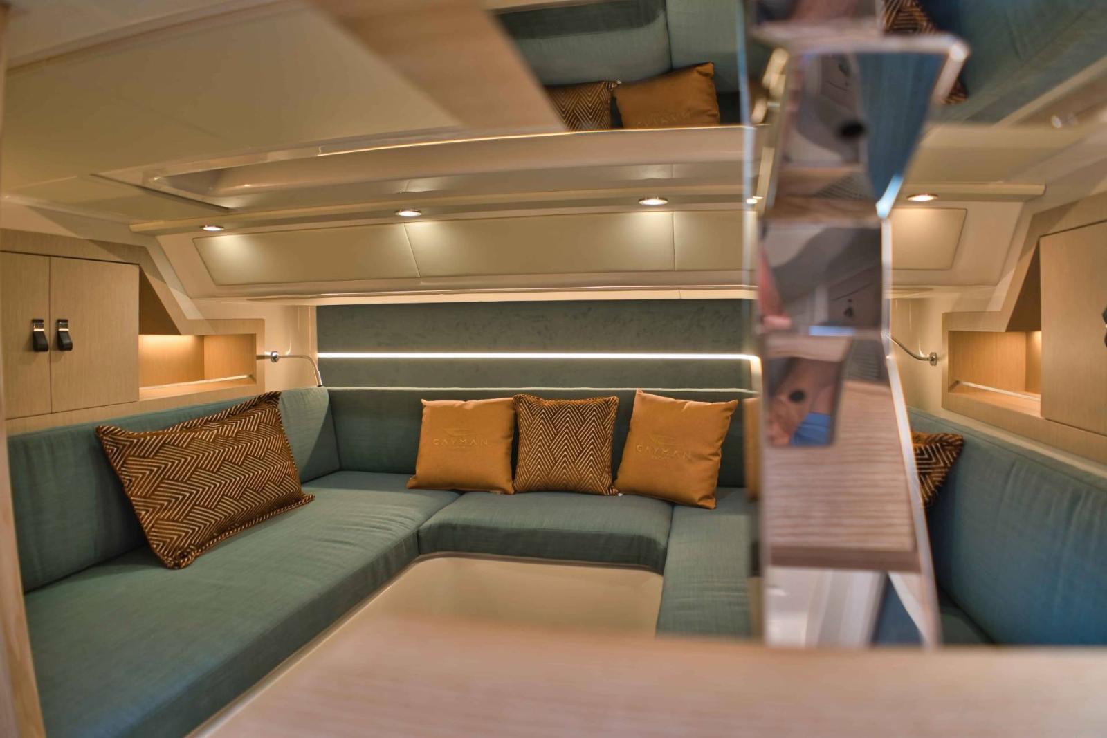 LA CAYMAN 380WA A ÉTÉ DÉVOILÉE EN FÉVRIER 2025 LORS DE NAUTICSUD ET REPRÉSENTE LE NOUVEAU « NIVEAU D’ENTRÉE » DE CAYMAN YACHTS, AVEC LA RUGUE, L’ÉLÉGANCE ET LE RAFFINEMENT QUI DISTINGUENT LA MARQUE ITALIENNE.