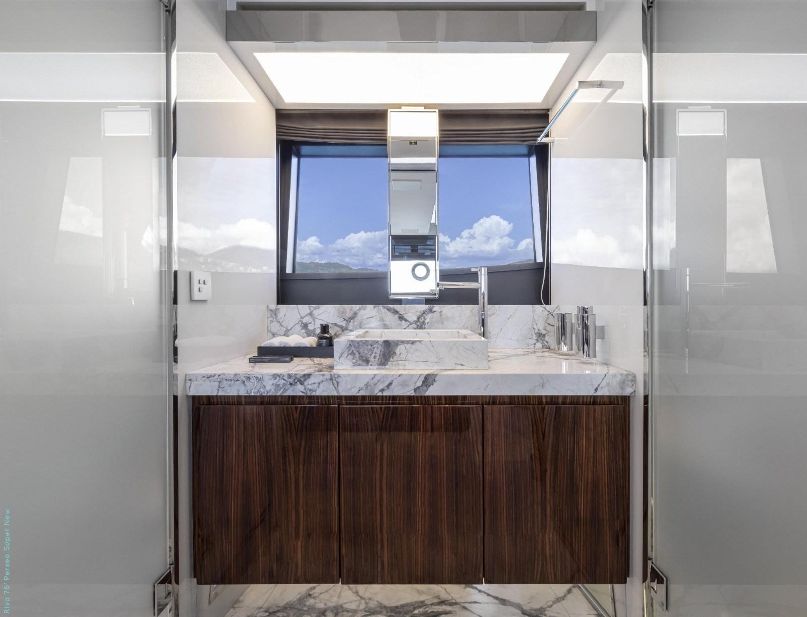 La 76 Perseo allie sportivité et raffinement : les lignes extérieures élégantes, les surfaces vitrées généreuses, l’utilisation habile de matériaux nobles (bois, acier, verre) et des finitions soucieuses du détail font ressortir l’ADN « made in Italy » de Riva, de plus que les espaces extérieurs, la terrasse, la passerelle aérienne, le cockpit et la zone de bain de soleil offrent des environnements idéaux pour la détente, les apéritifs ou les moments convivials. ce qui rend le bateau parfait aussi bien pour les croisières confortables que pour les excursions représentatives.