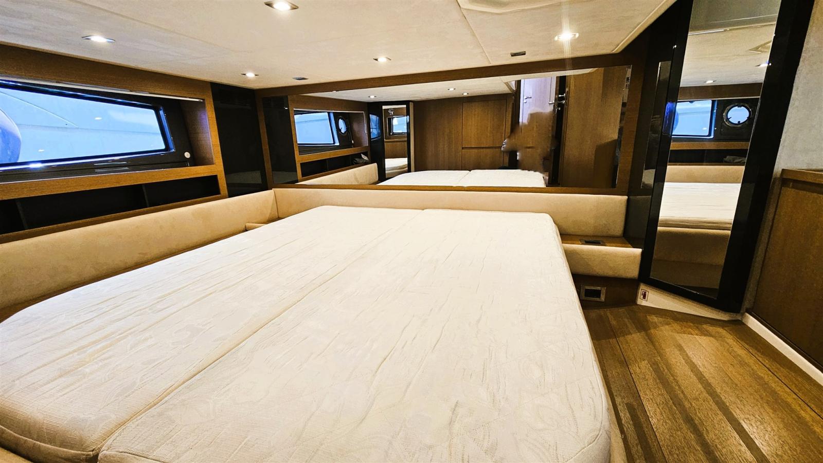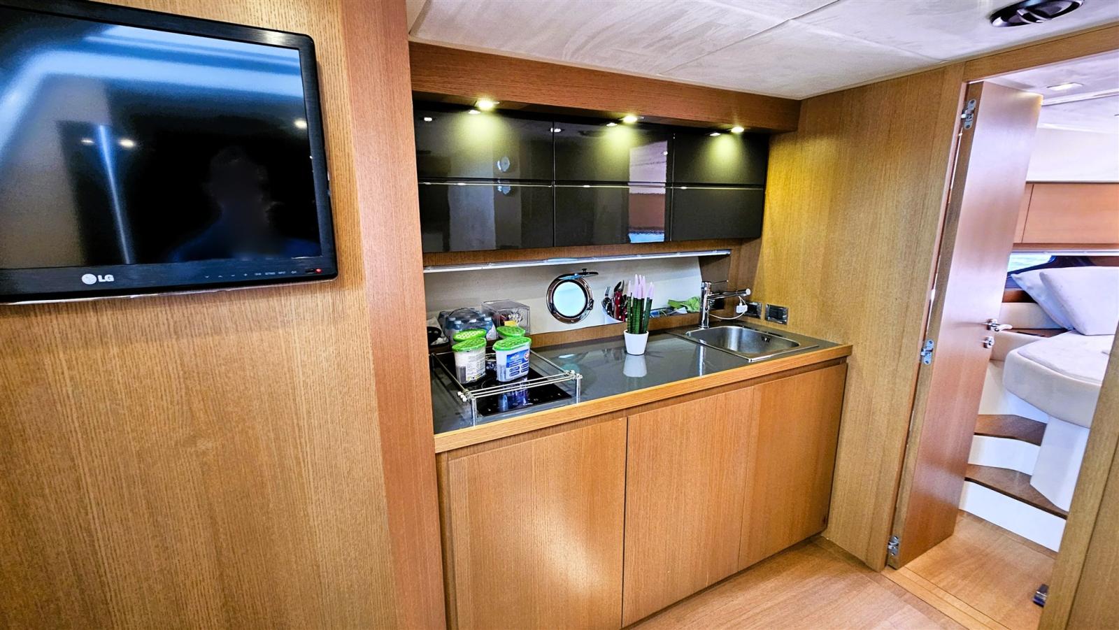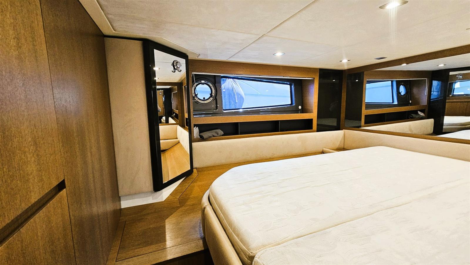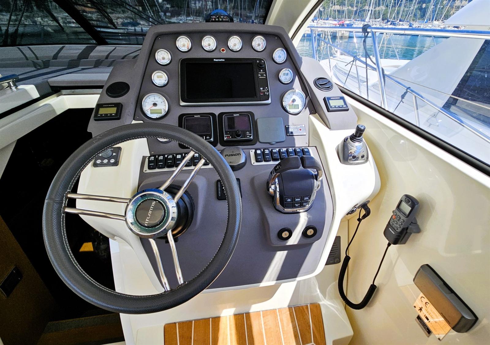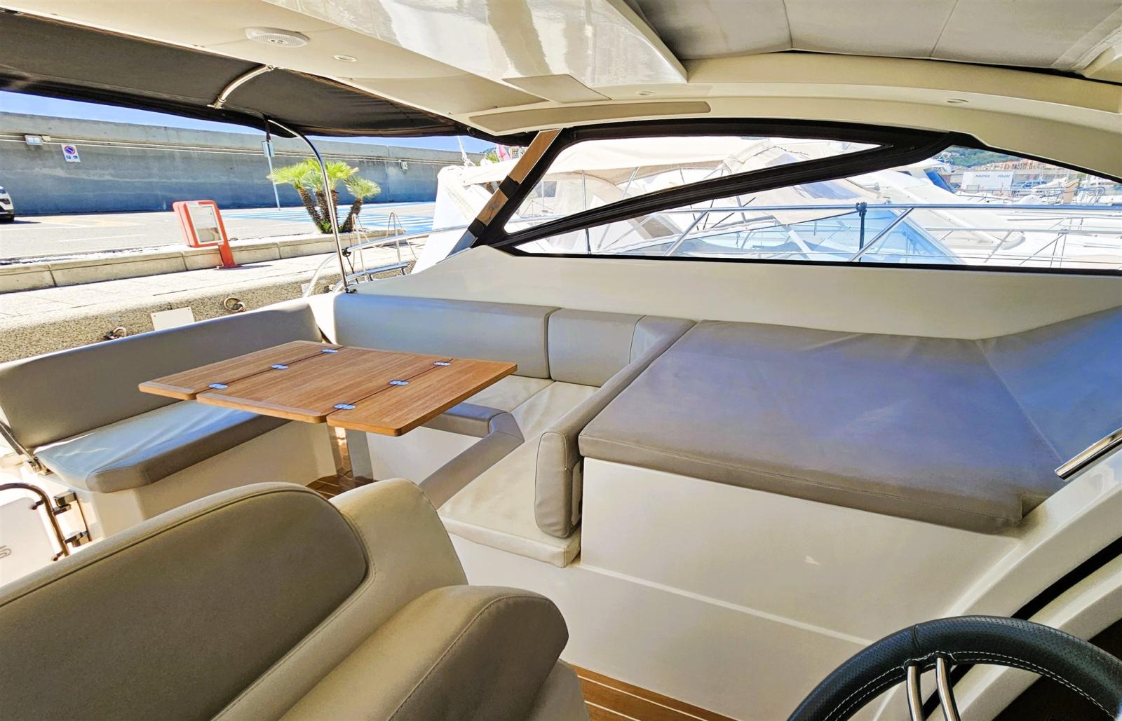 La détente totale est garantie par l’espace extérieur, où un solarium séparé, une dinette et une chaise longue forment un seul espace intégré dédié au bien-être, un rangement pratique et une cuisine ergonomique, avec de grandes fenêtres de coque, qui garantissent une luminosité intérieure maximale. L’ergonomie des instruments sur le poste de pilotage est conçue pour offrir un maximum de fonctionnalité.