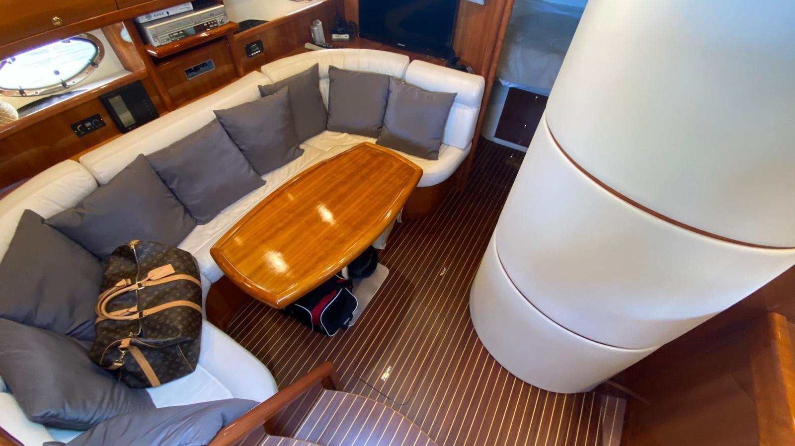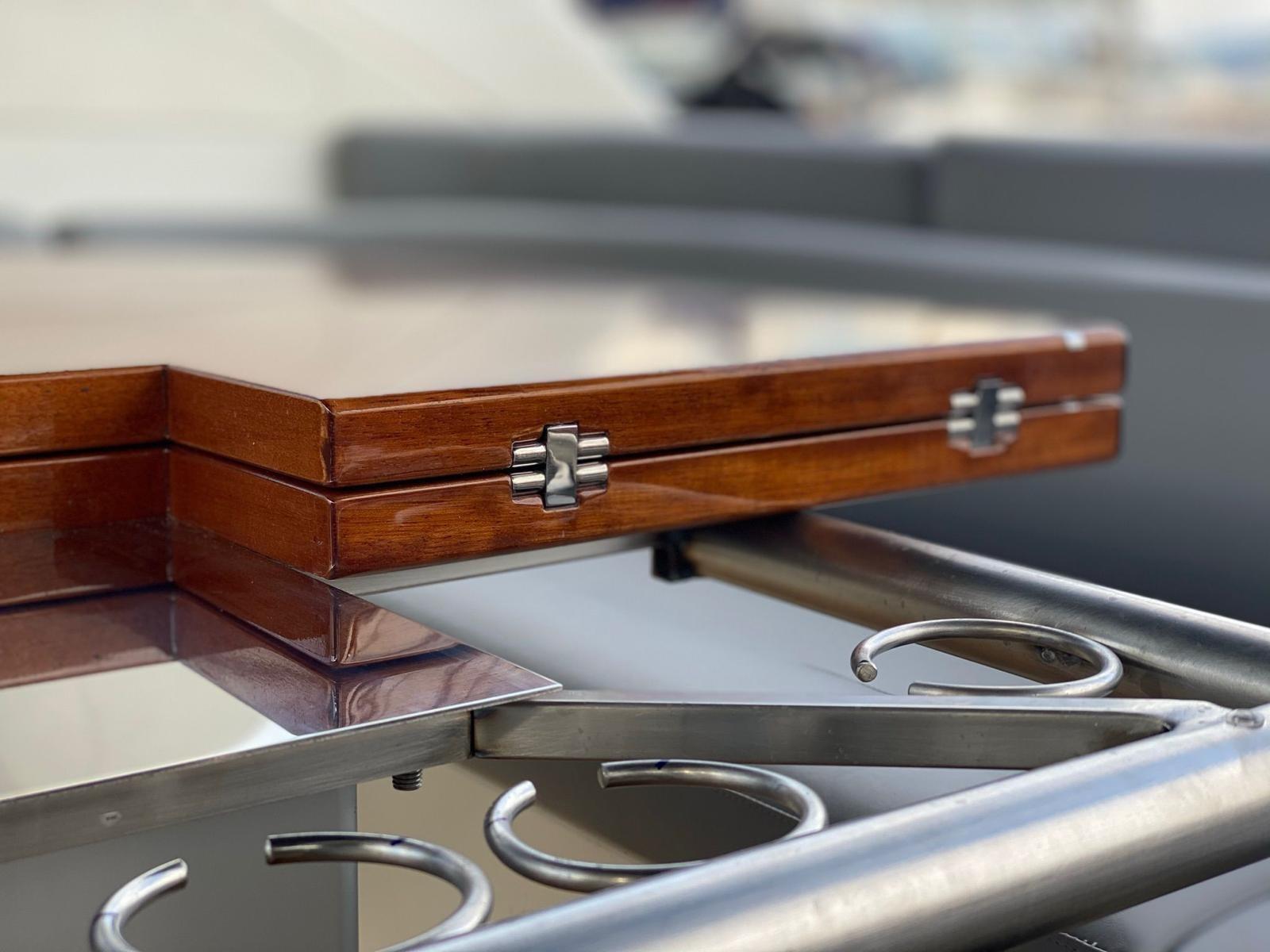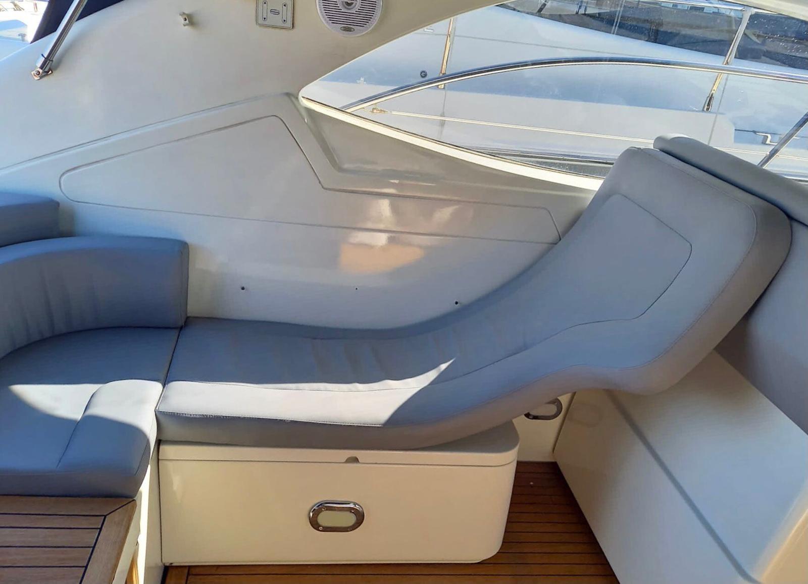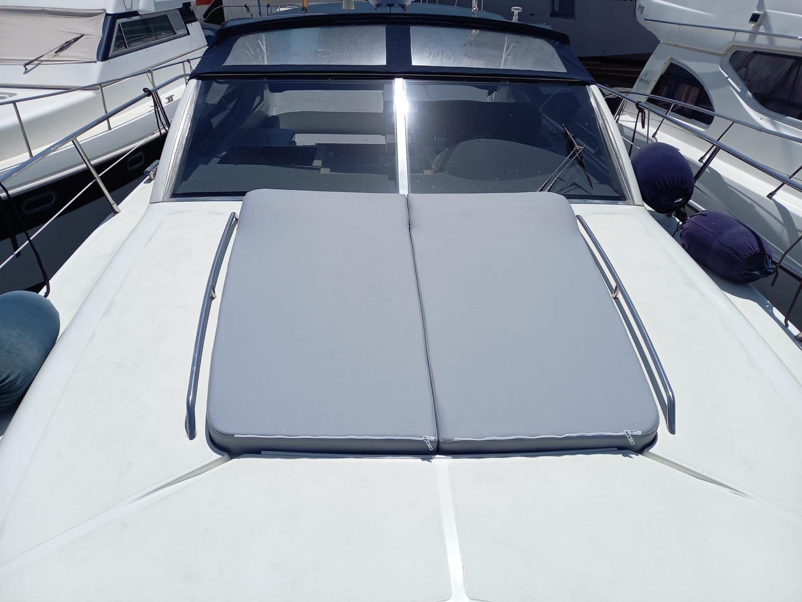 Coque blanche polie 2025, coussins entièrement neufs gris ciel, nouveau volant 2021, traitement teck 2025, ajout d’une table pliante en teck et laque brillante dans le cockpit 2021 qui permet de déjeuner à au moins 6 personnes.