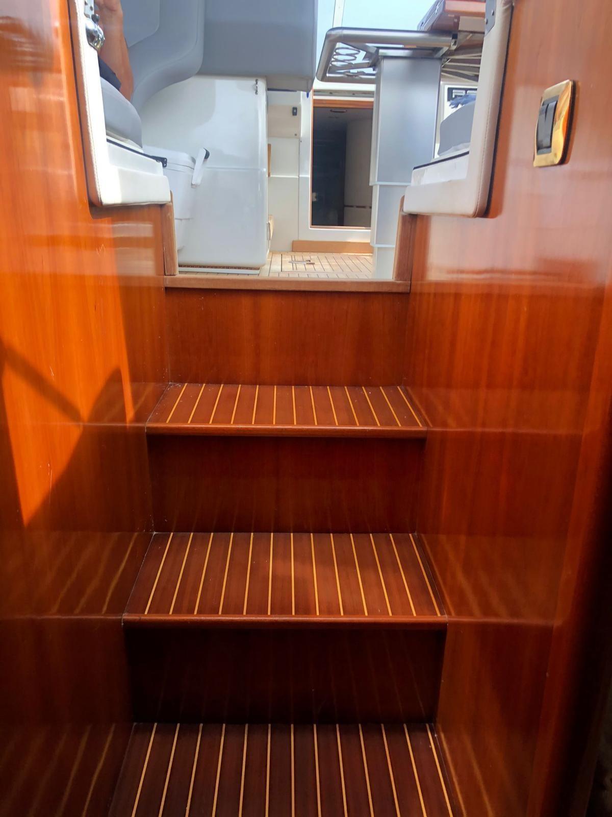 Alarme moteur, Alarme de pompe de cale, Ligne d'arbre de rechange, Eau sous pression, Batteries (nuove servizi e motori 2021), Couleur spéciale, Douche de cockpit (calda/fredda), Propulseur d'étrave (installata 2014), Hélice de rechange, Phares fixes arrière (underwater), Flaps hydrauliques, Extincteur(s) fixe(s), Éclairage de courtoisie (doppie nel pozzetto), Passerelle (elettroidraulica), Plateforme arrière (poppa in teak nuova 2025), Pompe de cale automatique, Porte latérale, Cockpit en teck (2016 , trattato 2021), Prise de quai, Guindeau électrique, Echelle de bain (allungata con maniglioni per facilitare la salita), table de cockpit (in Teak, a scomparsa, nuovo), Corne.