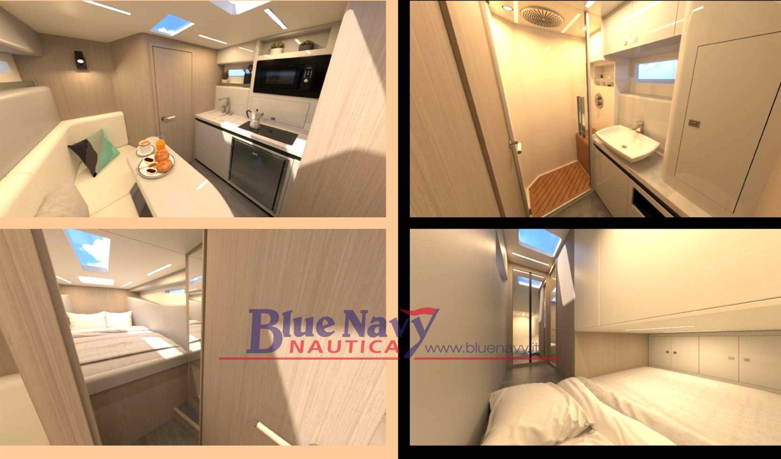 Espaces à bord : grande plate-forme arrière avec bain de soleil et coffres spacieux ; À l’avant, des bains de soleil king-size avec d’élégantes mains courantes en acier inoxydable et des passages confortables et protégés avec des mains courantes stratégiques.