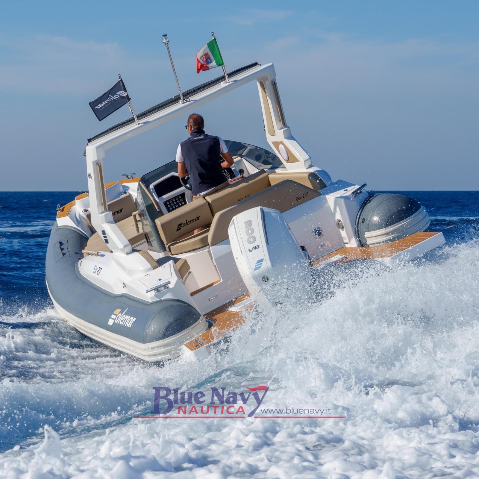 Le concessionnaire officiel Solemar - Blue Navy Nautica propose à la vente le bateau pneumatique de démonstration exposé au Salon nautique de Gênes 2025 - Solemar SX 27 propulsé par un V8 VERADO Mercury blanc de 300 ch.