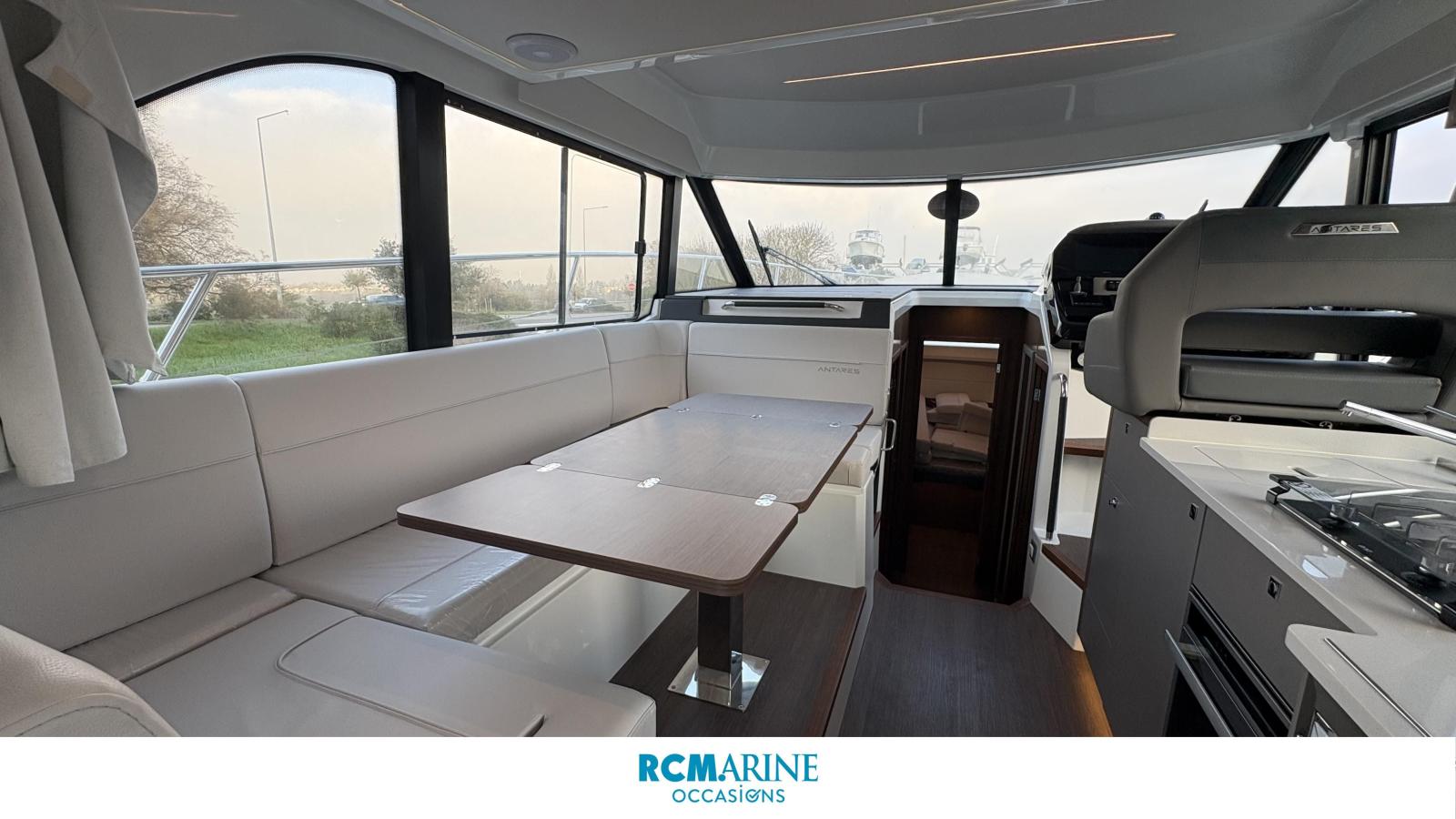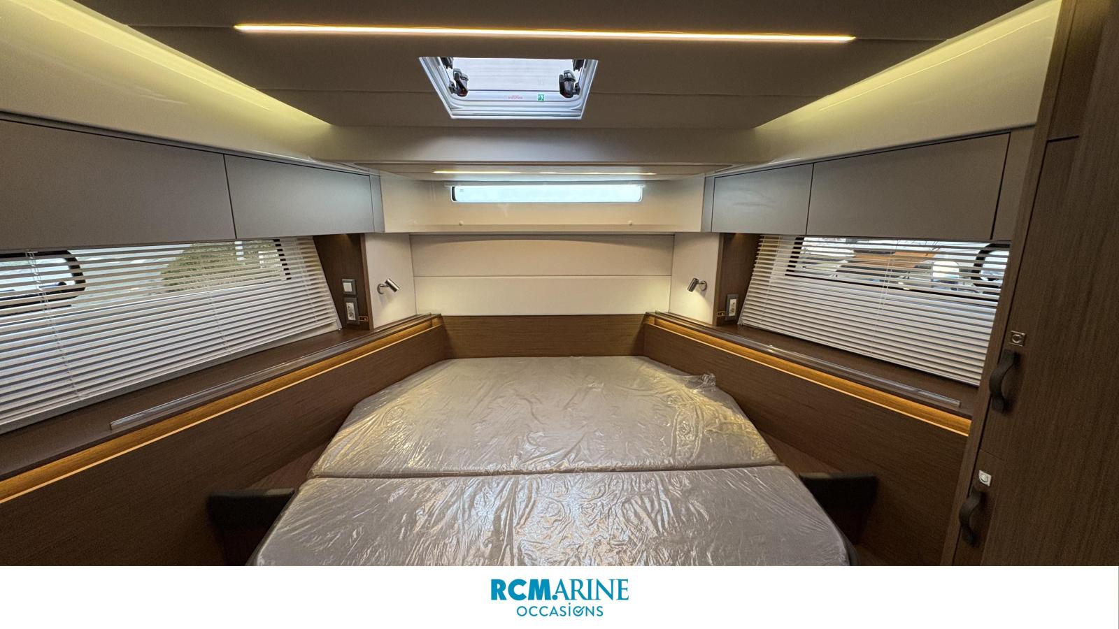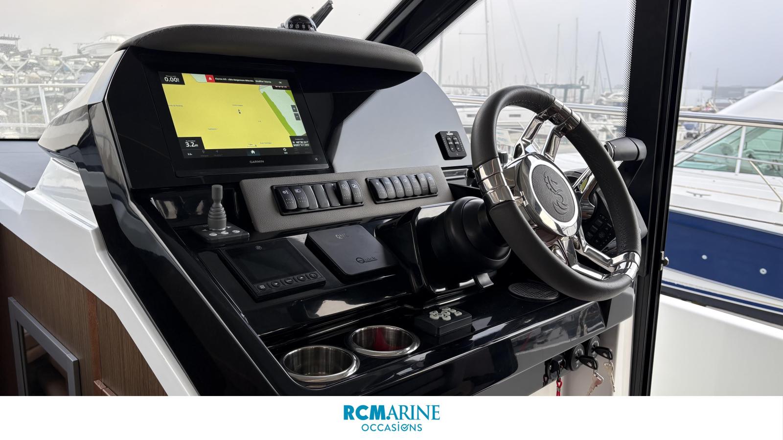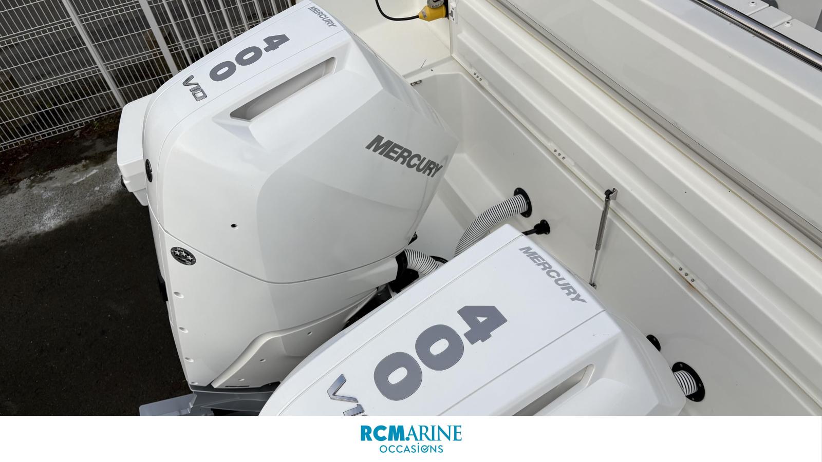 Ses 2 moteurs Mercury 2x400 CV, assistés par joystick et propulseur d’étrave double commande, offrent une navigation fluide et sécurisée, tandis que le pack électronique GARMIN avec double écran, sondeur, VHF et caméra arrière garantit une maîtrise totale en mer.