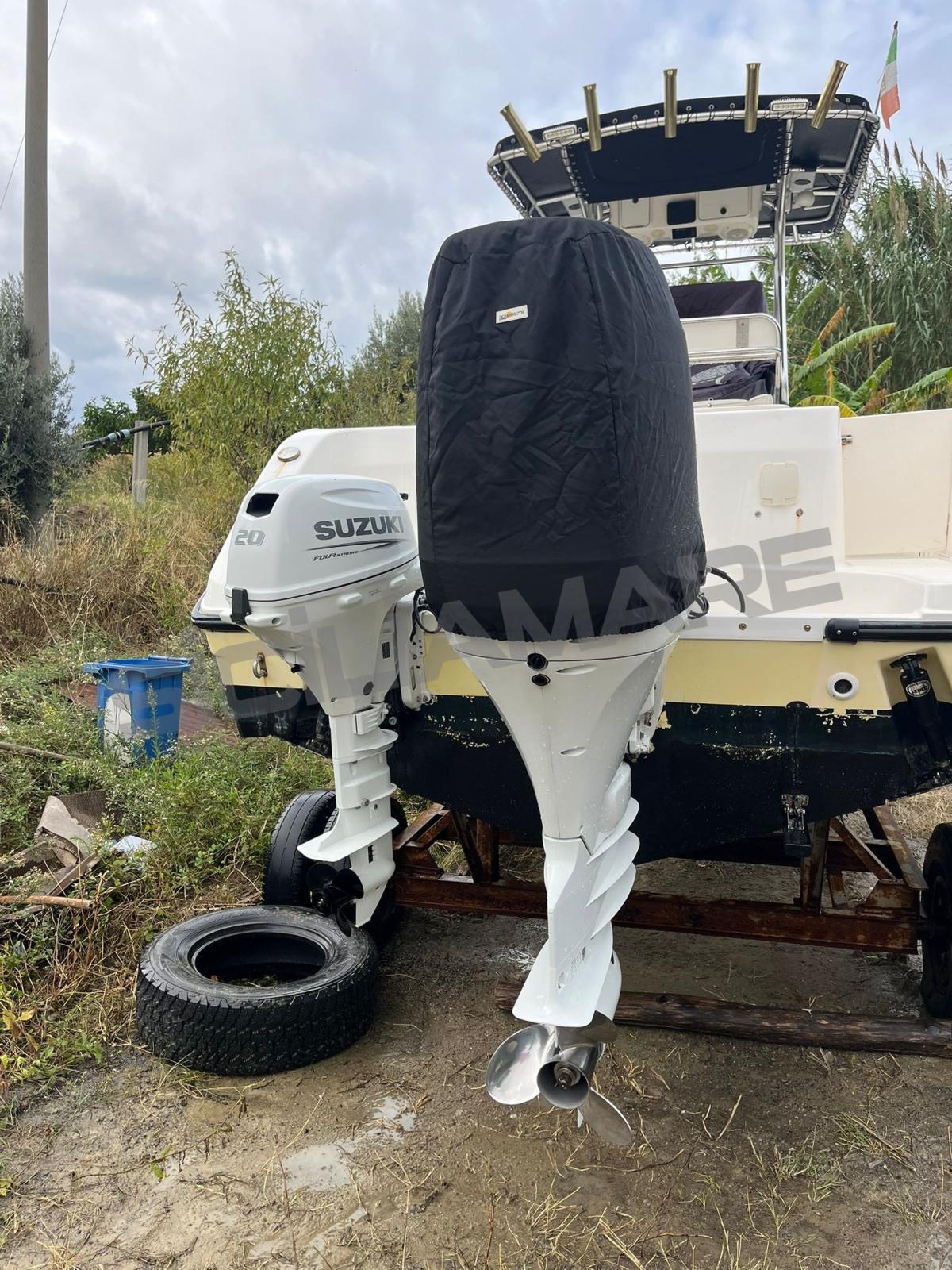 MOTEURS JUIN 2024 : 1 x 300 SUZUKI 4T 100h + MOTEUR AUXILIAIRE AVEC COMMANDES SUR LE TABLEAU DE BORD 1 x 20 SUZUKI 4T 30h - TOUJOURS SOUS GARANTIE.