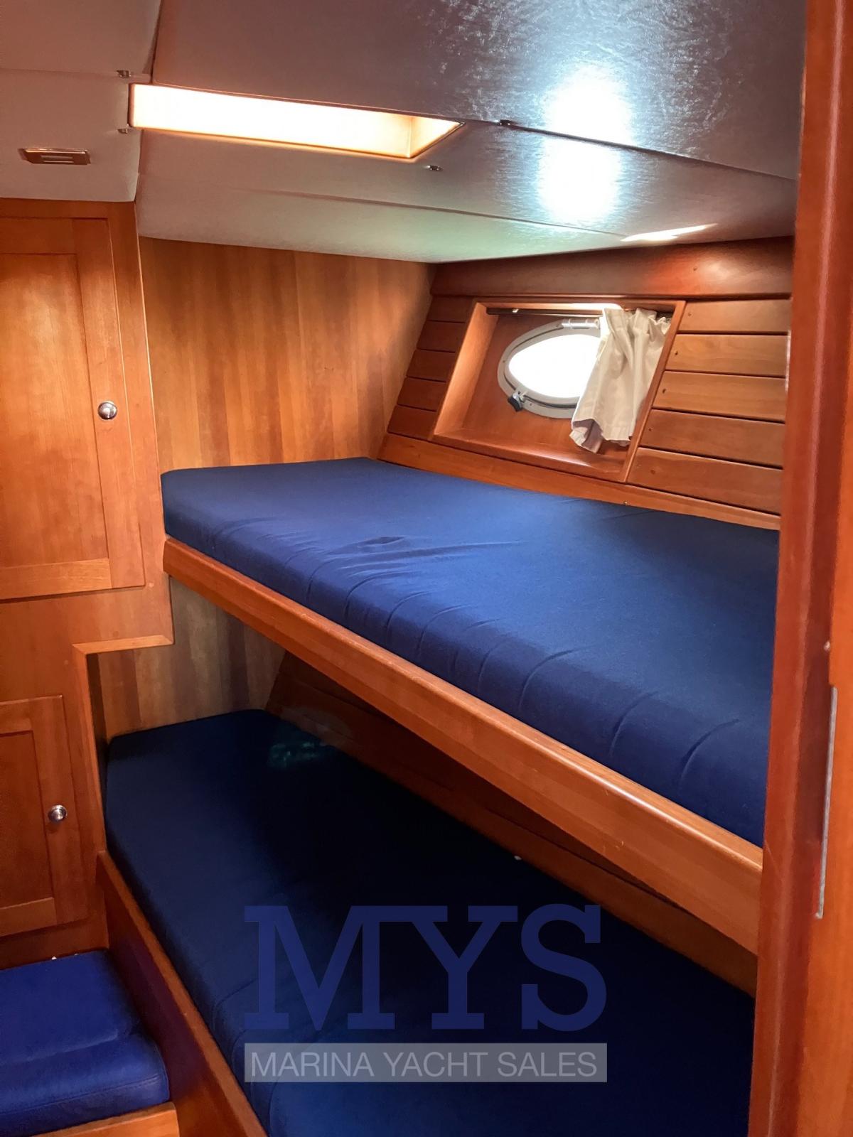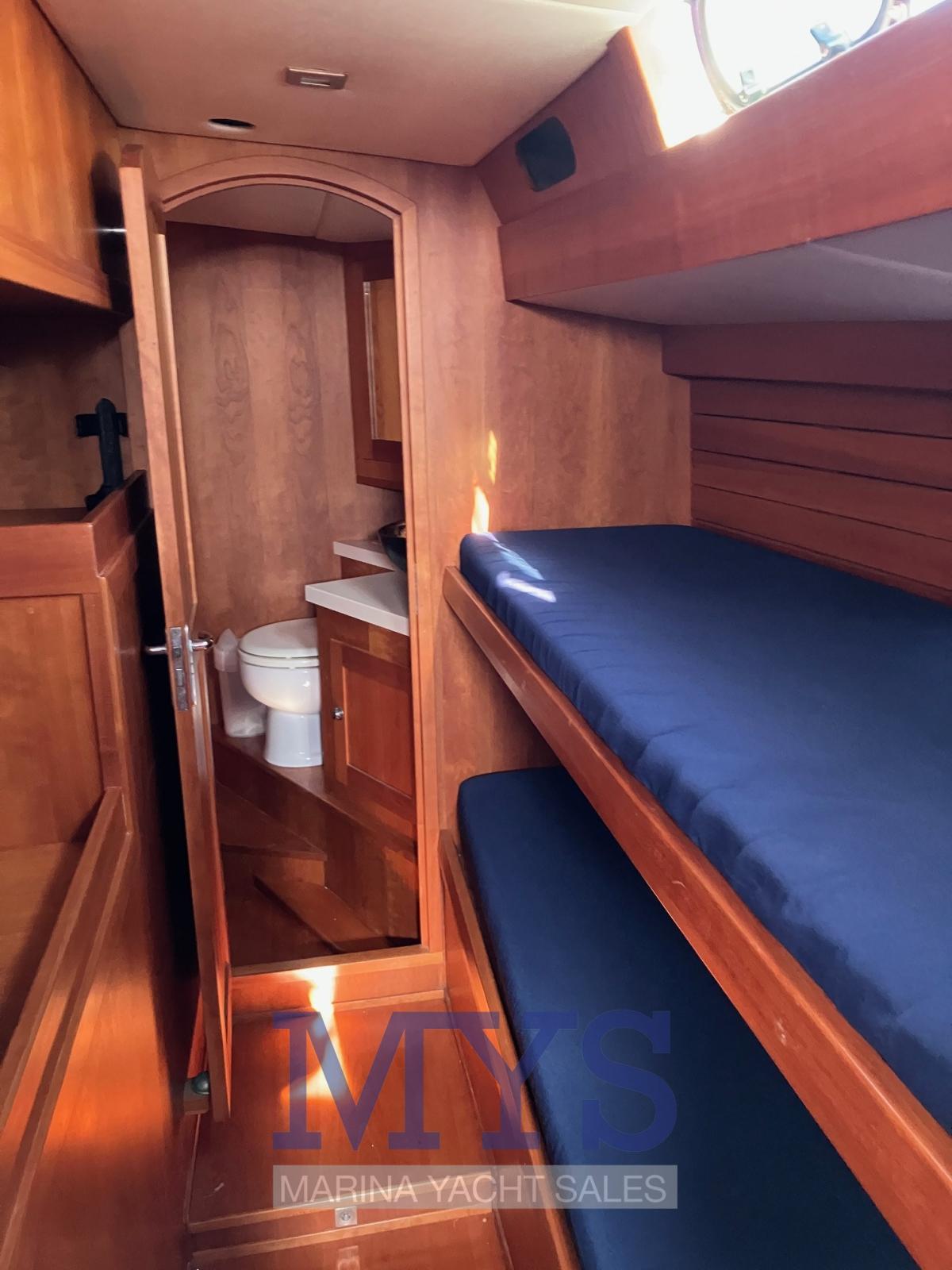 Pompe de cale manuelle, Pont en teck, Cockpit en teck, Prise de quai, Guindeau électrique, Gréement monotoron, Echelle de bain, Pont en teck, Winch (lewmar manuali), Windex.