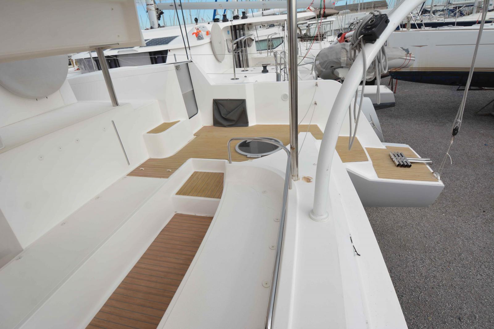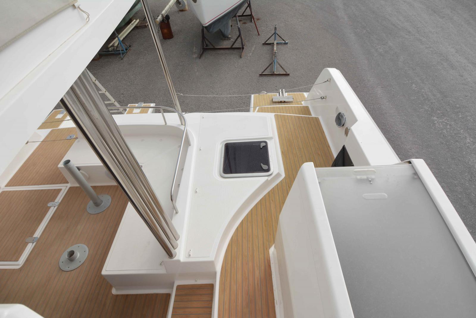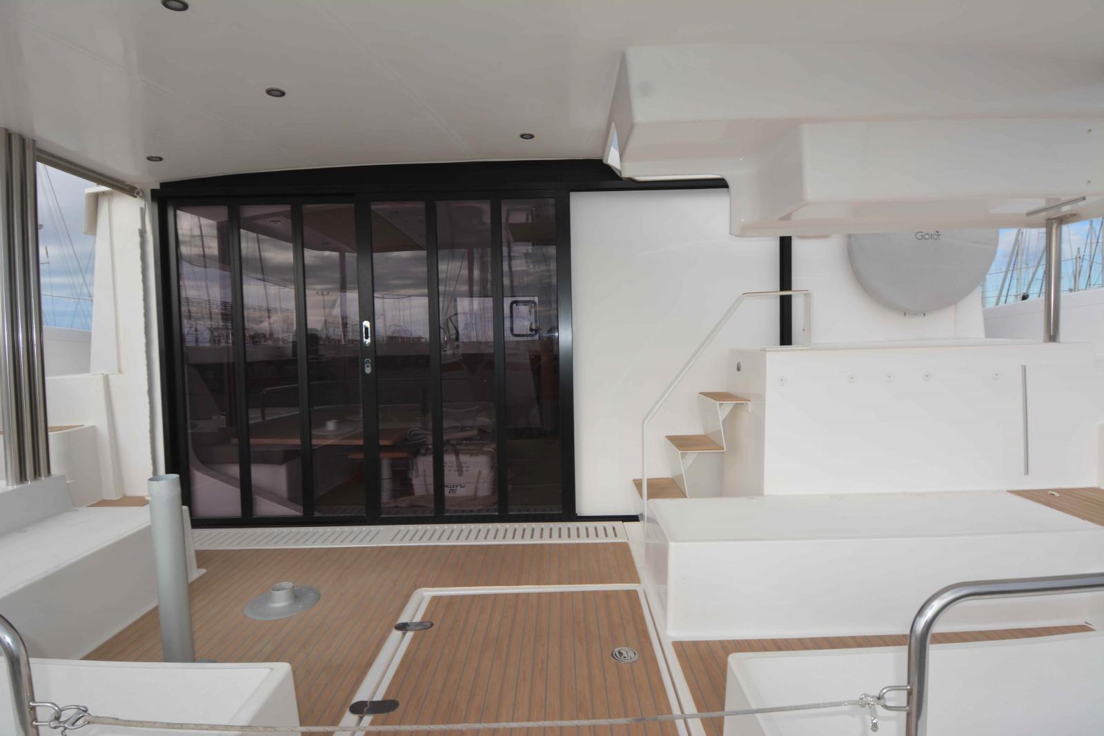 Les espaces de vie sont dignes d'un yacht bien plus grand : salon spacieux et lumineux, cabines confortables, flybridge panoramique, cockpit généreux. La coque centrale abrite les espaces de vie, tandis que les flotteurs offrent un rangement considérable.