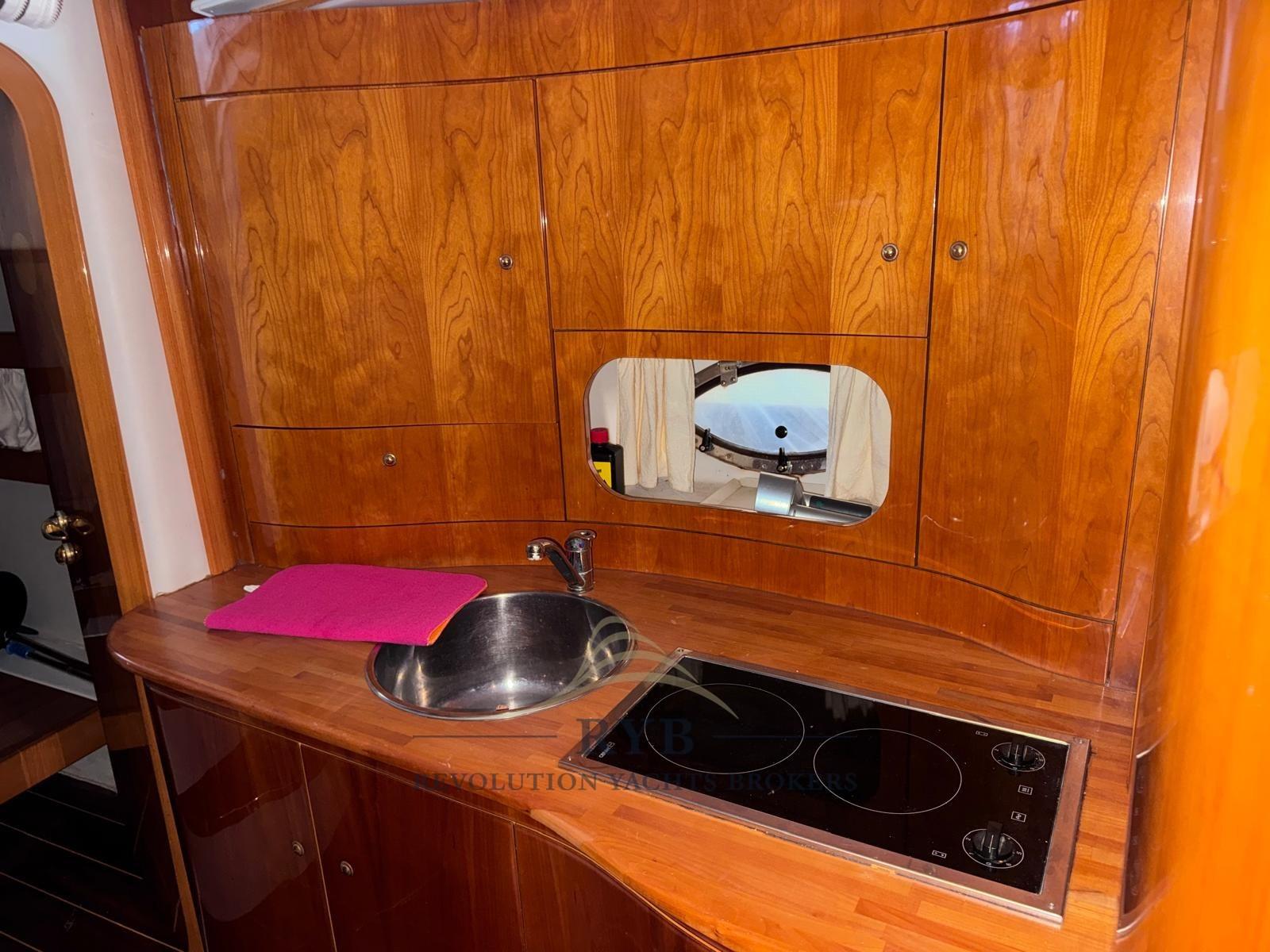 Alarme gaz, Alarme de pompe de cale, Ouverture du compartiment moteur électrique, Eau sous pression, Douche de cockpit, Flaps hydrauliques, Indicateurs de flaps, Lavabo dans le cockpit, Éclairage de courtoisie, Passerelle, Plateforme arrière (TEAK), 3 Pompe de cale automatique, Prise de quai, Rollbar, Guindeau électrique, Echelle de bain, table de cockpit.
