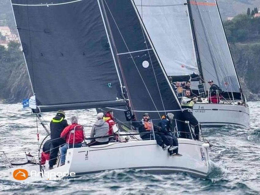 J 111, 2011, Volvo D1-20, 19 cv (780 h), Couchage supplémentaire dans la soute arrière tribord (1.80m x 1.40m), Toiles anti-roulis dans le carré, Housses de protection des boiseries basses du carré (cuisine, table à cartes), Bout-dehors carbone rétractable avec sous-barbe dynemaa pour spi asymétrique, Barre à roue aluminium (roulements remplacés en 2024), Mât carbone haut module, posé sur la quille - Hall Spars, Covering sur mât pour protection UV, Etai double gorge Tasker 2024, Gréement dormant Rod Février 2022, 18 voiles utilisables, Grand voile North 3di 2ris régate 2017 bon état toujours utilisée, Grand voile Quantun Carbon Fusion M7 2023 peu servie, Grand voile North 2011 état 40%, Grand voile North 2014 Etat 40%, J1 + J2 + J3 Black aramid Carbon North 2017 bon état, J4 North Dacron 2017 Trés bon état, Tourmentin North 2017 jamais servi, Code 0 North + galette enrouleur 2017 Très bon état, A3 North 2017 avec fermeture éclair bon état, A3 North 2020 très bon état, J1 + J2 + J3 Quantun 2023 Carbon fusion M7 peu servi, A1 + A2 + A5 Quantun peu servi, Taud de grand voile , Gréement de spi asymétrique, Drisse de Code 0 mouflée, Gréement courant Dyneema haut module 2024, Barbers pour spi et pour génois, Pataras textile sur vérin hydraulique avec renvois latéraux au niveau de la barre d'écoute, Electronique B&G 2024 - Hercules Performance, Pilote automatique in board, Triton BG relié sur nmea pack Zeus 2025, Pack vent ws 320 bluetooth relié centrale 2025, Répétiteur B&G Nemesis 12 pouces sur jumbo de mât, Sonde Dst 810 vitesse / sondeur , Antenne GPS Zg 100 , GPS / Traceur Zeus 12 dans le cockpit – avec cartes Irlande / Angleterre / France, Répétiteur GFD Triton dans le cockpit, Haut-parleur VHF cockpit, Balise de détresse - Ocean Signal, Unité réfrigérante 12 V ouverture par le dessus, Gazinière 2 feux + four, Prise de quai 220 V et cable 15m (2025), Batterie moteur avec chargeur dédié (2025), Batterie service - Lithium 200 Ah avec chargeur dédié (2025), Contrôleur / gestionnaire de batteries - Victron, Chauffage EBERSPACHER, Feux de navigation à LED, Réservoir rigide eaux noires, Radeau de survie - Transocean Plastimo 6 places révisé en 2024, Carène préparée régate dès l'origine et refaite chaque année après ponçage en Speedy Carbonium, Profils quille et safran aux plans de l'architecte, 9 gilets autogonflants / Feux à mains à jour / Extincteurs à réviser, Mouillage principal Guardian avec bout plombé de 25m, Amarres et défenses, Visible Méditerranée. Pour plus d'informations ou pour fixer un rendez-vous de visite, contact : Jean-Baptiste Lemaire 06 10 25 00 03 - jb@antipode-yachts.com