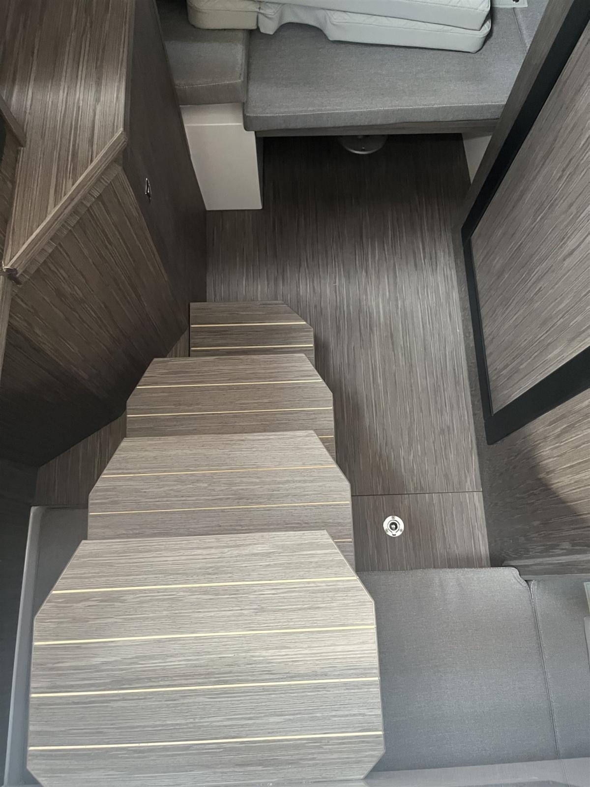 Eau sous pression, Plateforme arrière, Pont en teck (sintetico), Rollbar, Guindeau électrique, Echelle de bain, table de cockpit.