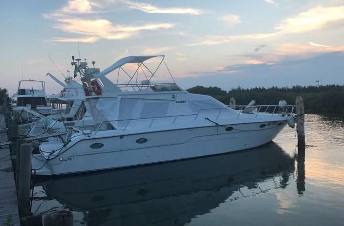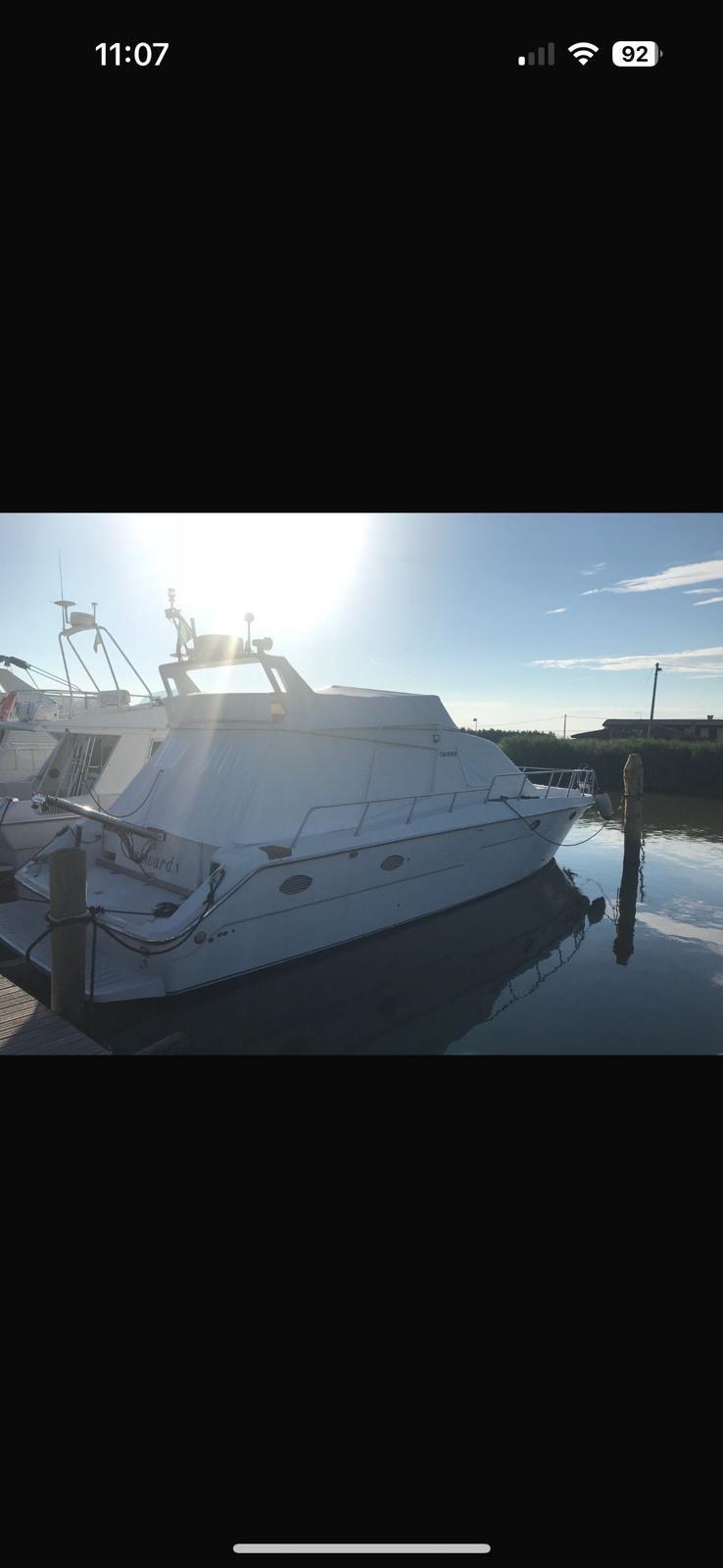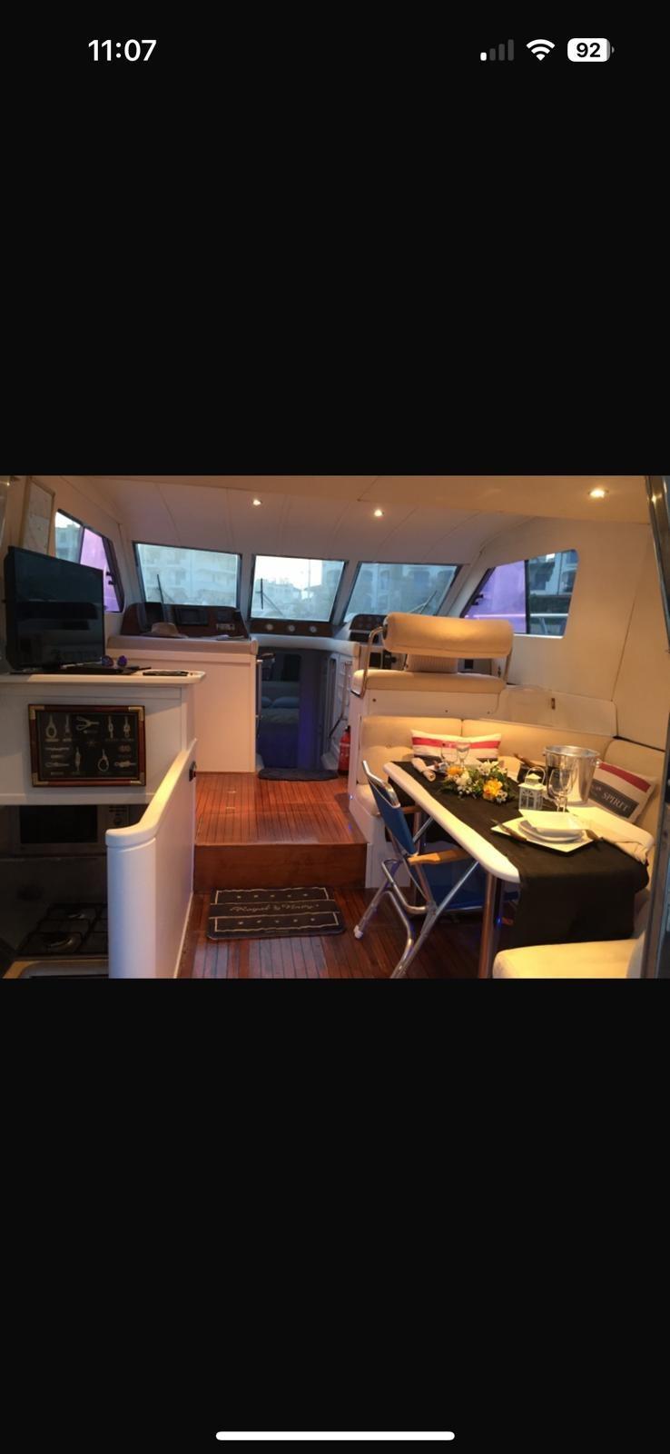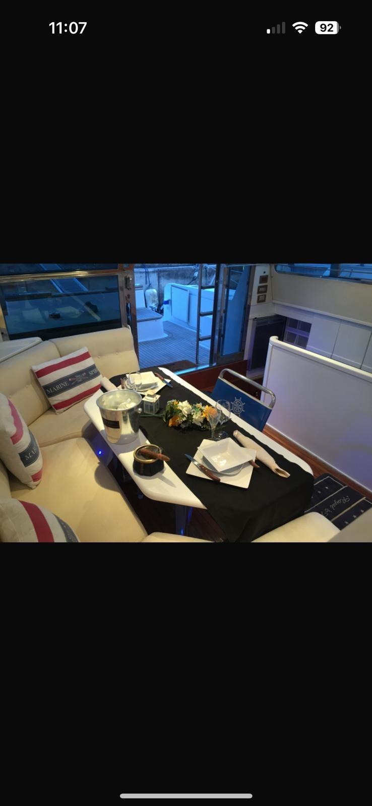 Alarme moteur, Eau sous pression, Douche de cockpit, Flaps hydrauliques, Garage à annexe, Extincteur(s) fixe(s), Éclairage de courtoisie, Défenses, Passerelle, Plateforme arrière, Pompe de cale automatique, Cockpit en teck, Prise de quai, Rollbar, Guindeau électrique, Echelle de bain, Corne.