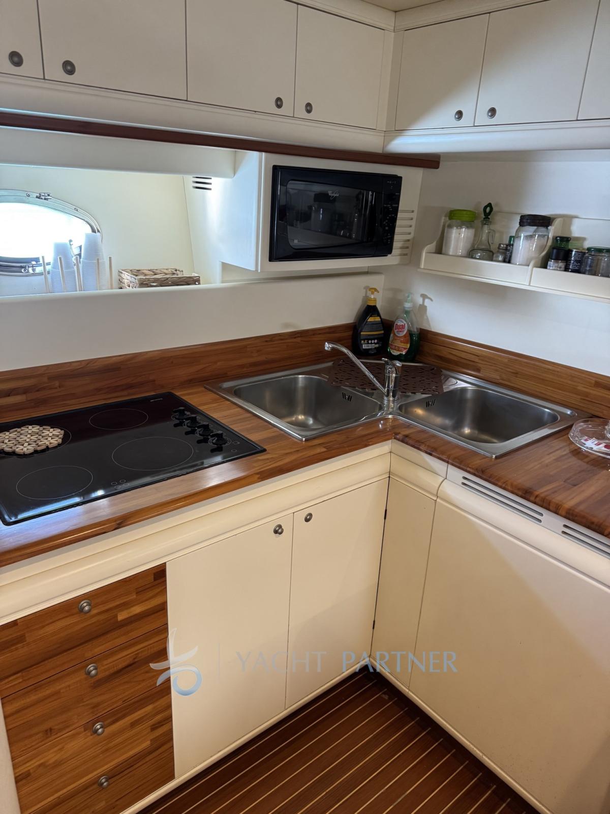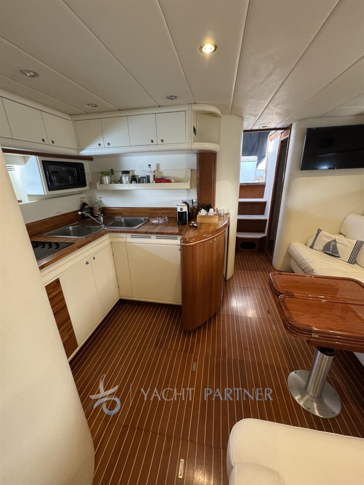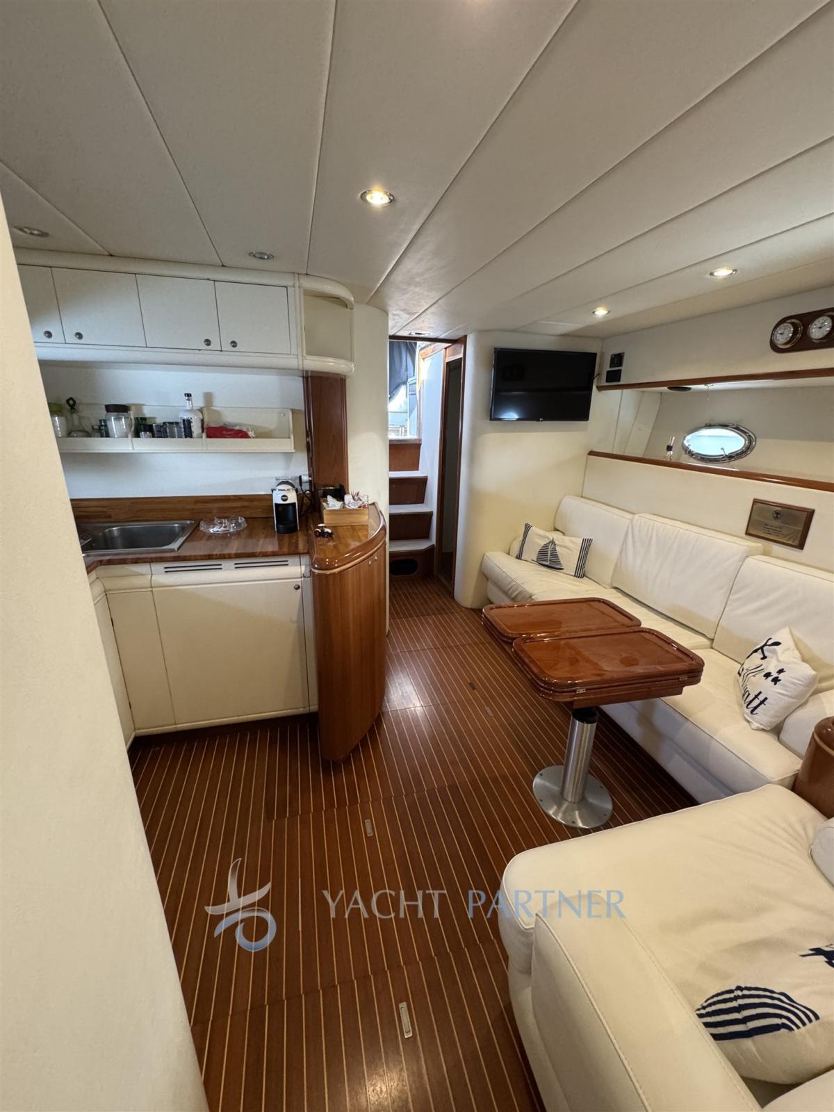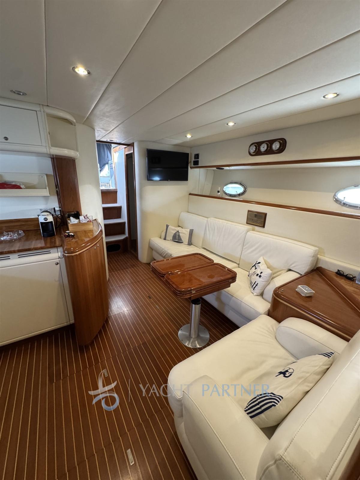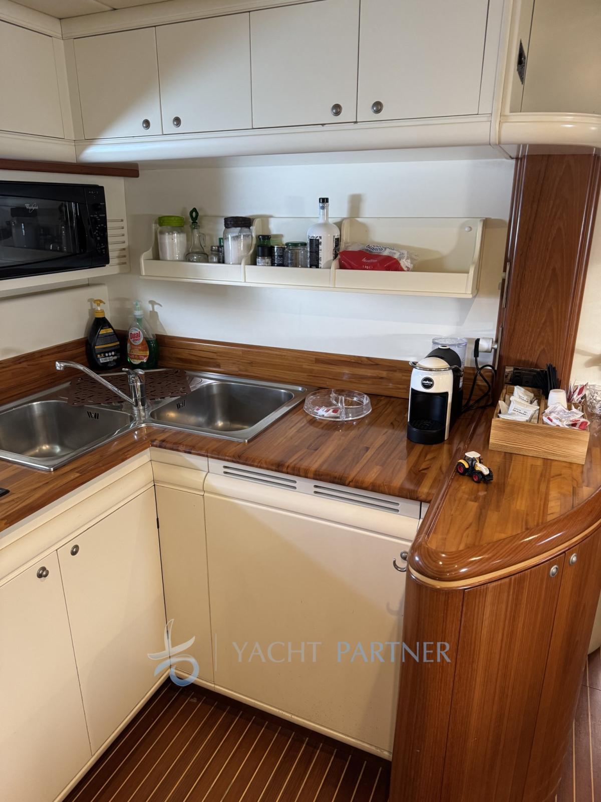 Alarme gaz, Alarme moteur, Alarme de pompe de cale, Eau sous pression, 2 Batteries (800 A/H), Douche de cockpit, Phare de poursuite, Flaps électriques, Extincteur(s) fixe(s), Indicateurs de flaps, Éclairage de courtoisie, Spots sous-marins, 8 Défenses, Passerelle (idraulica), Pompe de cale automatique, Pompe de cale manuelle, Porte latérale, Cockpit en teck, Prise de quai, Connexion eau sous pression à quai, Onduleur, Rollbar, Guindeau électrique, Echelle de bain, table de cockpit, Table pliante de salon, Corne, Winch électrique avant.