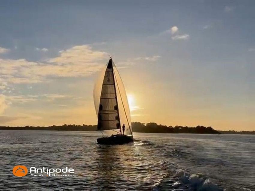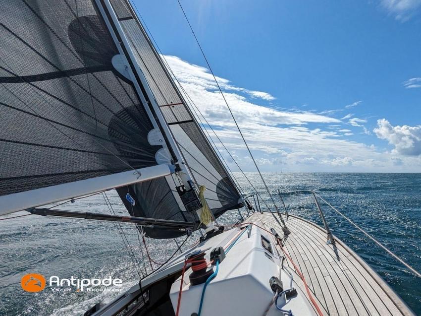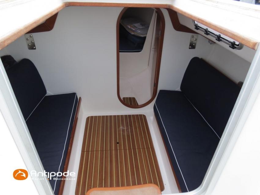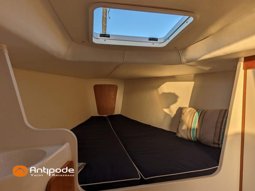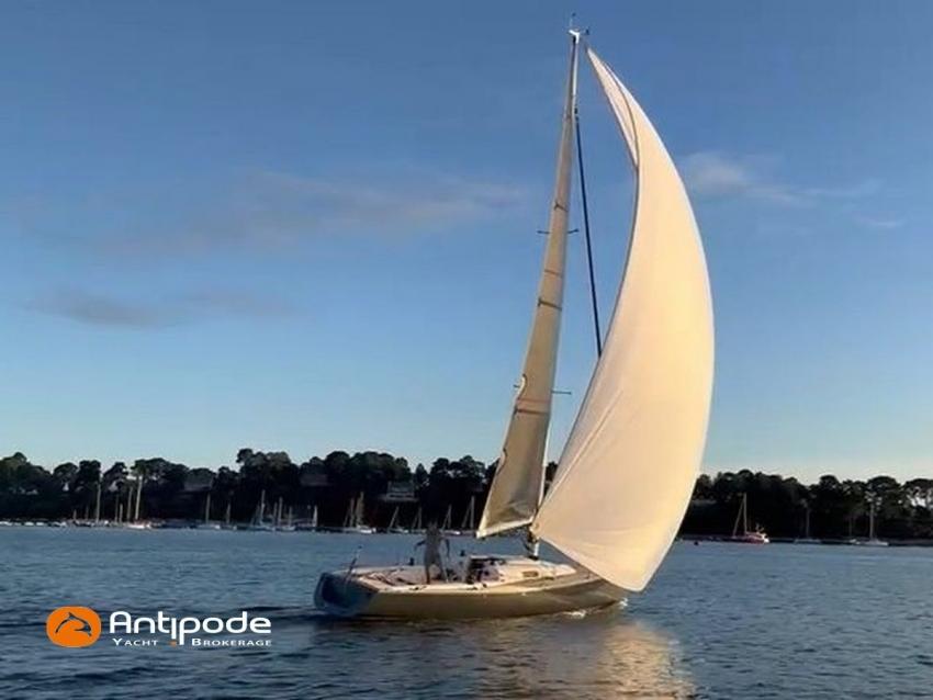 J 100, 2008, Volvo D1 13 B, 12 cv (195.8 h), Aménagement 2 couchages banquettes carré et 1 lit dans pointe avant , 1 WC marin + évier, Option balcon avant chandeliers et filières, Passavants teck, Fond de cockpit latté teck, Taud d'hivernage avec aérateurs, Mât carbone implanté sur la quille, bome aluminium, Grand-voile classique - BX Incidences 2020, Rail de guindant de grand voile + chariots de lattes, Enrouleur de génois avec tambour sur le pont - Harken, Génois sur enrouleur - BX Incidences 2020, Spinnaker asymétrique - Europ Sails, Pataras avec vérin hydraulique (en cours de révision), Pilote automatique de barre franche - Raymarine ST 1000 2018 (connectiques refaites en 2024), Centrale de navigation - Tacktick, Pack Girouette anémomètre - Tacktick, 2 répétiteurs pieds de mât - Tacktick, 1 commande à distance pour contrôle répétiteutrs pied de mât - Tacktick, Glacière portative IGLOO, Prise de quai 220 V + chargeur de batteries, Batterie moteur, Batteries service, Pompe à main eau douce, Pas d'équipement de sécurité, Annexe , Visible Bretagne. Pour plus d'informations ou pour fixer un rendez-vous de visite, contact : Jean-Baptiste Lemaire 06 10 25 00 03 - jb@antipode-yachts.com