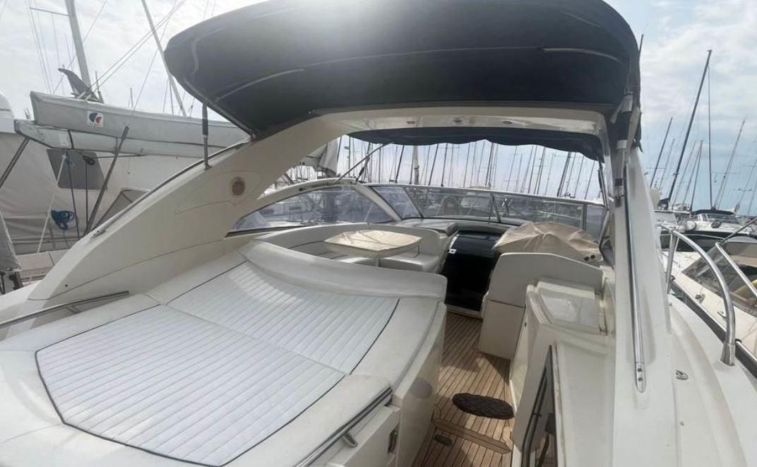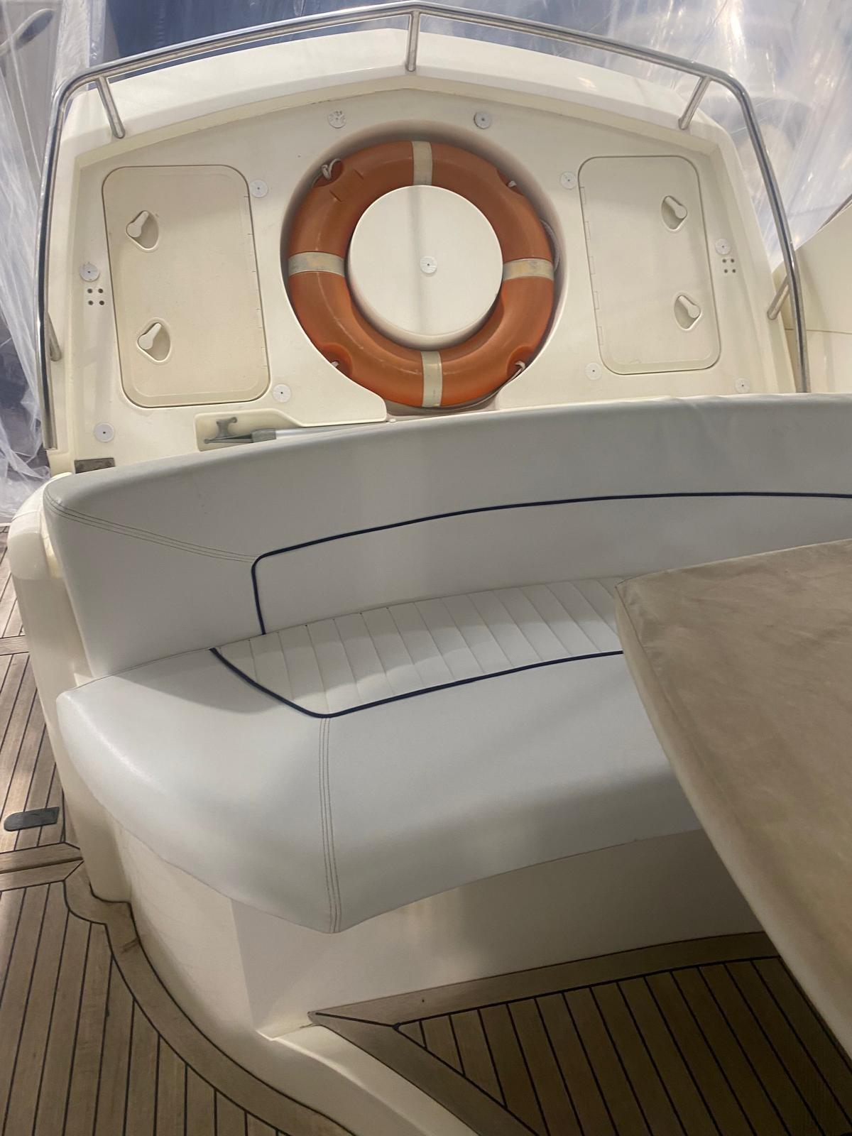 Alarme moteur, Eau sous pression, Douche de cockpit, Garage à annexe, Hard top, Moteur hors-bord pour annexe, Défenses, Passerelle, Plateforme arrière, Cockpit en teck, Prise de quai, Connexion eau sous pression à quai, Guindeau électrique, Echelle de bain, Annexe.