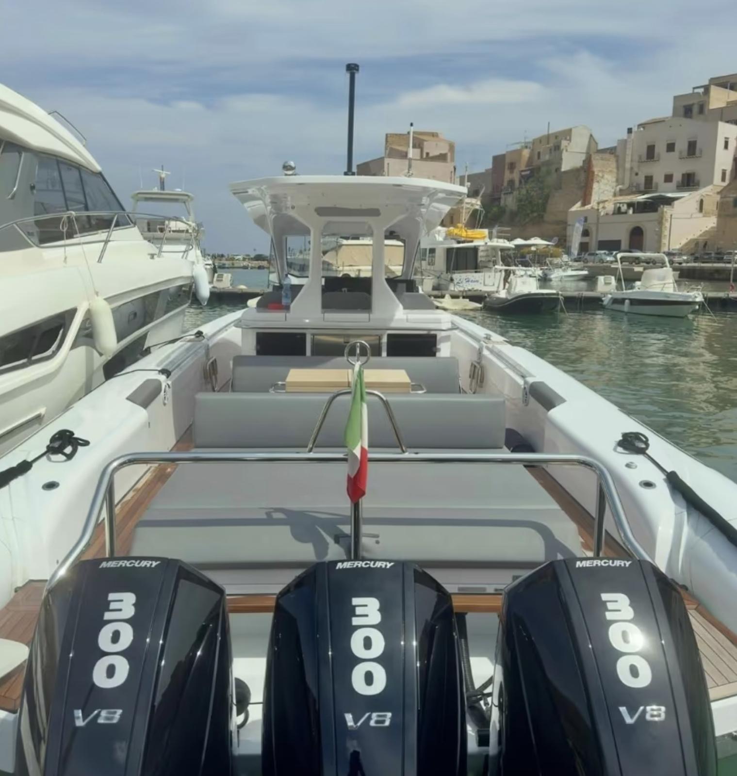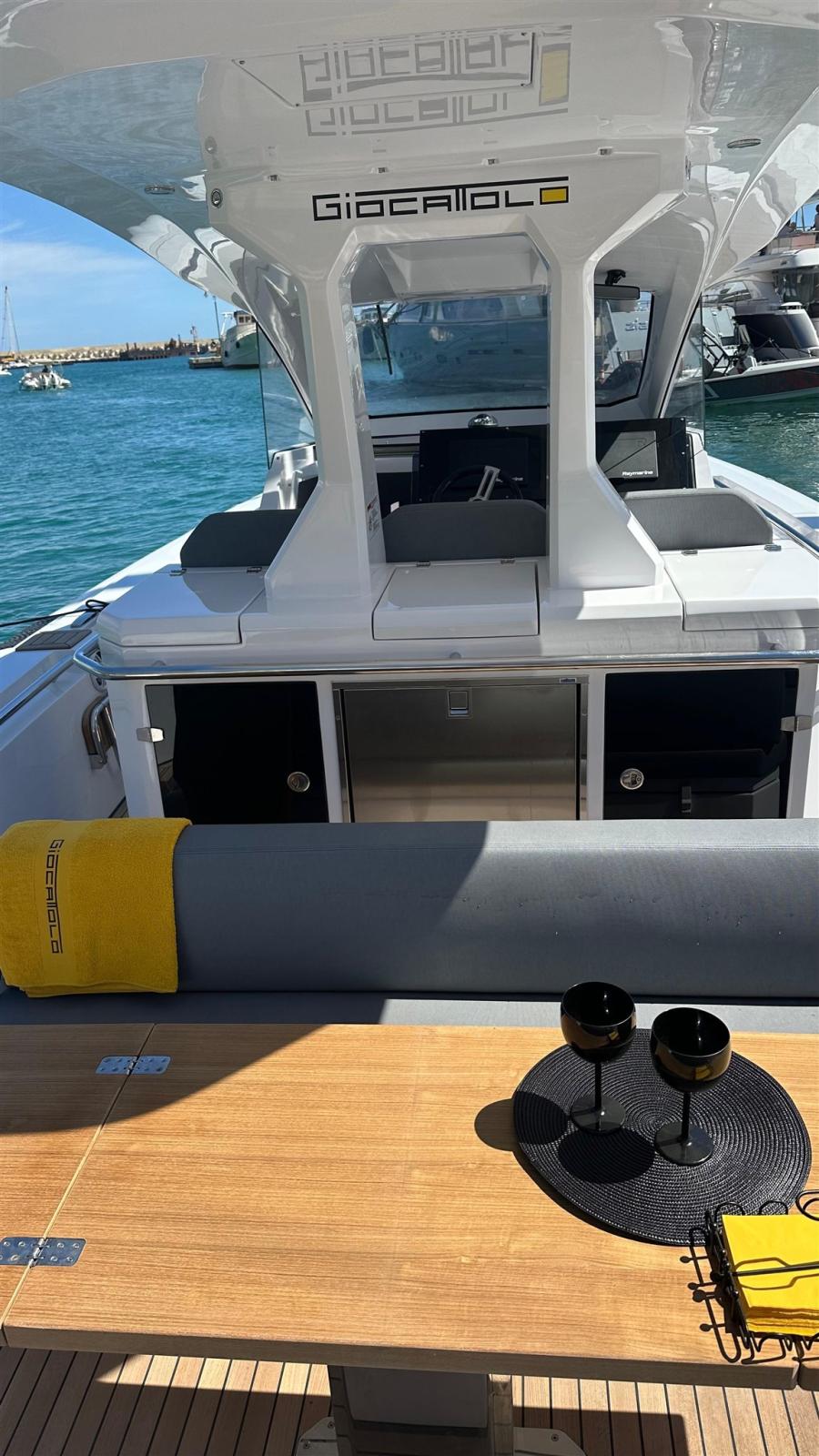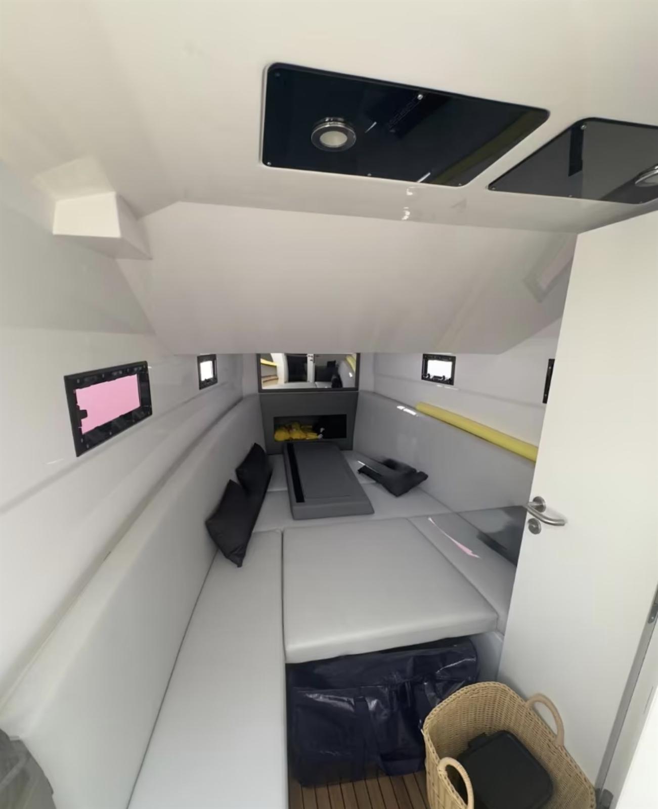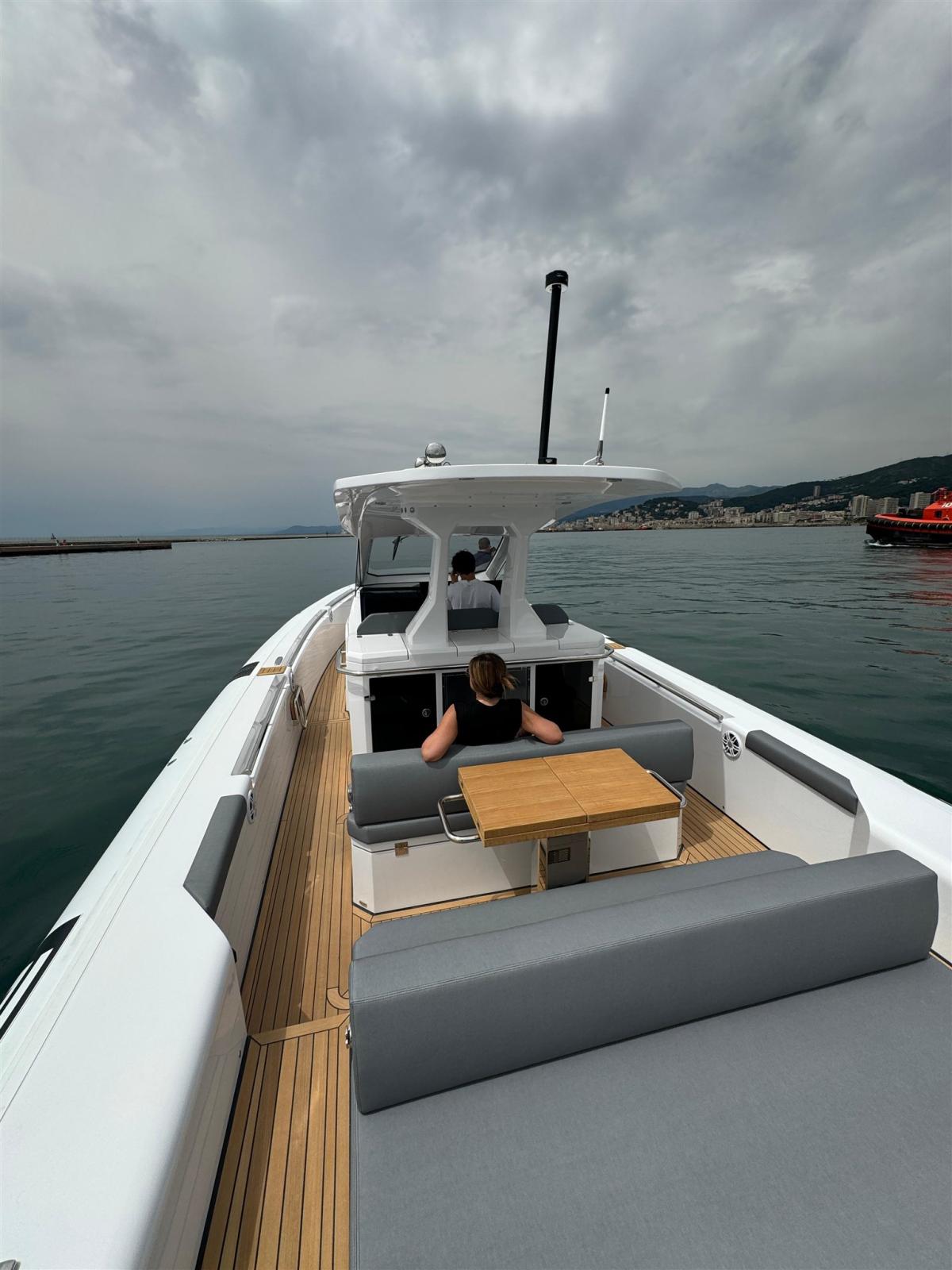 6 Batteries, Douche de cockpit (with fresh water system), Éclairage de courtoisie, Spots sous-marins, Défenses, Pont en teck, Cockpit en teck, Prise de quai, Guindeau électrique, Echelle de bain, table de cockpit, Corne, T-Top.