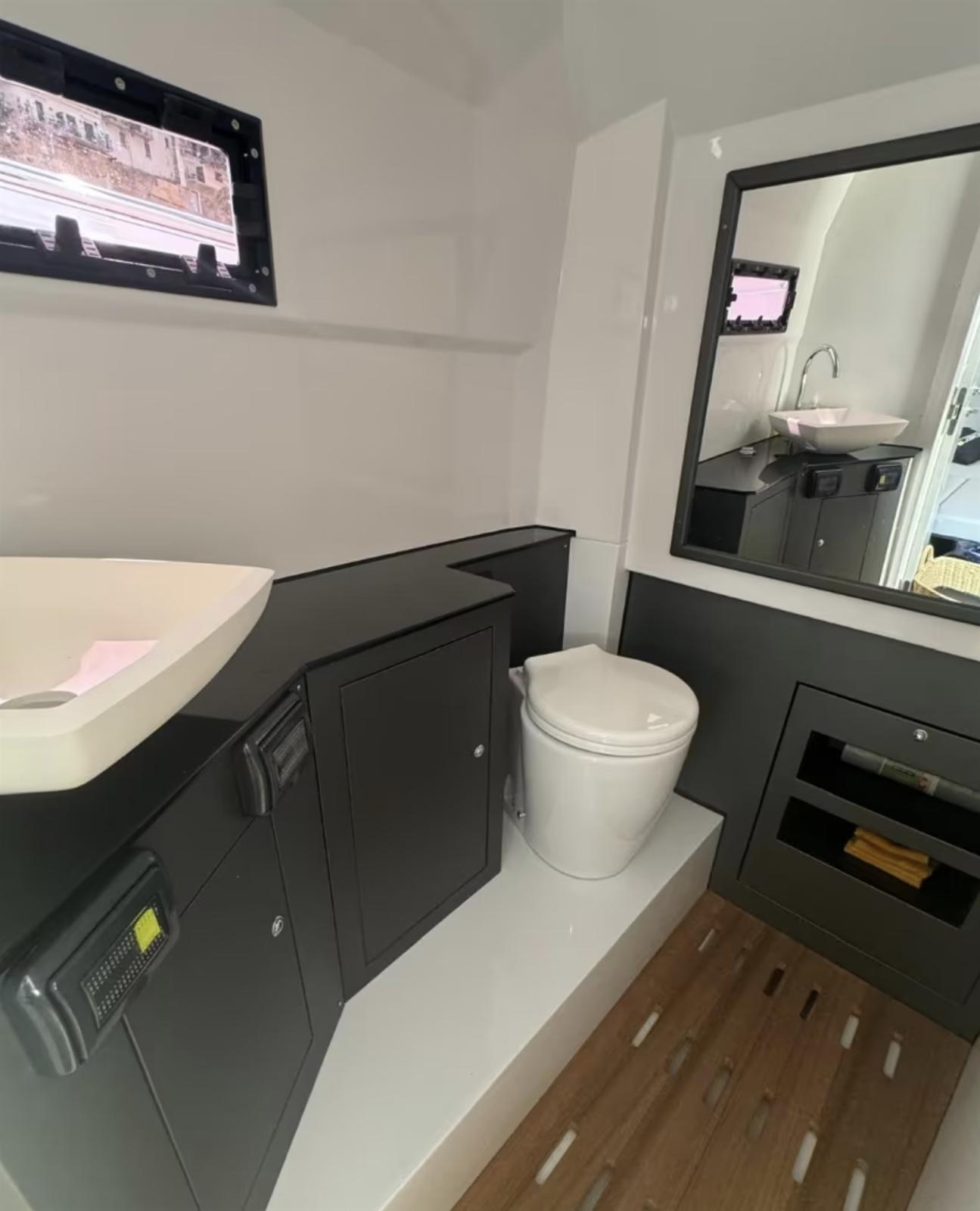 Eau Chaude, Ballon d'eau chaude, Cuve à eaux noires, Prises interieures 12v, Prises interieures 220v, Toilettes électriques.