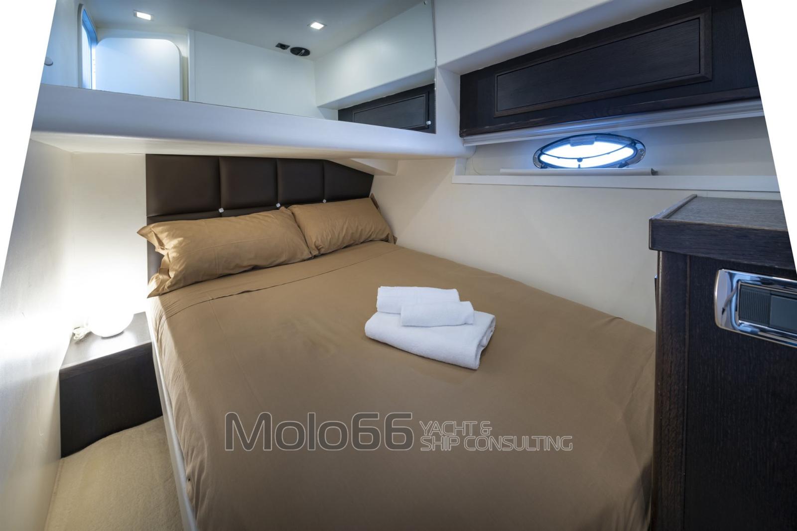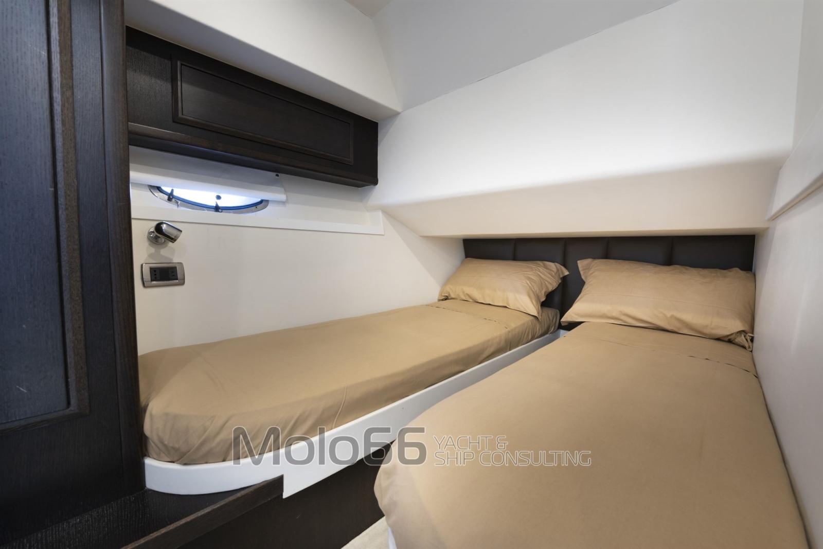 Alarme moteur, Alarme de pompe de cale, Eau sous pression, Douche de cockpit, Flaps hydrauliques, Hard top, Extincteur(s) fixe(s), Passerelle, Plateforme arrière, Cockpit en teck, Prise de quai, Guindeau électrique, Echelle de bain, table de cockpit, Corne.