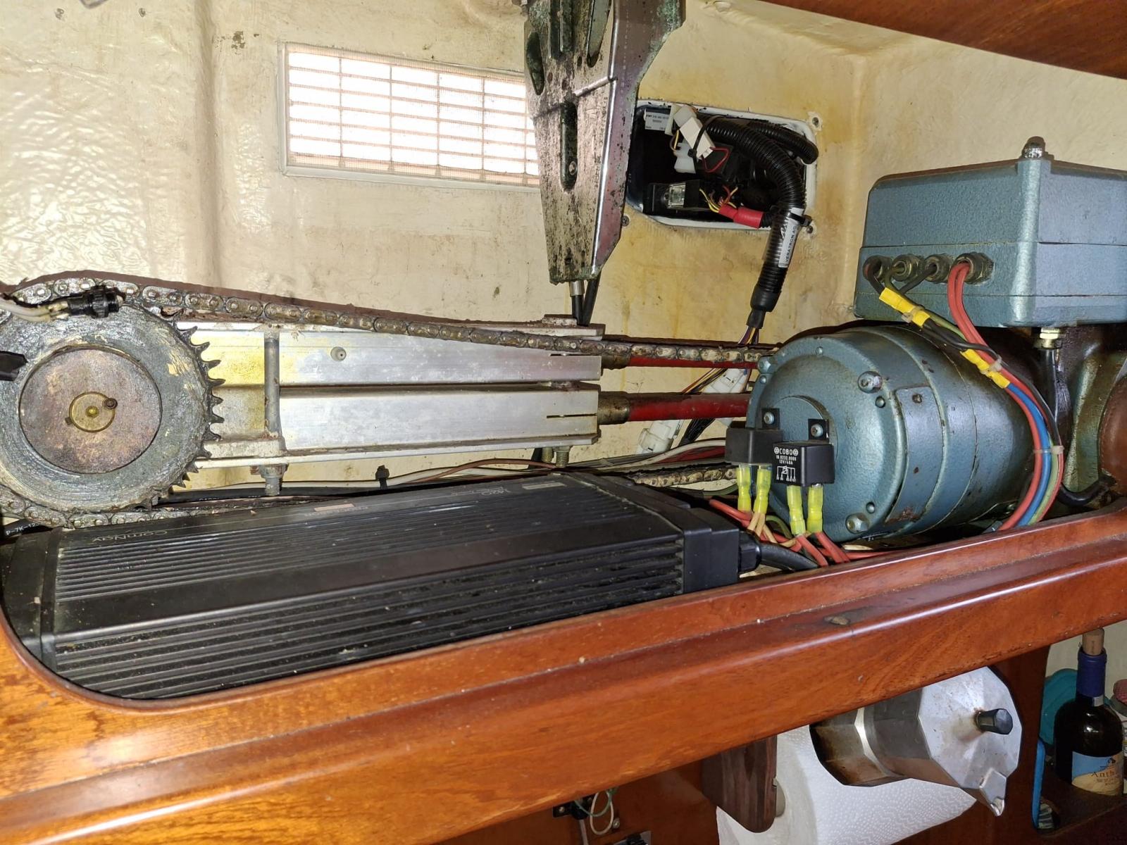 Indicateur d'angle de barre, Pilote automatique (Neco), Plotter GPS, Anémomètre/Girouette (B&G).