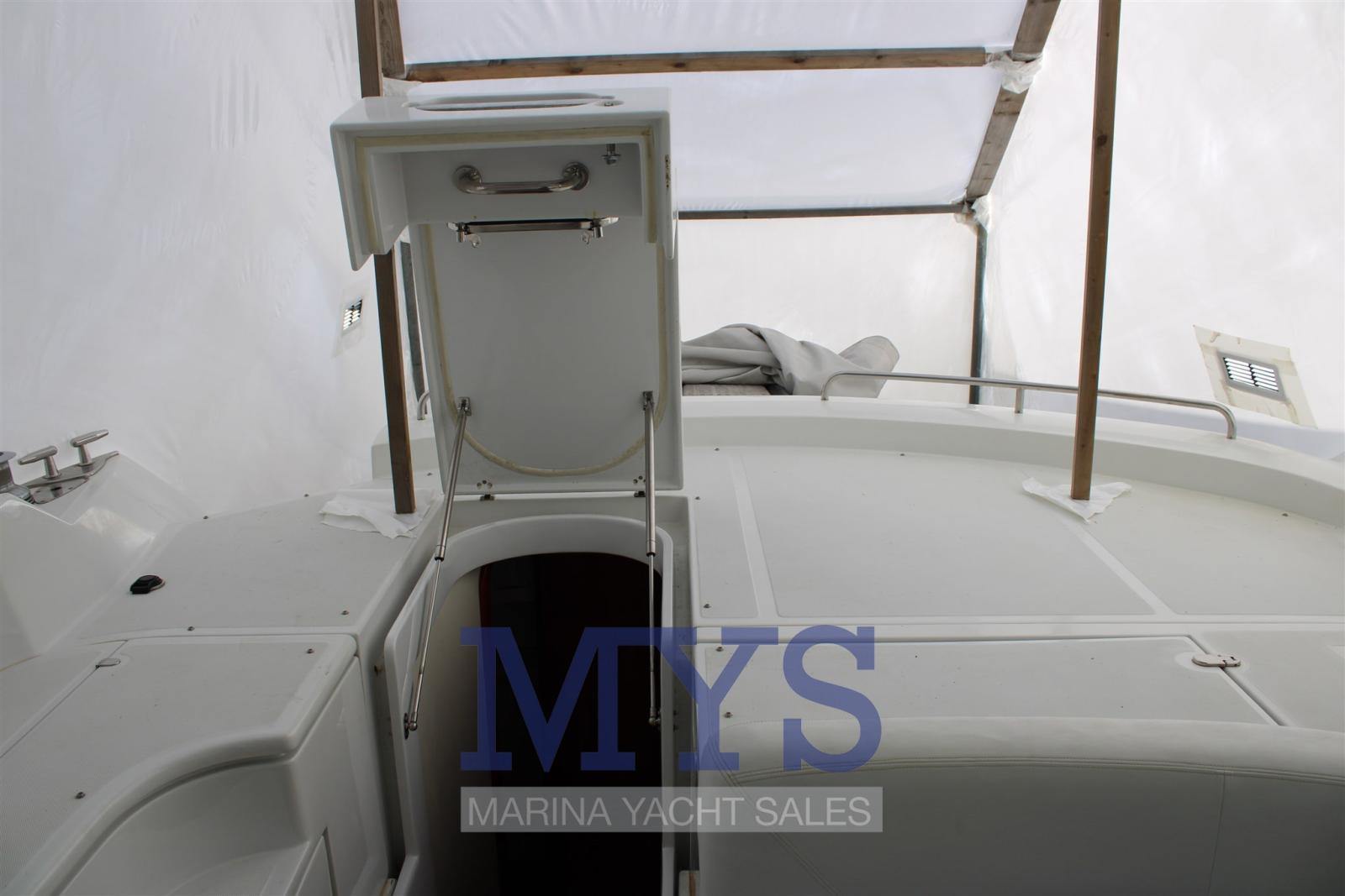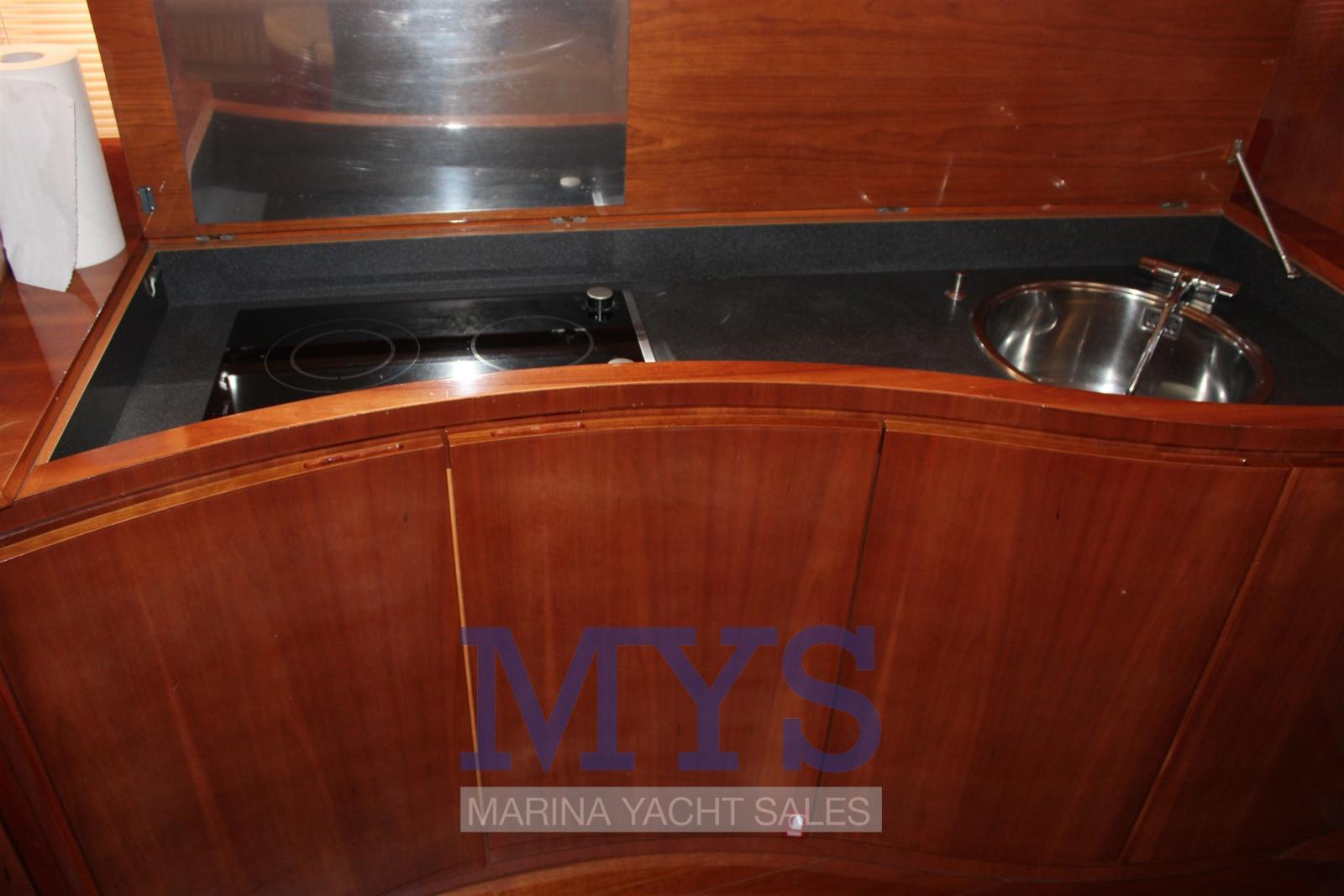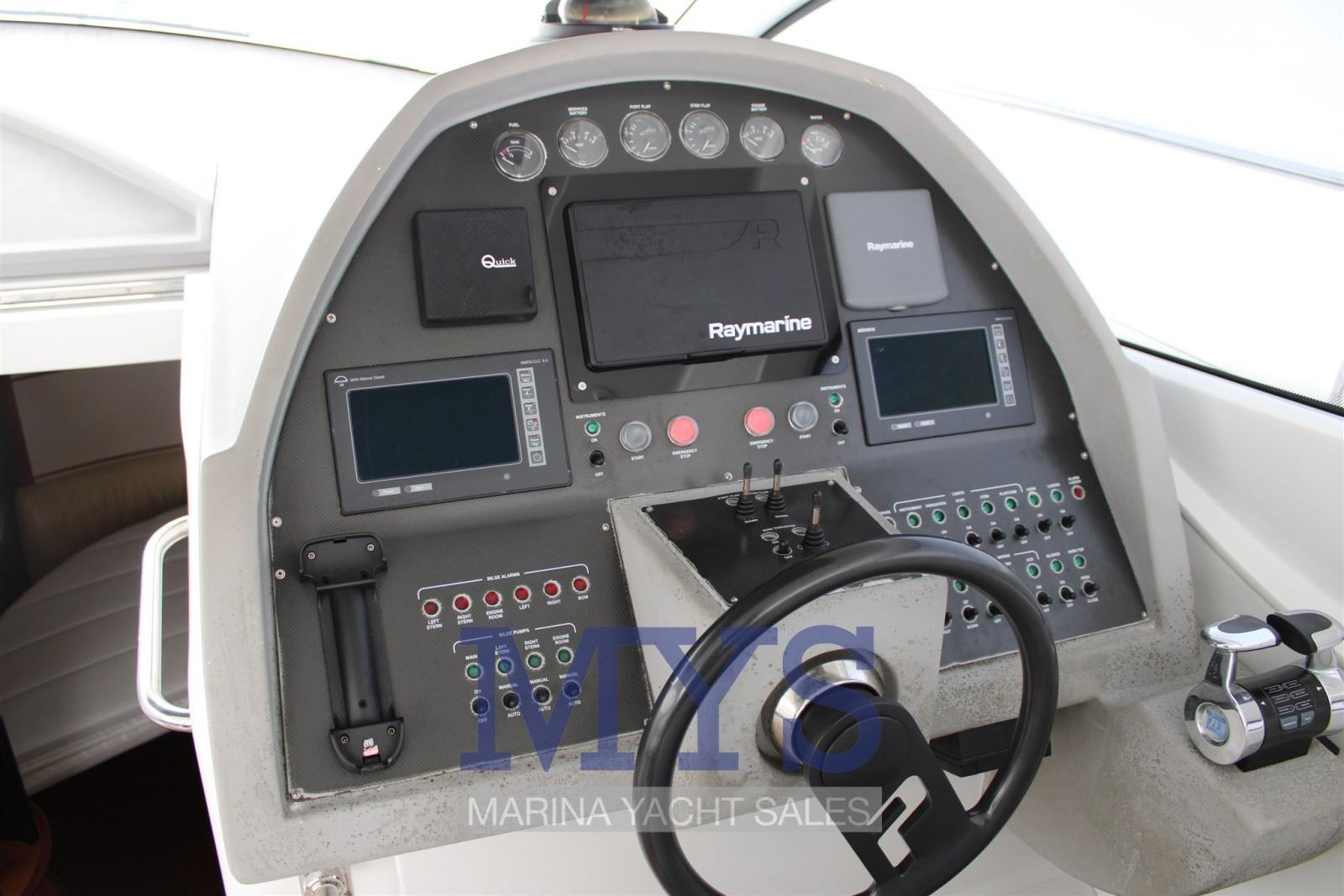 Alarme moteur, Eau sous pression, Douche de cockpit, Flaps hydrauliques, Hard top, Extincteur(s) fixe(s), Indicateurs de flaps, Lavabo dans le cockpit, Éclairage de courtoisie, Spots sous-marins, Passerelle, Plateforme arrière, Pompe de cale automatique, Cockpit en teck, Prise de quai, Connexion eau sous pression à quai, Guindeau électrique, Echelle de bain, table de cockpit, Corne.