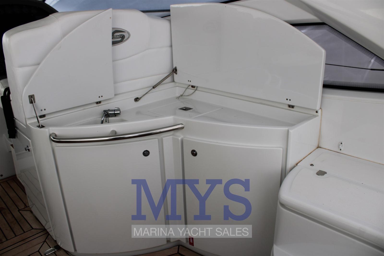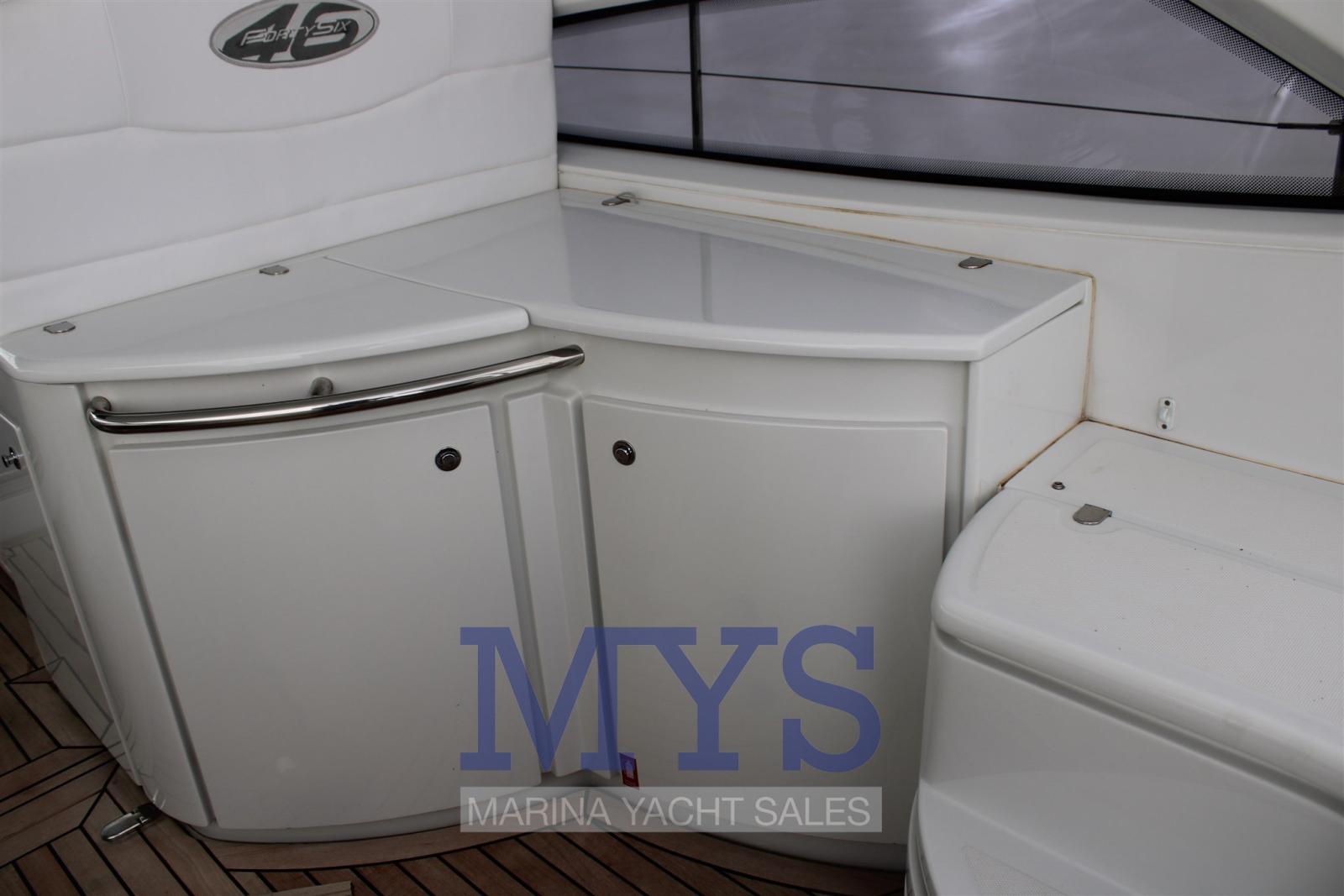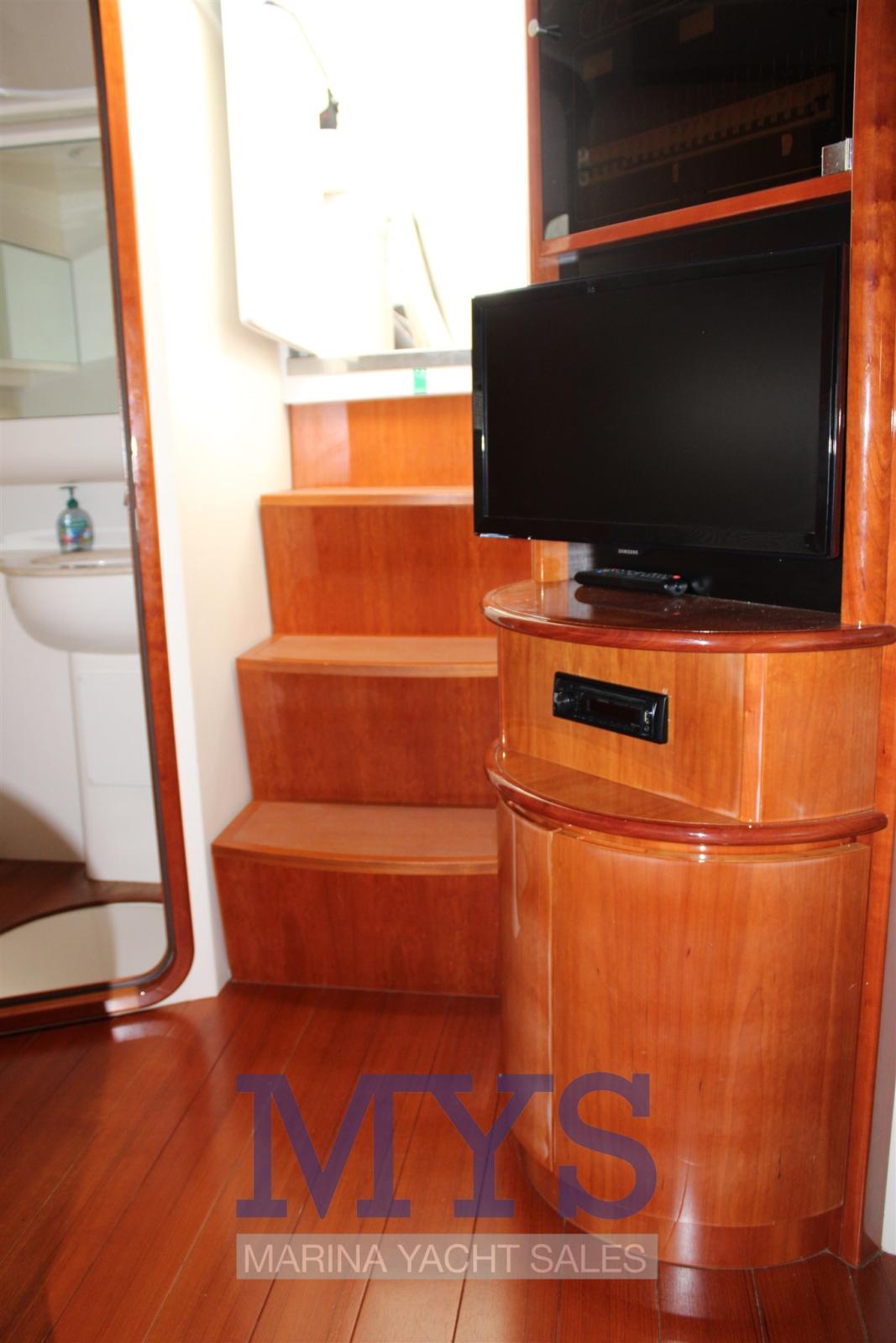 Alarme moteur, Eau sous pression, Douche de cockpit, Flaps hydrauliques, Hard top, Extincteur(s) fixe(s), Indicateurs de flaps, Lavabo dans le cockpit, Éclairage de courtoisie, Spots sous-marins, Passerelle, Plateforme arrière, Pompe de cale automatique, Cockpit en teck, Prise de quai, Connexion eau sous pression à quai, Guindeau électrique, Echelle de bain, table de cockpit, Corne.