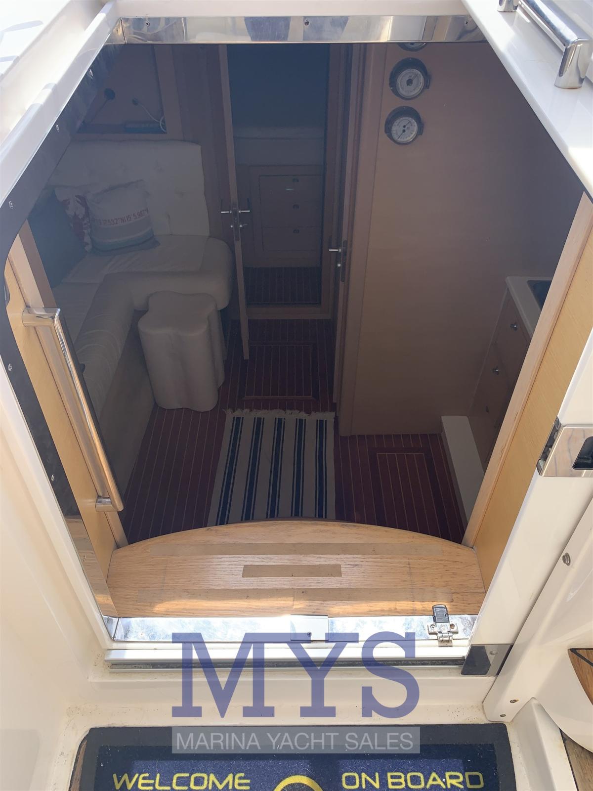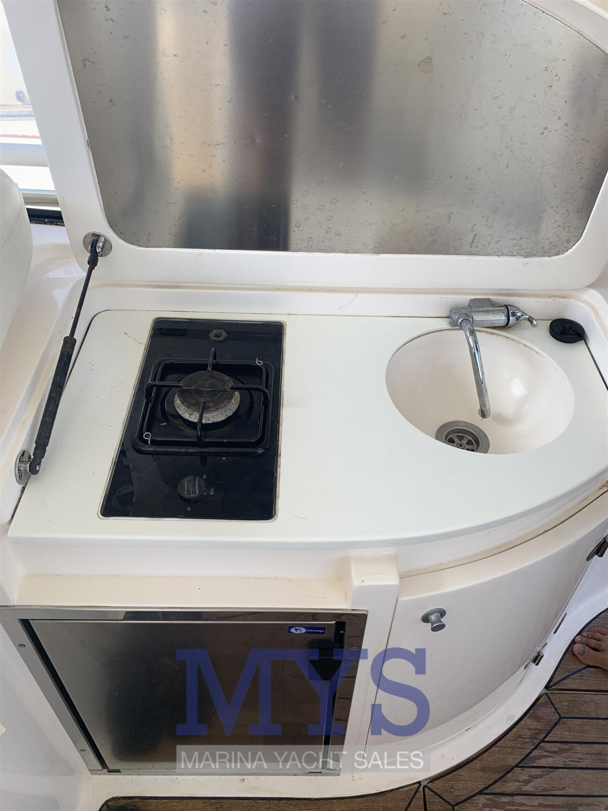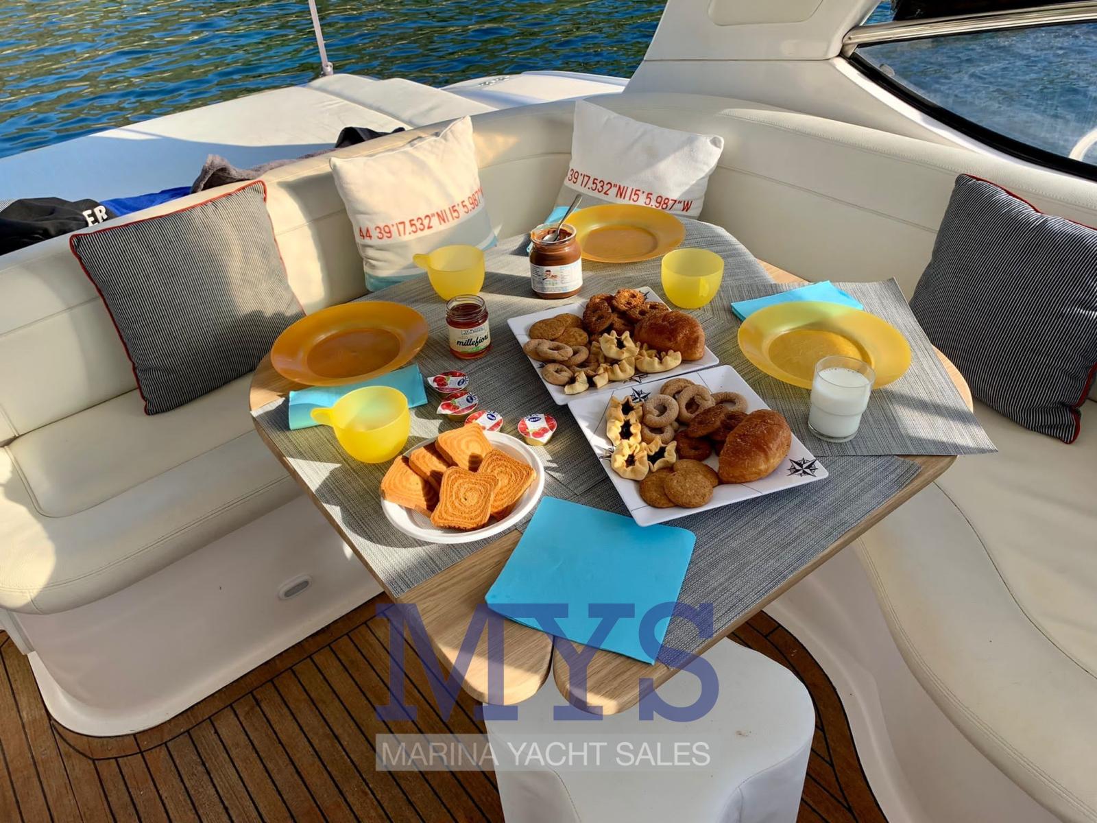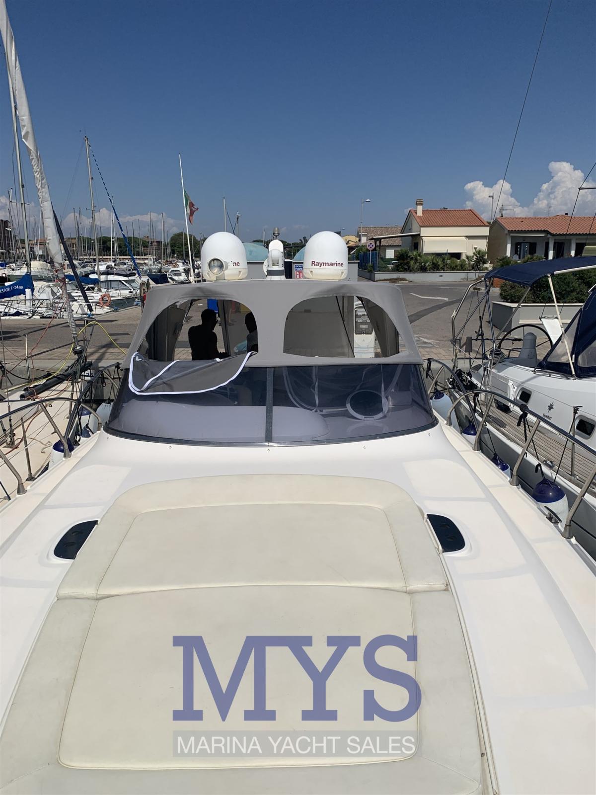 Alarme moteur, Ouverture du compartiment moteur électrique, Eau sous pression, Couleur spéciale, Douche de cockpit, Flaps hydrauliques, Extincteur(s) fixe(s), Indicateurs de flaps, Éclairage de courtoisie, Spots sous-marins, Passerelle (A SCOMPARSA), Plateforme arrière, Pompe de cale automatique, Cockpit en teck, Prise de quai, Onduleur, Rollbar, Guindeau électrique, Echelle de bain, table de cockpit, Corne.
