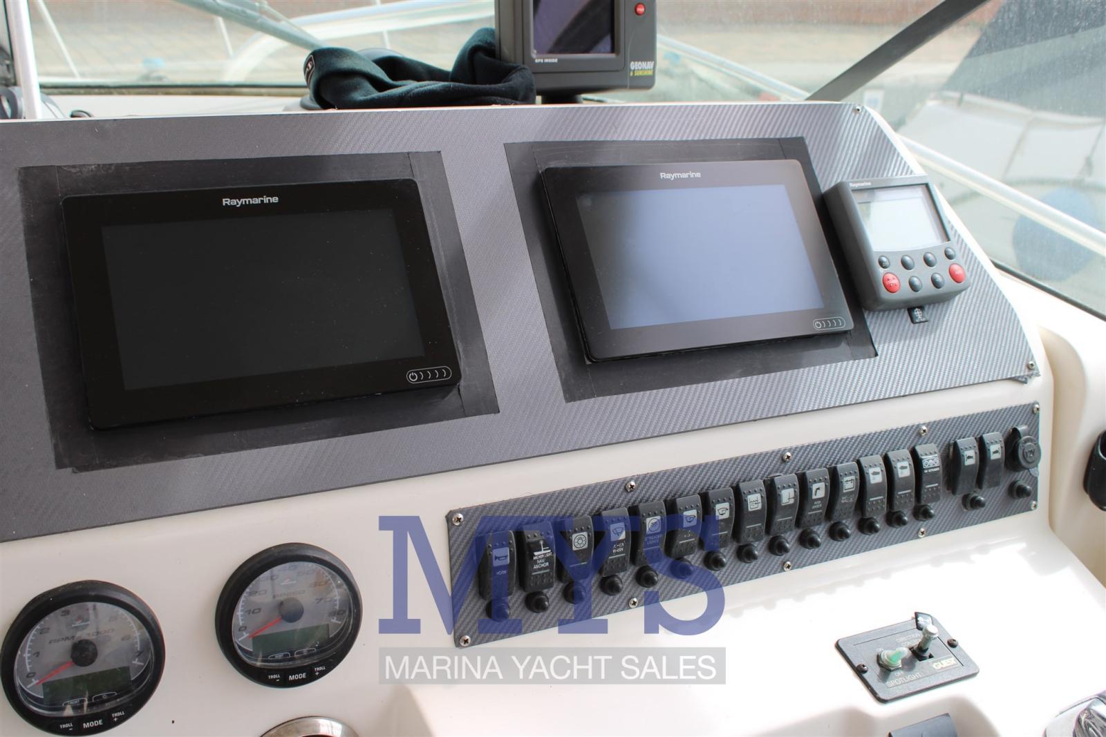 Alarme moteur, Eau sous pression, 5 Batteries, Douche de cockpit, Phare de poursuite, Flaps hydrauliques, Indicateurs de flaps, Lavabo dans le cockpit, Éclairage de courtoisie, Moteur d'annexe, Pompe de cale automatique, Prise de quai, Onduleur, Guindeau électrique, Echelle de bain, Corne, T-Top.