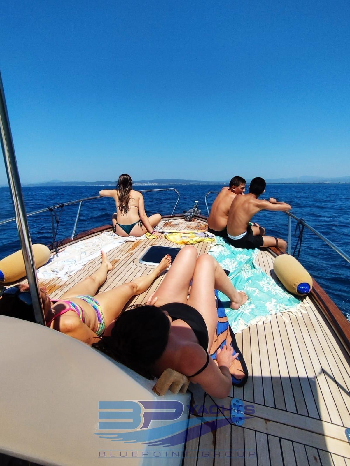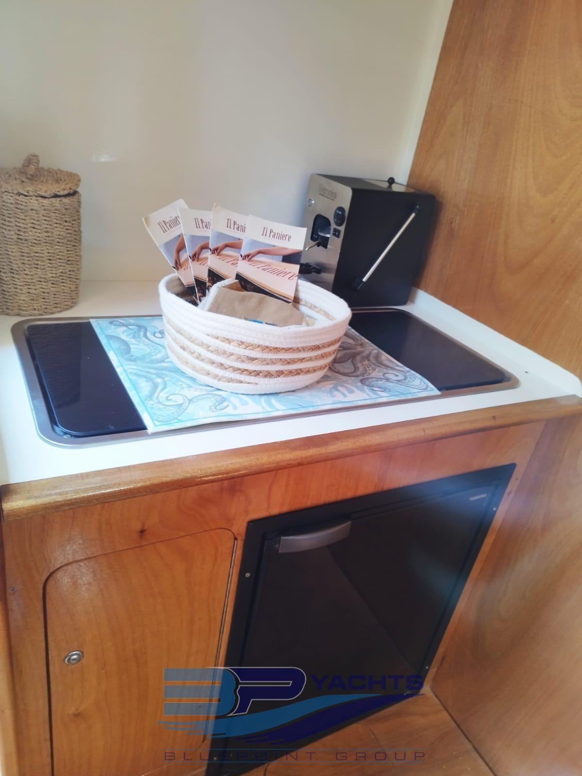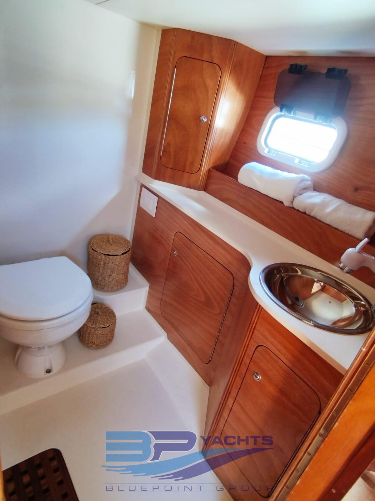 Eau sous pression, Spots sous-marins, Pont en teck, Cockpit en teck, Prise de quai, Guindeau électrique, table de cockpit, Corne.