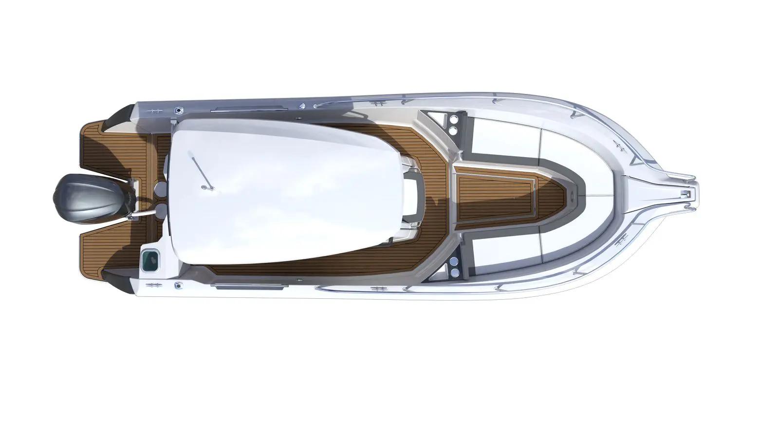 Naviguez en croisière, en pêche, en plongée, en ski nautique ou en promenade avec cette unité de 7,75 mètres, conçue avec une grande attention aux détails pour offrir une croisière rapide et un confort exceptionnel à bord. Sa ligne innovante, à la fois sportive et élégante, garantit des performances élevées.