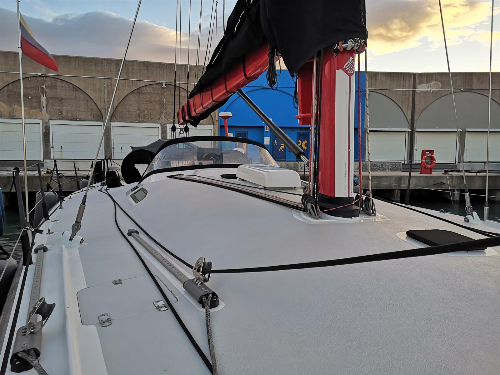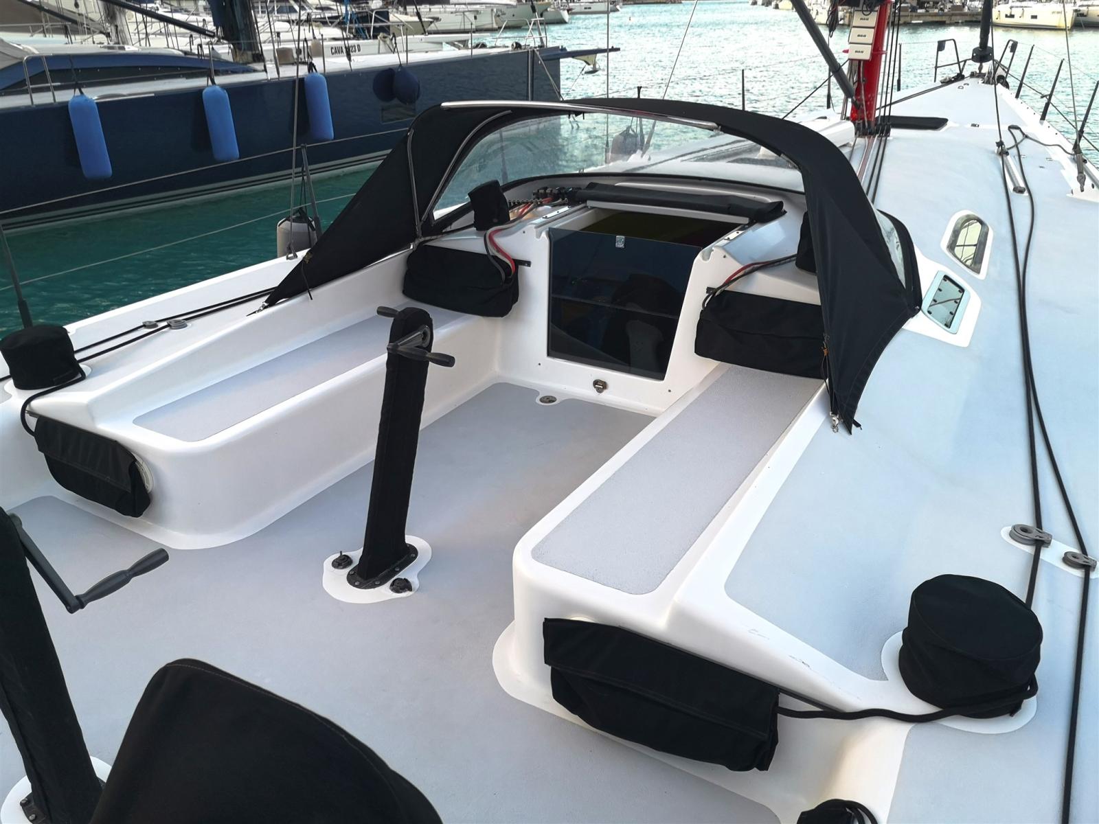 La disposition du pont permet un contrôle réduit de l’équipage, tout en étant un yacht de course très compétitif.
