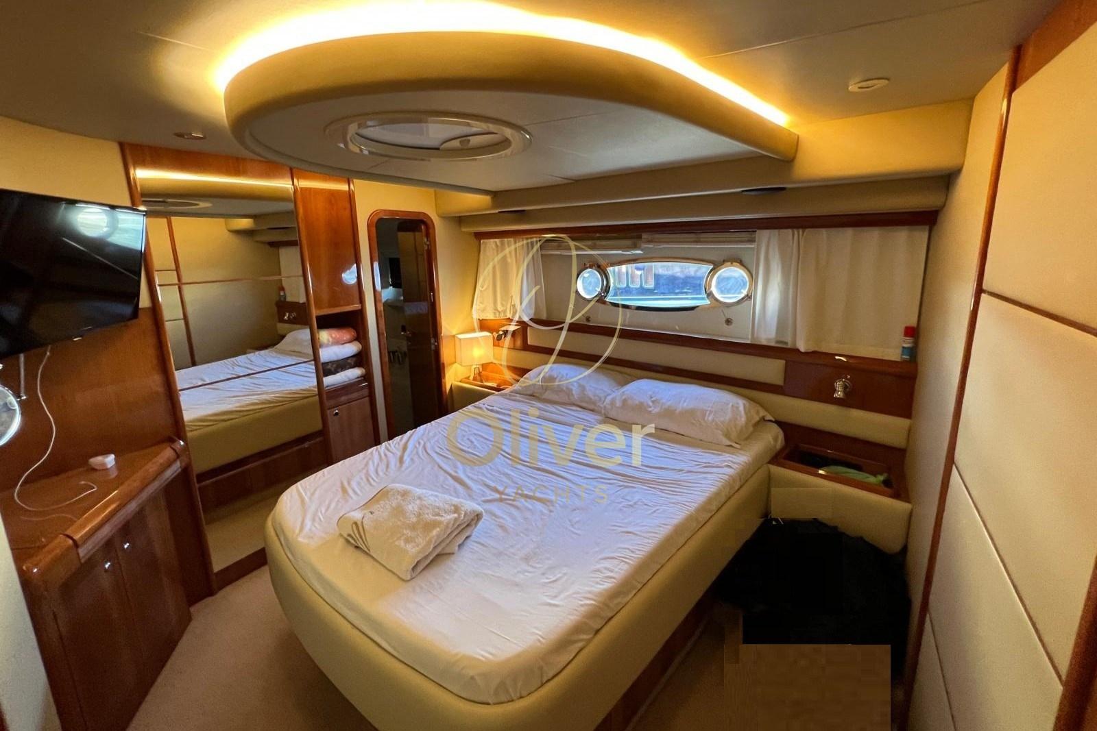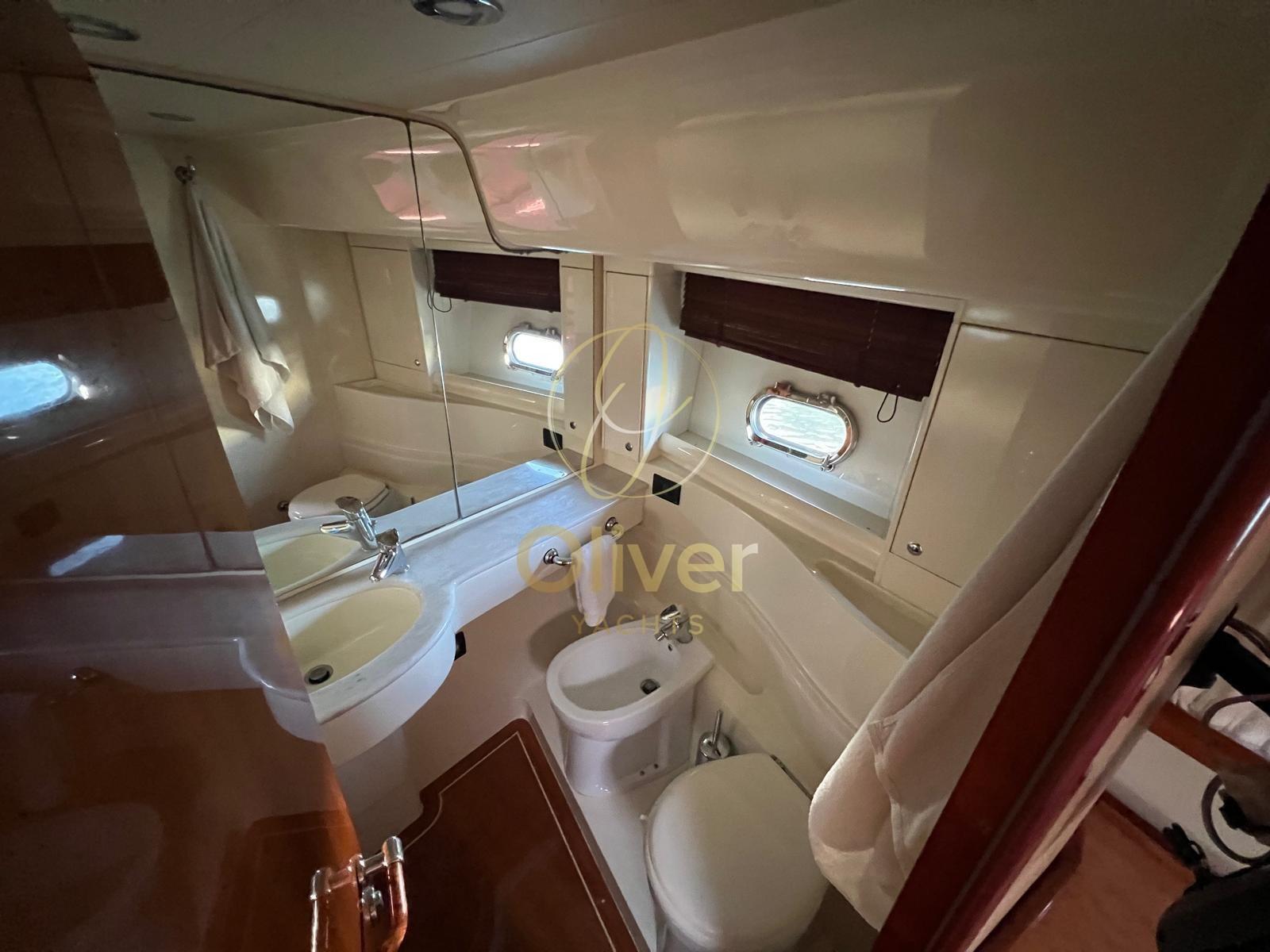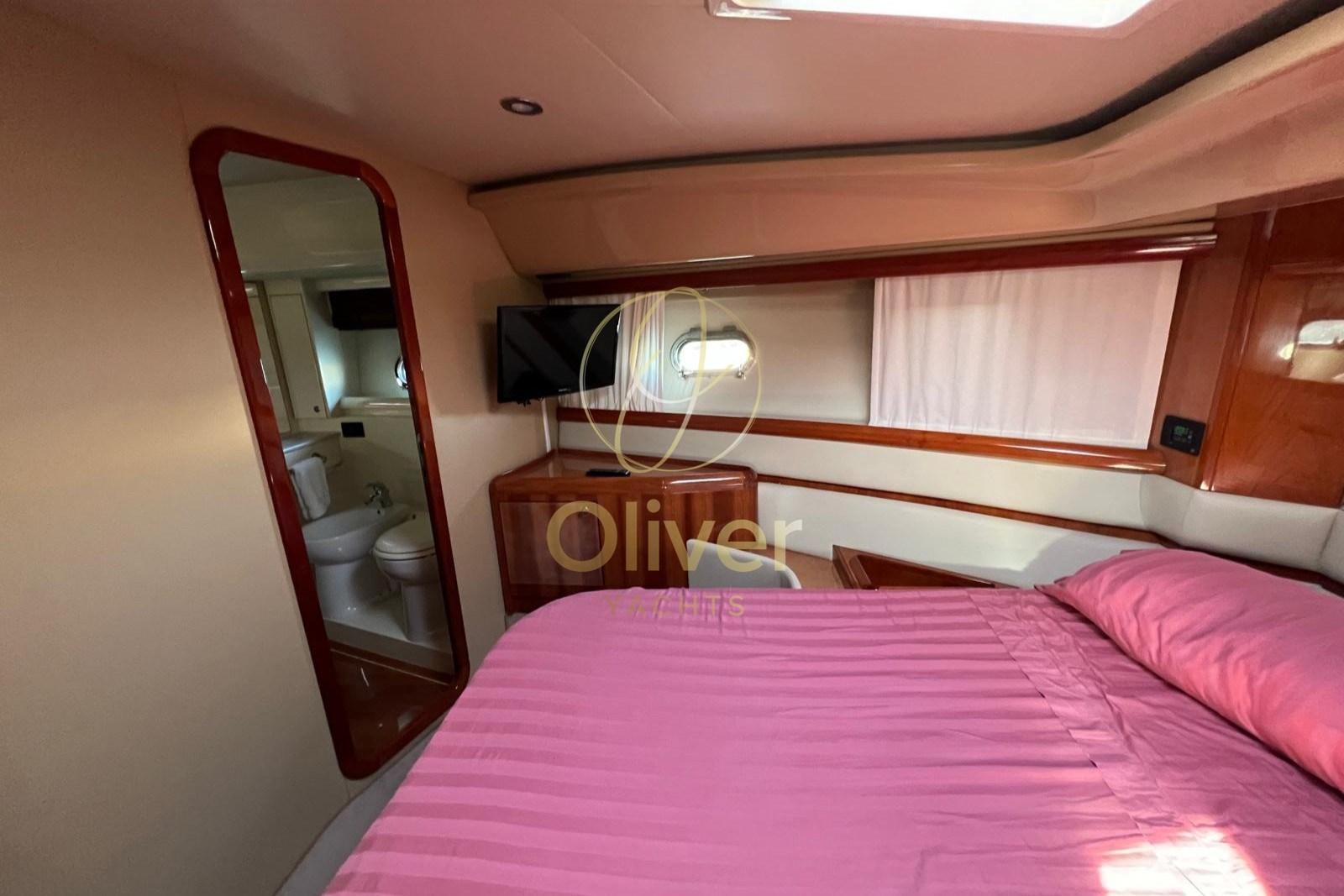 Le bateau est en excellent état général, avec des moteurs révisés (plus de 80 000 € d’interventions démontrables) et de nombreuses mises à jour récentes : lumières LED sous-marines 2023, nouvelles manettes des gaz 2023, coussins avant 2024, moquette 2023, peinture de mobilier, polissage complet du pont. Des équipements supérieurs tels que les propulseurs d’étrave, la climatisation, la télévision par satellite, le système stéréo Bose et deux postes de pilotage rendent cette unité prête à l’emploi, sans compromis.