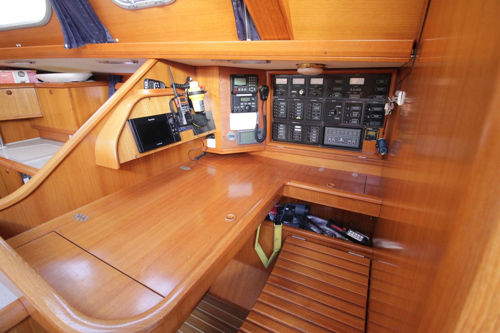 AIS (CLASSE B Raymarine 7000 (émetteur, recepteur)), 2 Compas, Loch (sur lecteur de carte), DSC VHF (HX210 STANDARD HORIZON avec retour cockpit), Feux de navigation (LED), Pilote automatique (remplacé : raymarine EV 400 avec deux pupitres P70S), 2 Lecteur de cartes (Raymarine Hybrid Touch), Radio VHF (portable), Sondeur (sur lecteur de carte), Anémomètre/Girouette (Raymarine I60S).