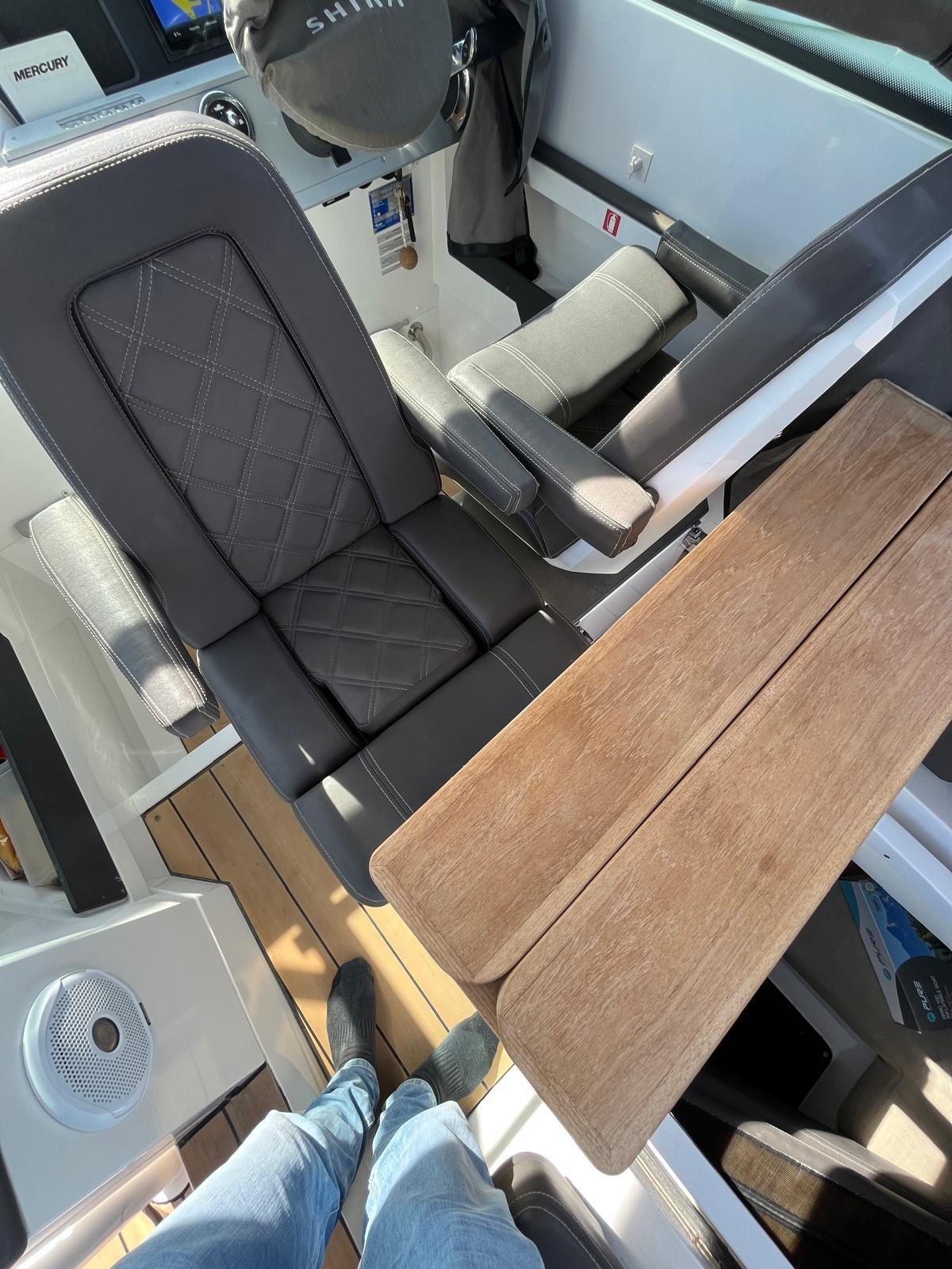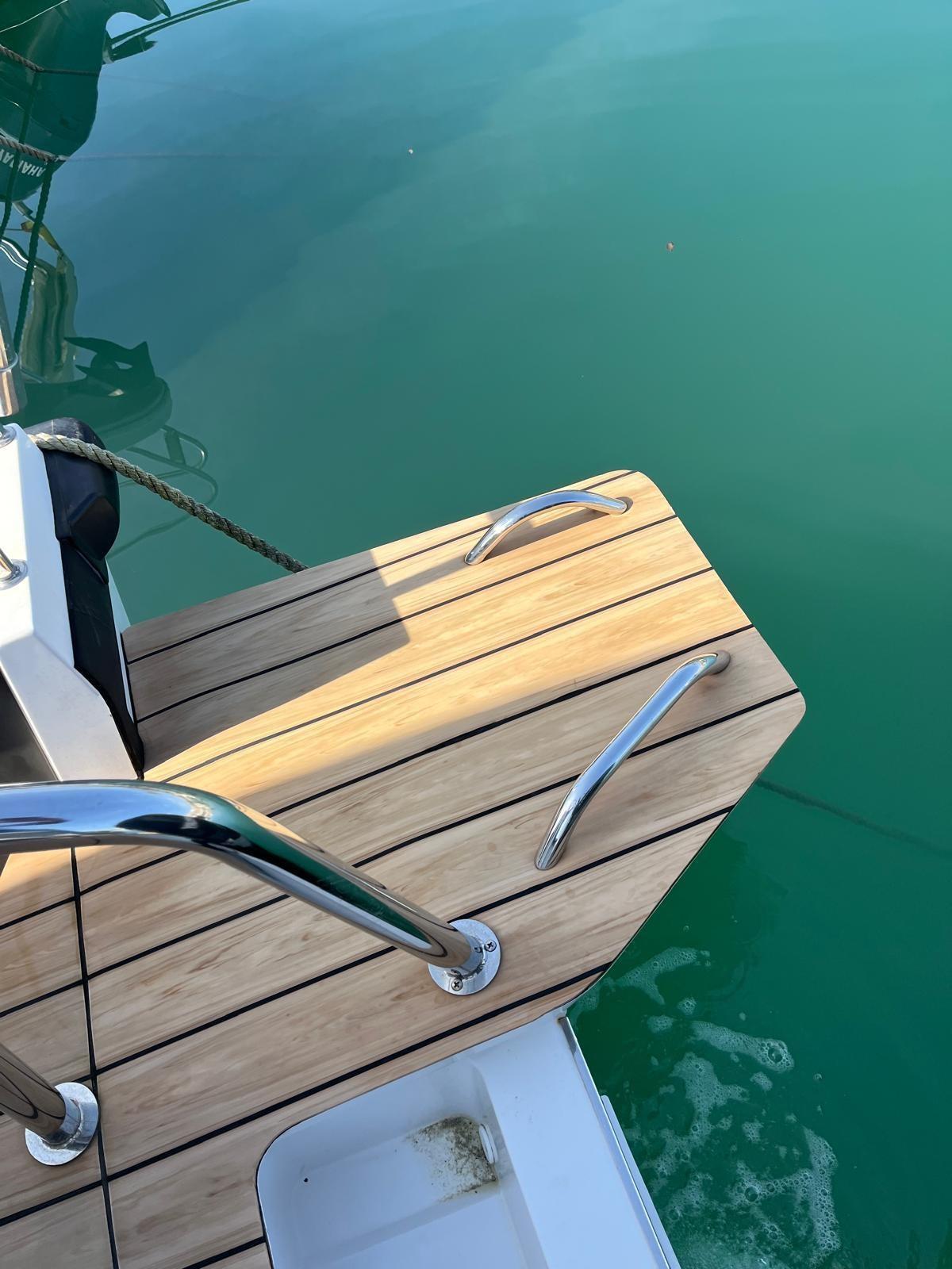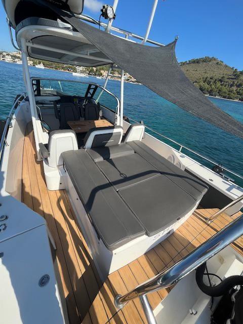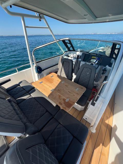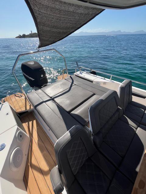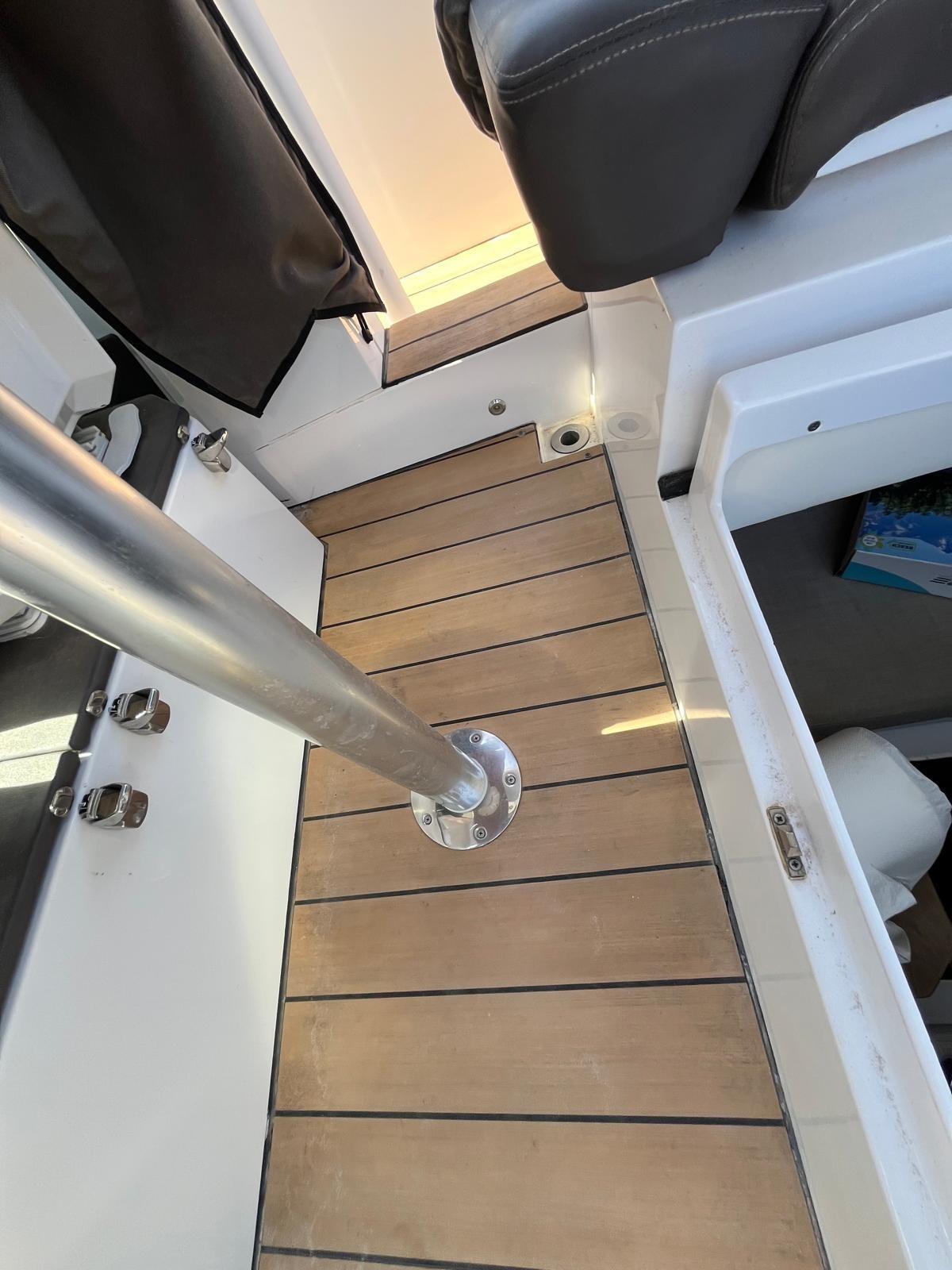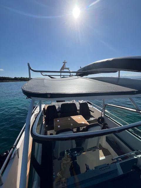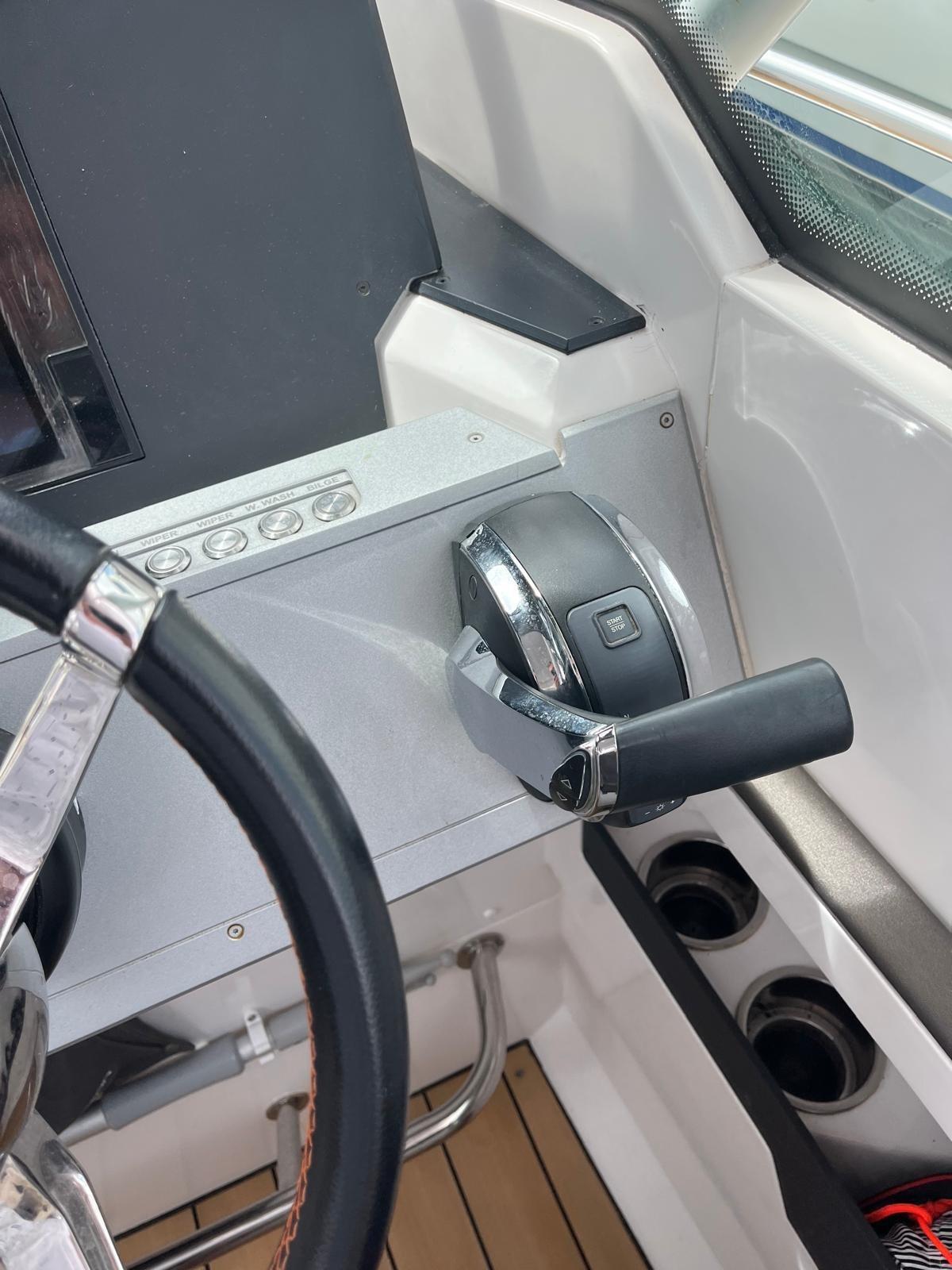 Ancre (7,5 kg EN ACIER INOXYDABLE), Autoclave (Marco UP3E (commande électronique)), Trim automatique (languettes de trim avec joystick), douche de pont (Whale Twister rétractable), propulseur d’avant (Side Power SE40/125S2), volets électriques (languettes de trim avec joystick), crochet de remorquage pour ski nautique (barre de sécurité en acier inoxydable), évier dans le cockpit, feux de courtoisie, plateforme (plateformes doubles latérales avec (1) échelle intégrée avec poignées en acier inoxydable), Pompe de cale automatique, guindlard électrique (Quick 600W), échelle de natation (acier inoxydable avec poignées), table de cockpit (cockpit proue), 2 rampes avec vannes (protections fixes en acier inoxydable pour moteurs hors-bord), T-Top.