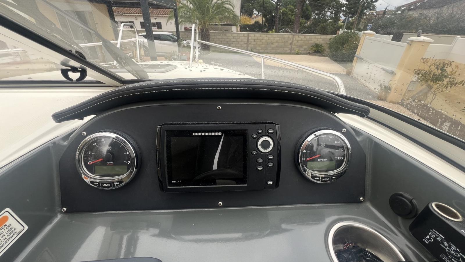 Cabine avant, Couchette double, Cockpit avec Table, GPS HUMMINBIRD HELIX 5, Radio et Haut-parleur FUSION, Glacière électrique 12V, 1 batteries services/moteurs (2025).