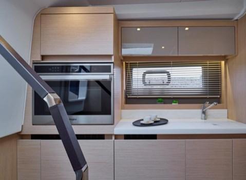 Alarme moteur, Alarme de pompe de cale, Auto Dynamic Trim Interceptor, Trim hydraulique, Passavant en teck, Flaps électriques, Hard top, Extincteur(s) fixe(s), Indicateurs de flaps, Lavabo dans le cockpit, Éclairage de courtoisie, Spots sous-marins, Plateforme arrière, Cockpit en teck, Guindeau électrique, table de cockpit.