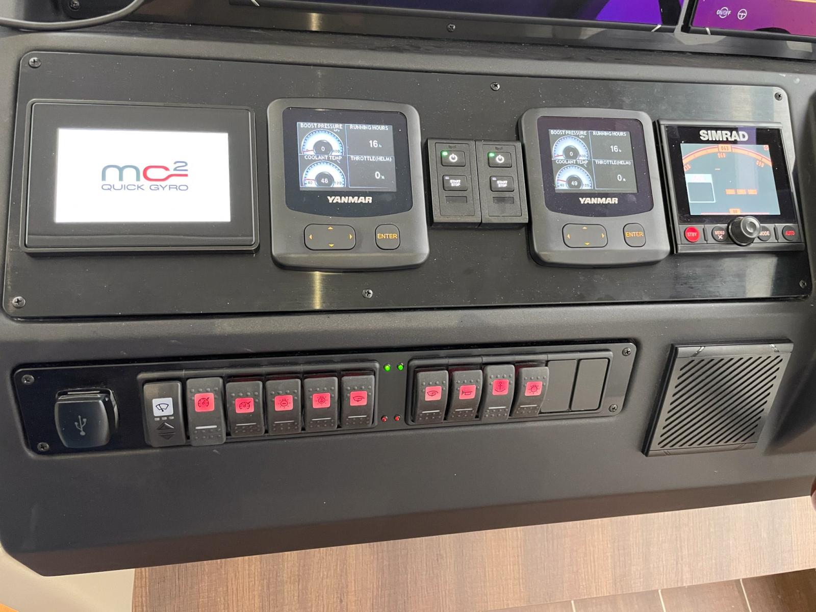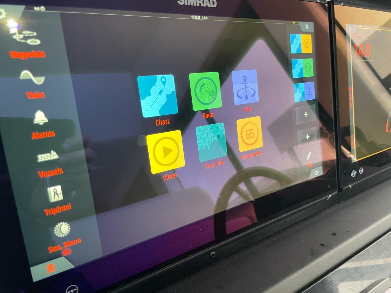 Ploteur double SIMRAD NSO EVO3S MPU DOUBLE 2x16 » sur la station de barre inférieure - Ploteur SIMRAD NSS evo3S 12 » sur la passerelle - Transducteur intelligent DST810, commutation numérique pour 16 fusibles, pilote automatique SIMRAD AP44 VRF à haute capacité - SIMRAD HALO20+ (technologie Doppler jusqu’à 36 milles nautiques) - Radio SIMRAD RS100-B VHF avec émetteur et récepteur AIS + récepteur et haut-parleur en vol
