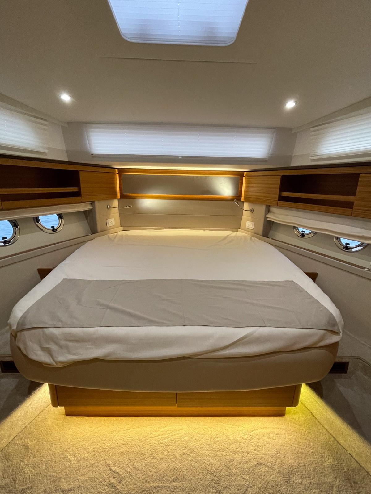 Enfin, sous le pont, il y a des pièces élégantes, dont la chambre du propriétaire, deux chambres doubles, la cabine de l’équipage à l’arrière et trois salles de bains.