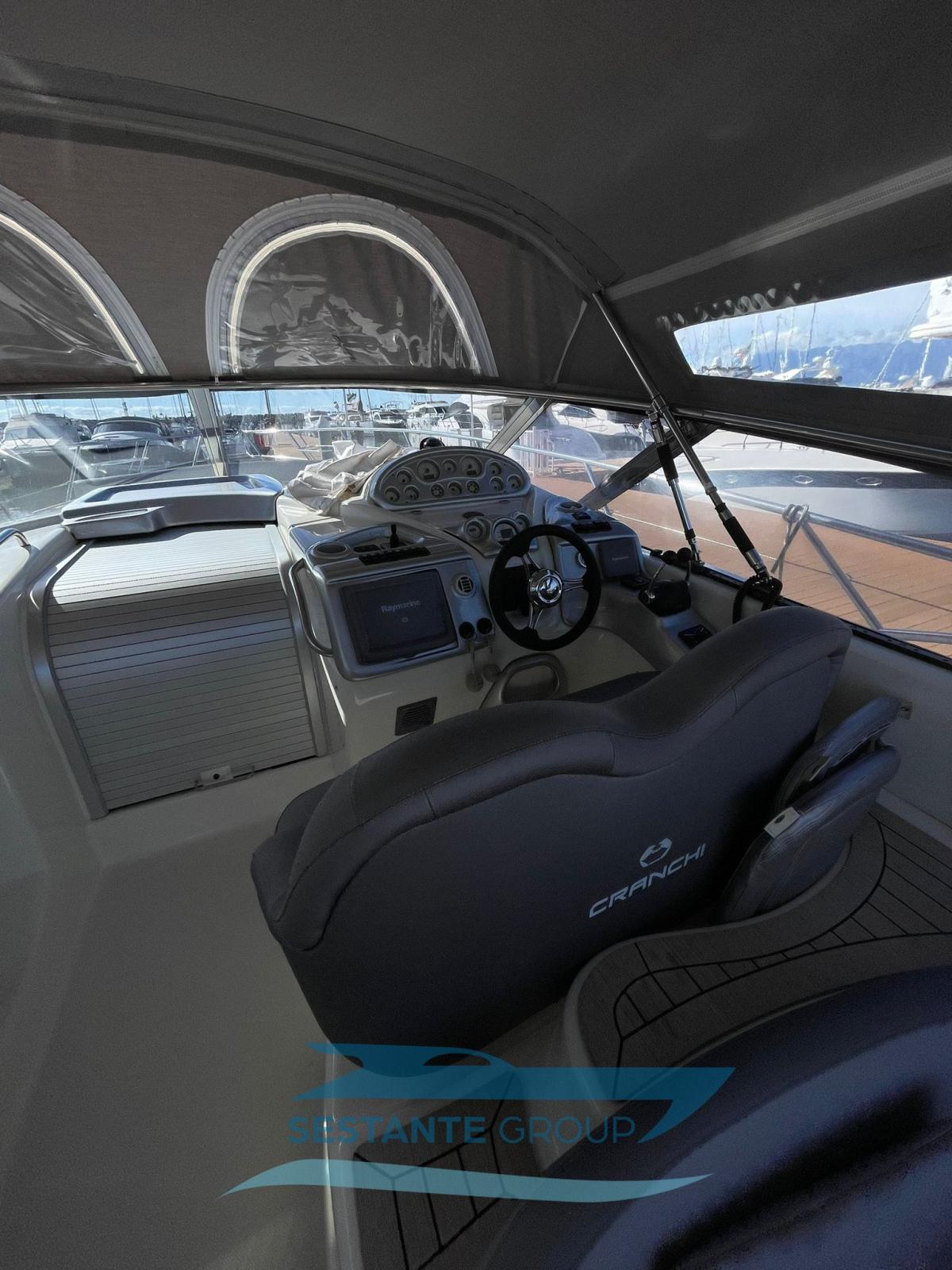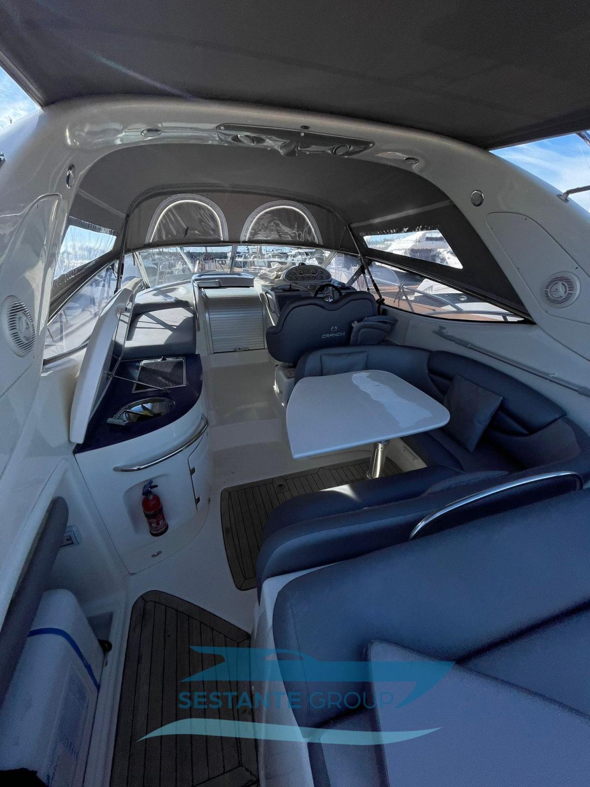 Le Cranchi 41 Endurance est le bateau compact idéal pour une croisière rapide en compagnie. De nombreuses caractéristiques le rendent particulièrement appréciable. Tout d’abord, l’espace à bord, à la fois sur le pont et en dessous, est très bien exploité : les zones de bain de soleil sont vastes à la proue comme à la poupe, et le cockpit est bien équipé et comprend une cuisine extérieure complète, un canapé semi-circulaire et une petite table, permettant de vivre pleinement la zone du bateau en contact direct avec la mer. À l’intérieur, cependant, la solution d’espace ouvert, comprenant une salle à manger et une double cabine, offre une grande aéréité. Une seconde cabine peut accueillir deux lits supplémentaires. Cet exemplaire est équipé de climatisation, de propulseur à proue, de plateforme arrière recouverte de teck et d’une passerelle hydraulique pour améliorer le confort et la praticité en toutes circonstances. Un