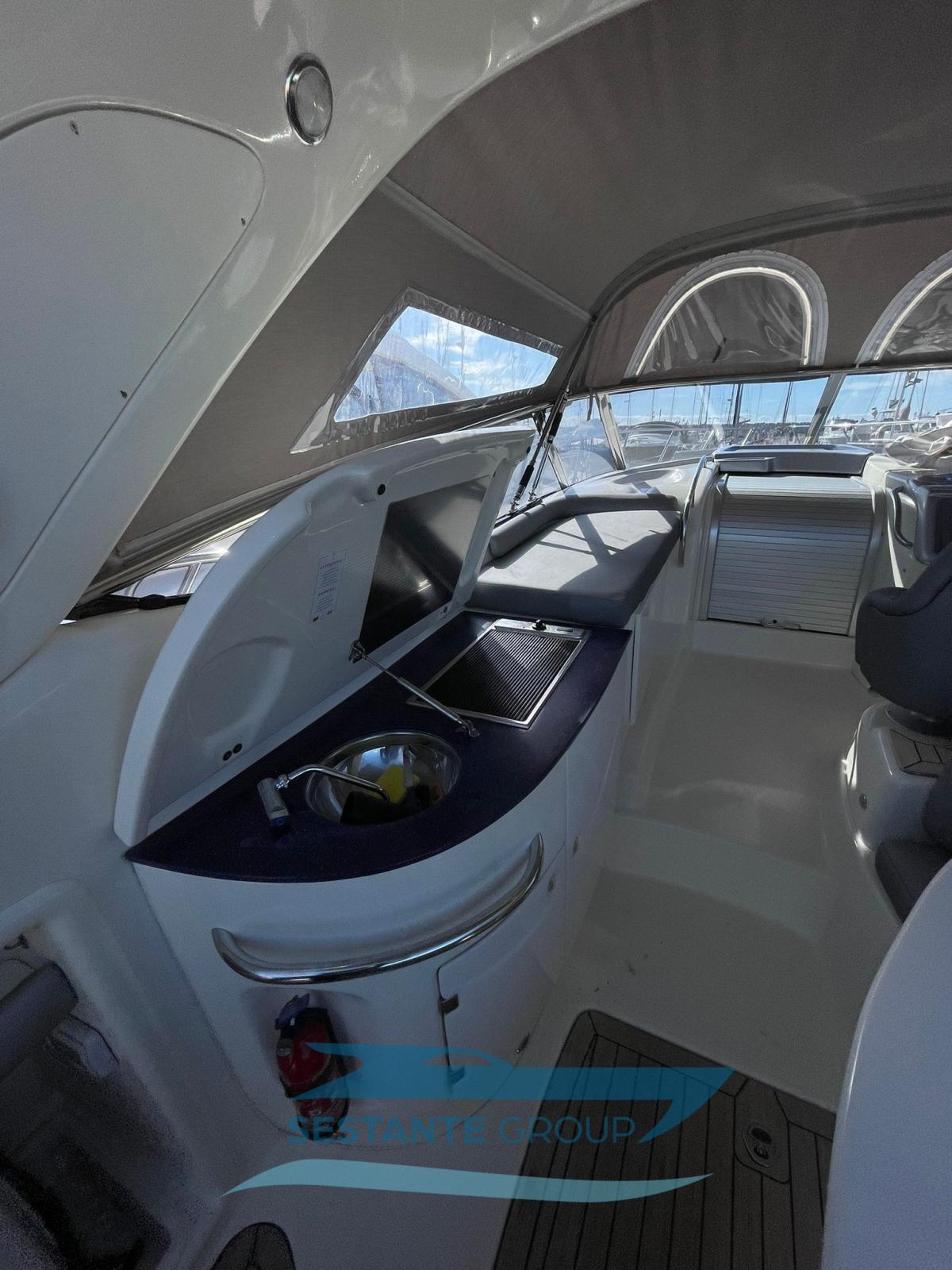 Eau sous pression, 5 Batteries, Douche de cockpit, Phare de poursuite, Flaps électriques, 2 Flaps hydrauliques, Indicateurs de flaps, Lavabo dans le cockpit, Éclairage de courtoisie, Spots sous-marins, Passerelle, Plateforme arrière, Pompe de cale manuelle, Pont en teck, Prise de quai, Connexion eau sous pression à quai, Rollbar, Guindeau électrique, Echelle de bain, table de cockpit, Corne, Pont en teck.